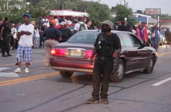 Olajuwon Ali. “Black Panthers Directing Traffic Keeping Peace.”, Documenting Ferguson, accessed April 1, 2026, https://digitalexhibits.library.wustl.edu/s/ferguson/item/55241