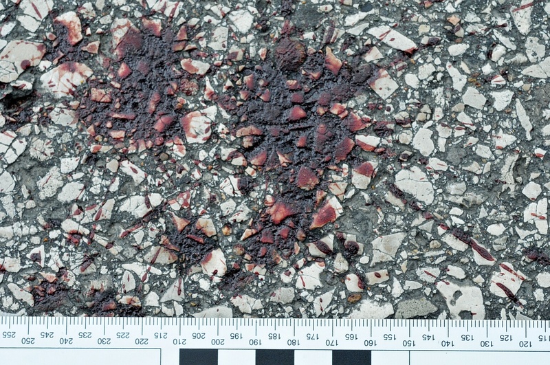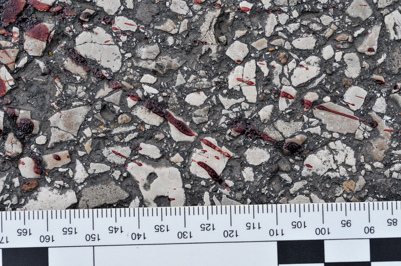 Gore Perry Reporting & Video Company. “Case: State of Missouri V Darren Wilson. Photos : Blood Splatter Evidence at the Scene of the Shooting on August 9, 2014.”, Documenting Ferguson, accessed April 1, 2026, https://digitalexhibits.library.wustl.edu/s/ferguson/item/55363