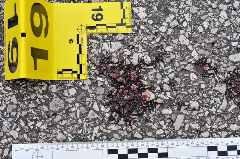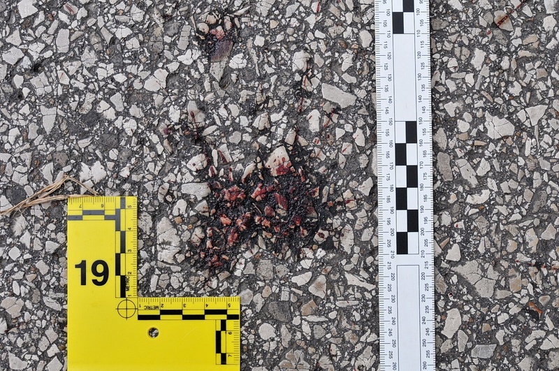 Case: State of Missouri v Darren Wilson. Photos : Evidence markers #19 & #20 of blood splatter