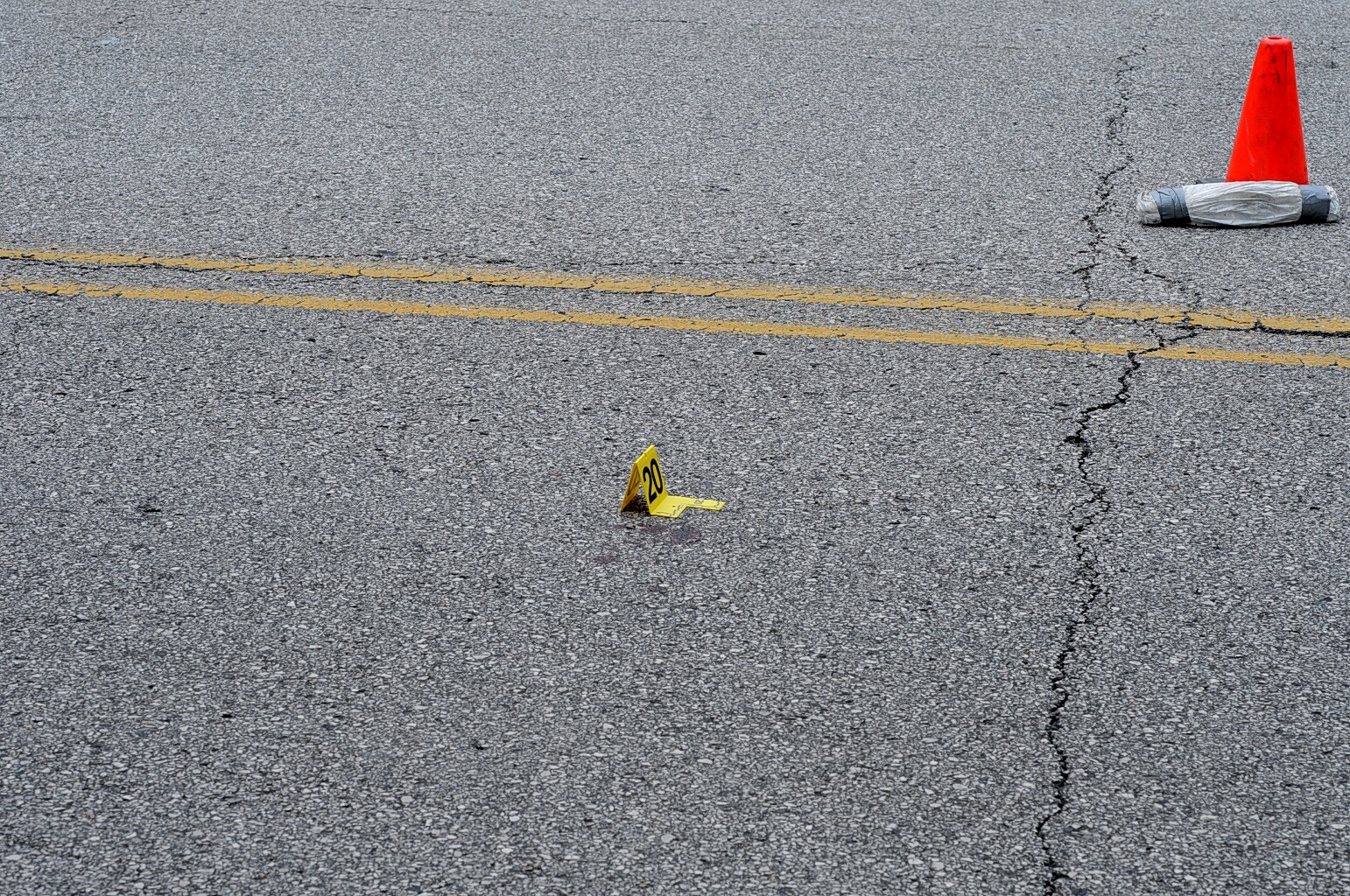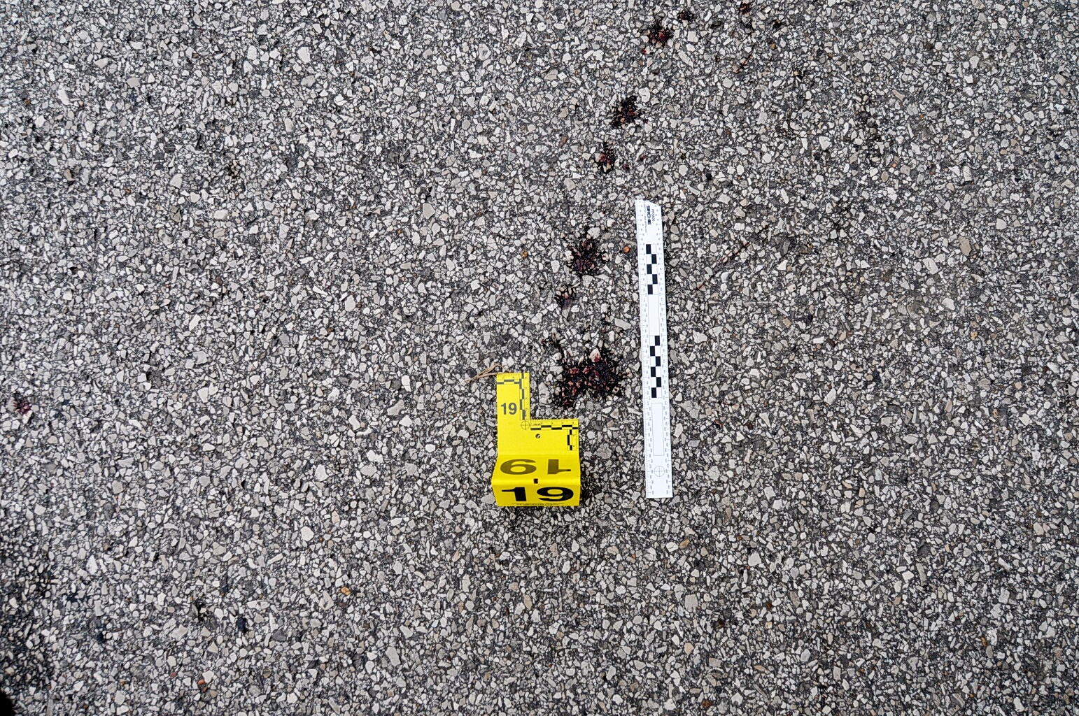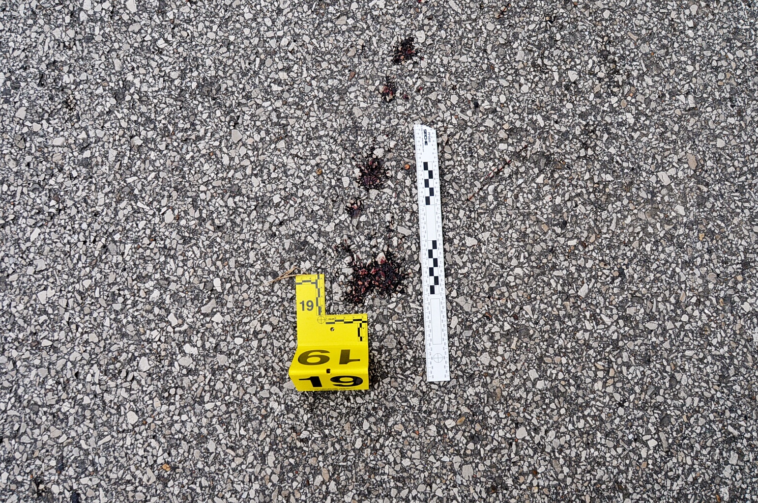 Gore Perry Reporting & Video Company. “Case: State of Missouri V Darren Wilson. Photos : Evidence Markers #19 & #20 of Blood Splatter.”, Documenting Ferguson, accessed April 1, 2026, https://digitalexhibits.library.wustl.edu/s/ferguson/item/55367