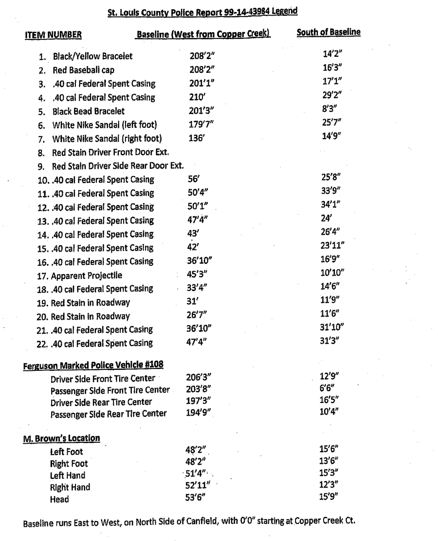 Case: State of Missouri v Darren Wilson. Photos : Evidence list