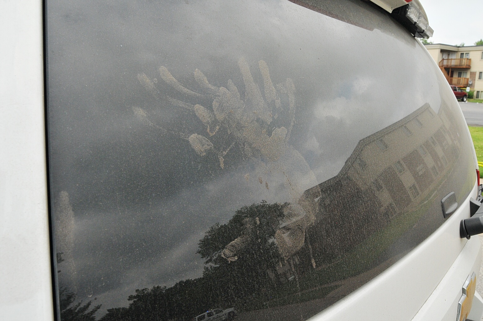 Gore Perry Reporting & Video Company. “ Photos : Police Car Evidence - Hand Prints and Scratches.”, Documenting Ferguson, accessed April 1, 2026, https://digitalexhibits.library.wustl.edu/s/ferguson/item/55381