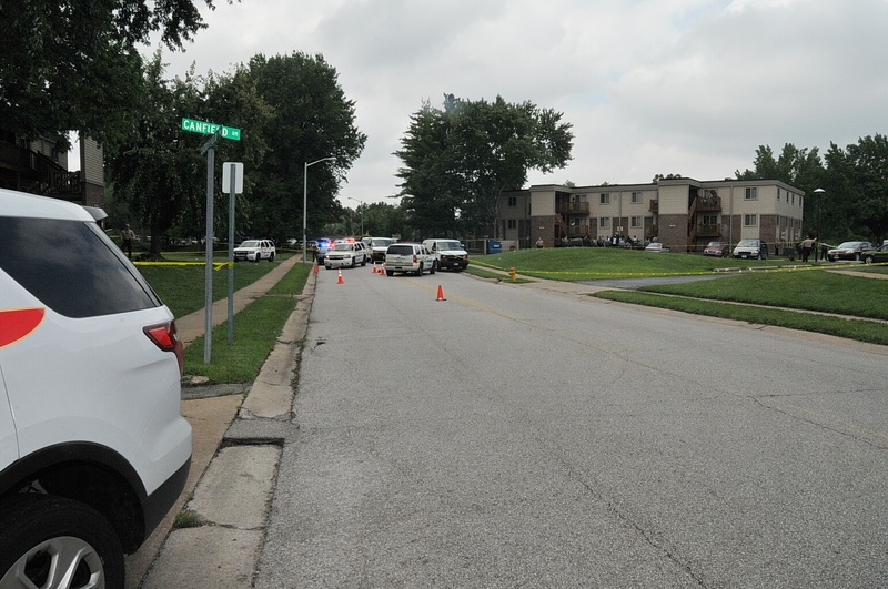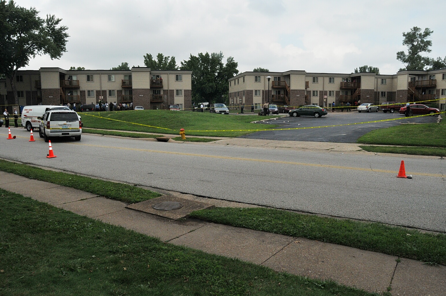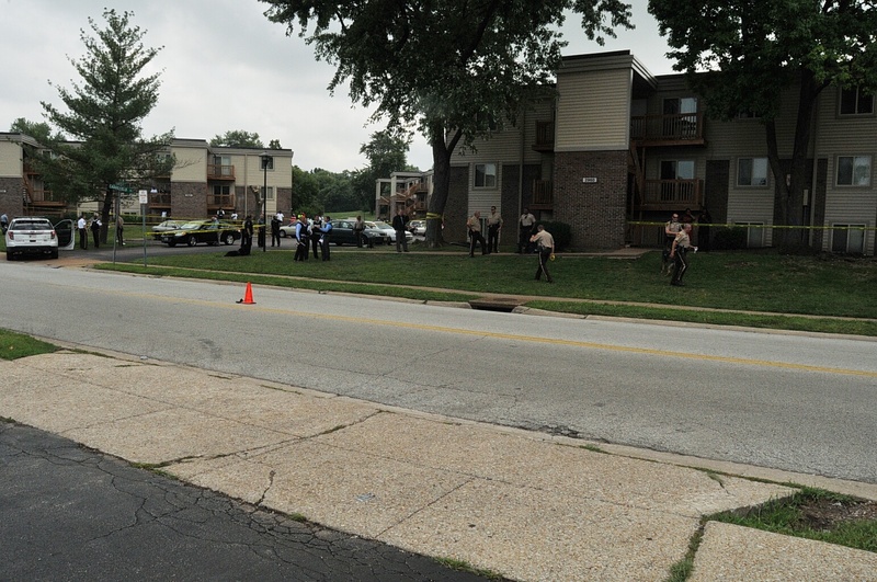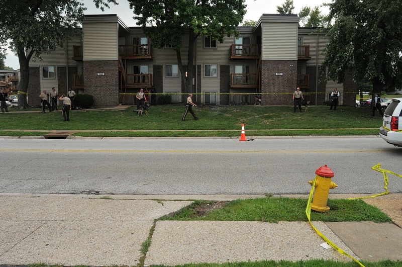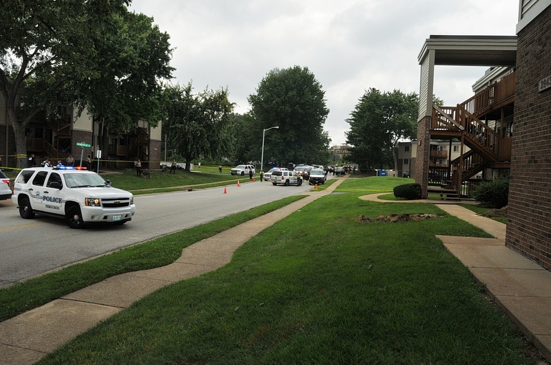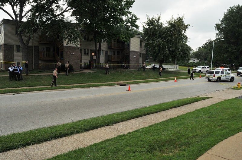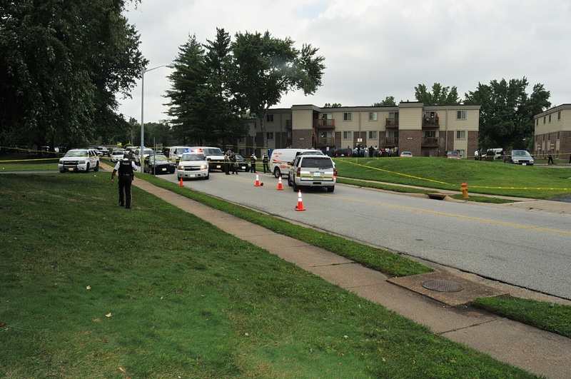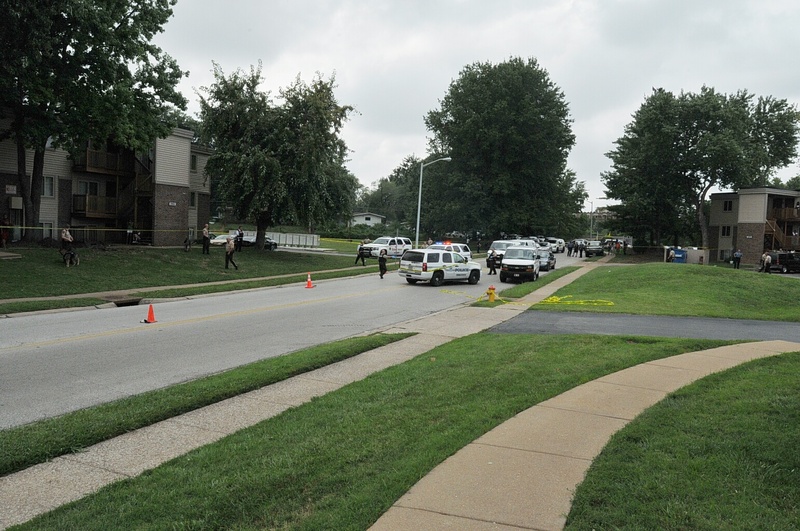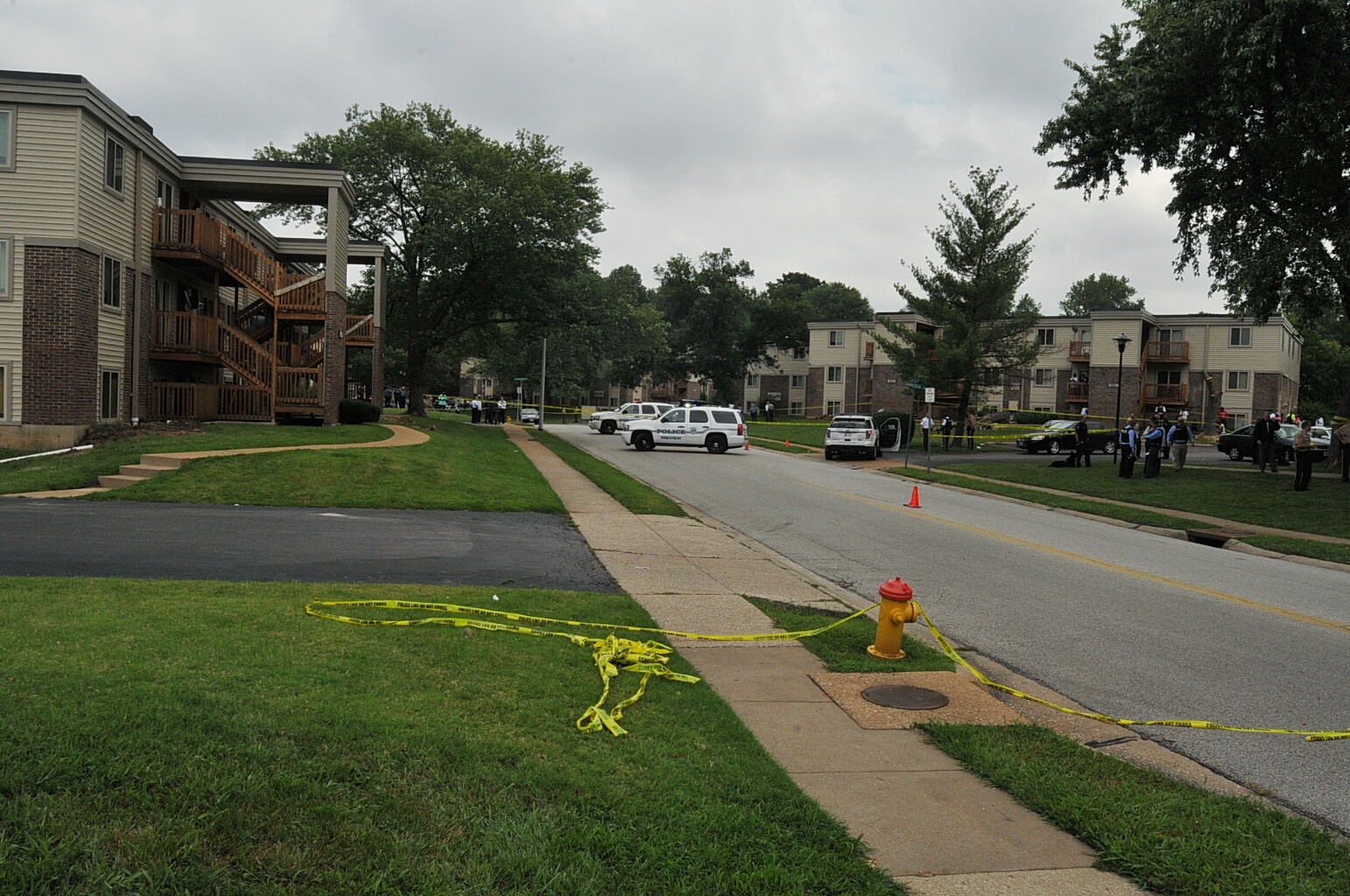 Case: State of Missouri v Darren Wilson. Photos : police cars and yellow tape blocking street