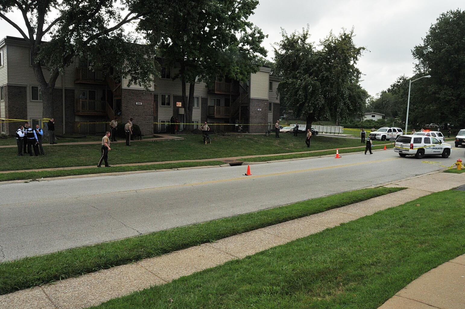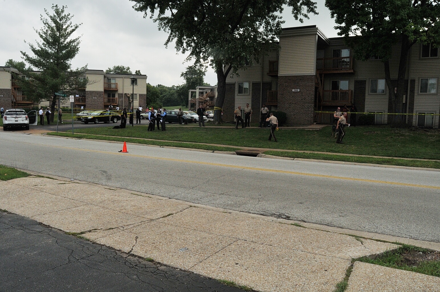 Gore Perry Reporting & Video Company. “ Photos : Police Cars and Yellow Tape Blocking Street.”, Documenting Ferguson, accessed April 1, 2026, https://digitalexhibits.library.wustl.edu/s/ferguson/item/55383