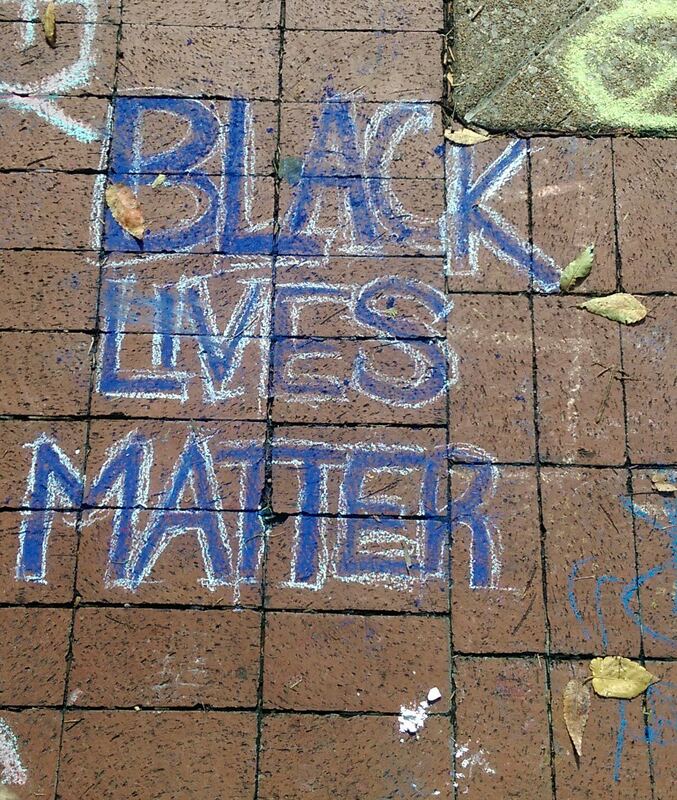Black Lives Matter chalk at Kiener Plaza