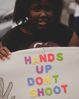 Girl with Hands Up Don't Shoot sign