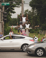 Girls making signs at the Quick Trip on W. Florissant