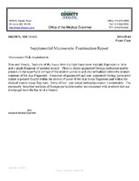 Report: Saint Louis County Health Office of Medical Examiner, Supplemental Microscopic Examination Report Here are documents and evidence presented to the grand jury in Clayton, Mo., that was deciding whether to indict Officer Darren Wilson in the August shooting of Michael Brown. The documents were released by the St. Louis County prosecutor, Robert P. McCulloch. Note: Some of the documents contain graphic language. NOV. 25, 2014. -
