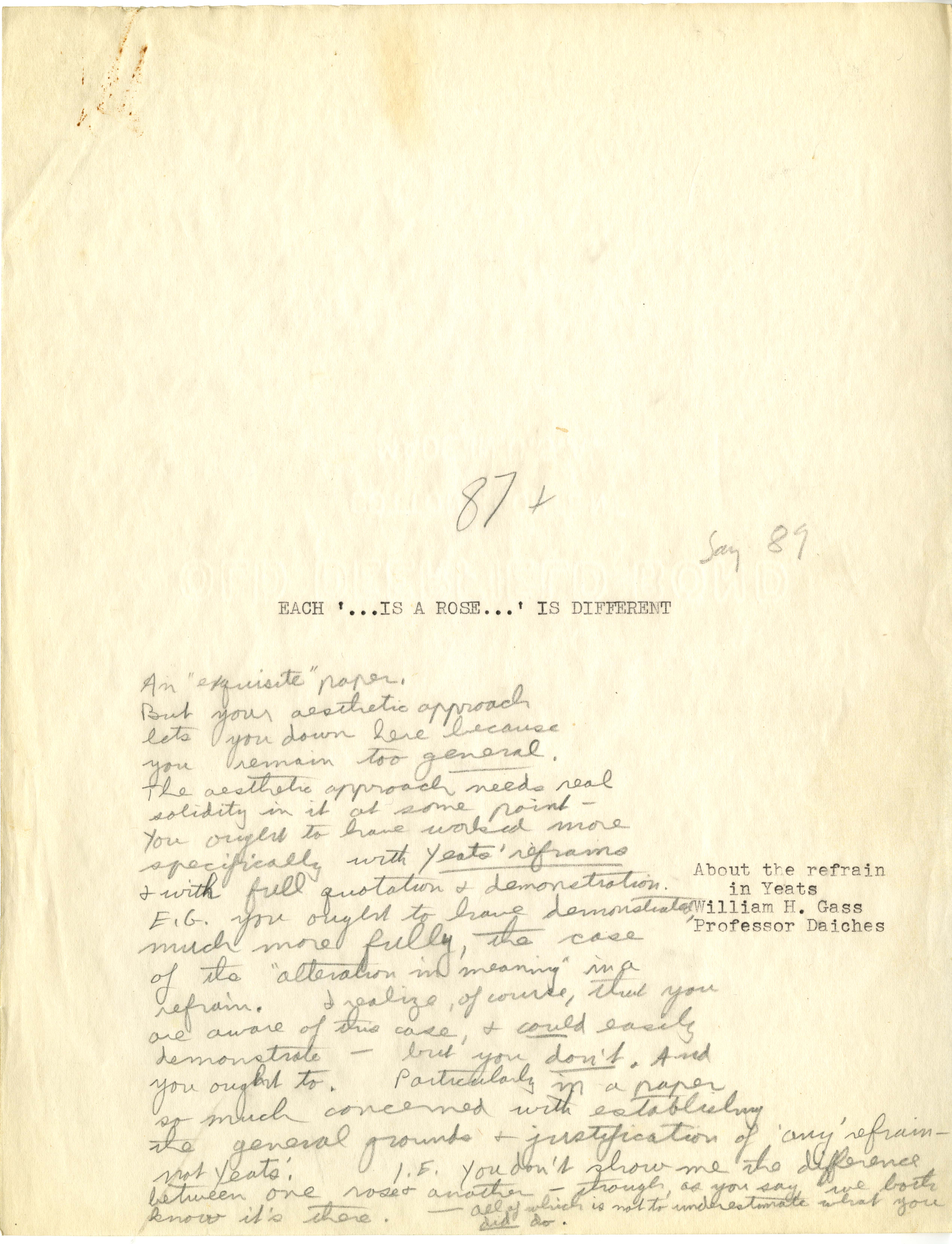 Gass, William H., “"Each '...Is A Rose...' Is Different"”, Not dated, William H. Gass: The Soul Inside the Sentence, accessed February 11, 2026, https://digitalexhibits.library.wustl.edu/s/gass/item/14415