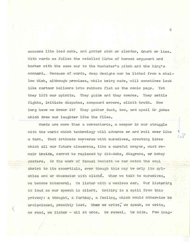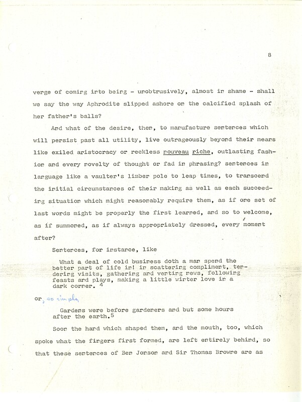 Gass, William H., “"The Soul Inside The Sentence" - Reading Version”, Not dated, William H. Gass: The Soul Inside the Sentence, accessed February 11, 2026, https://digitalexhibits.library.wustl.edu/s/gass/item/14421