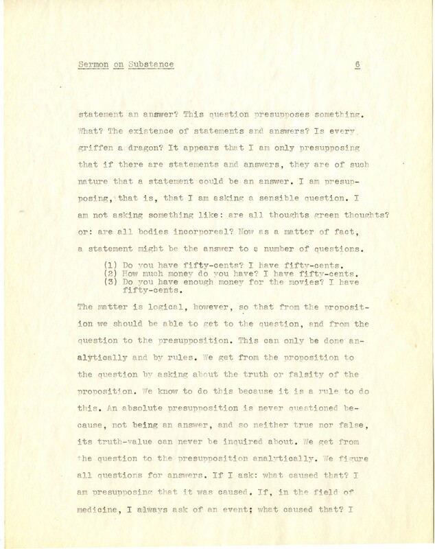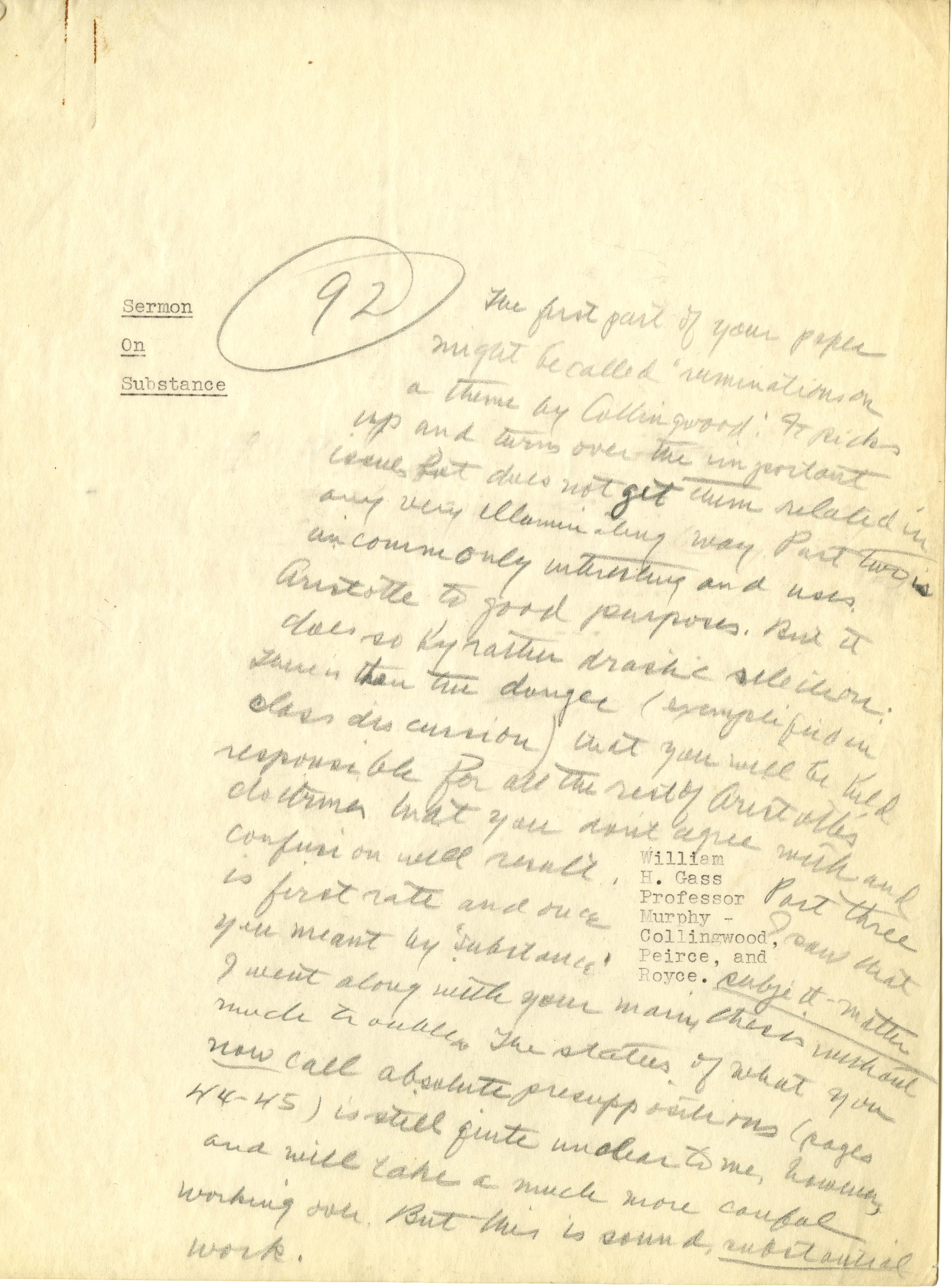 Gass, William H., “"Sermon On Substance"”, Not dated, William H. Gass: The Soul Inside the Sentence, accessed February 11, 2026, https://digitalexhibits.library.wustl.edu/s/gass/item/14422