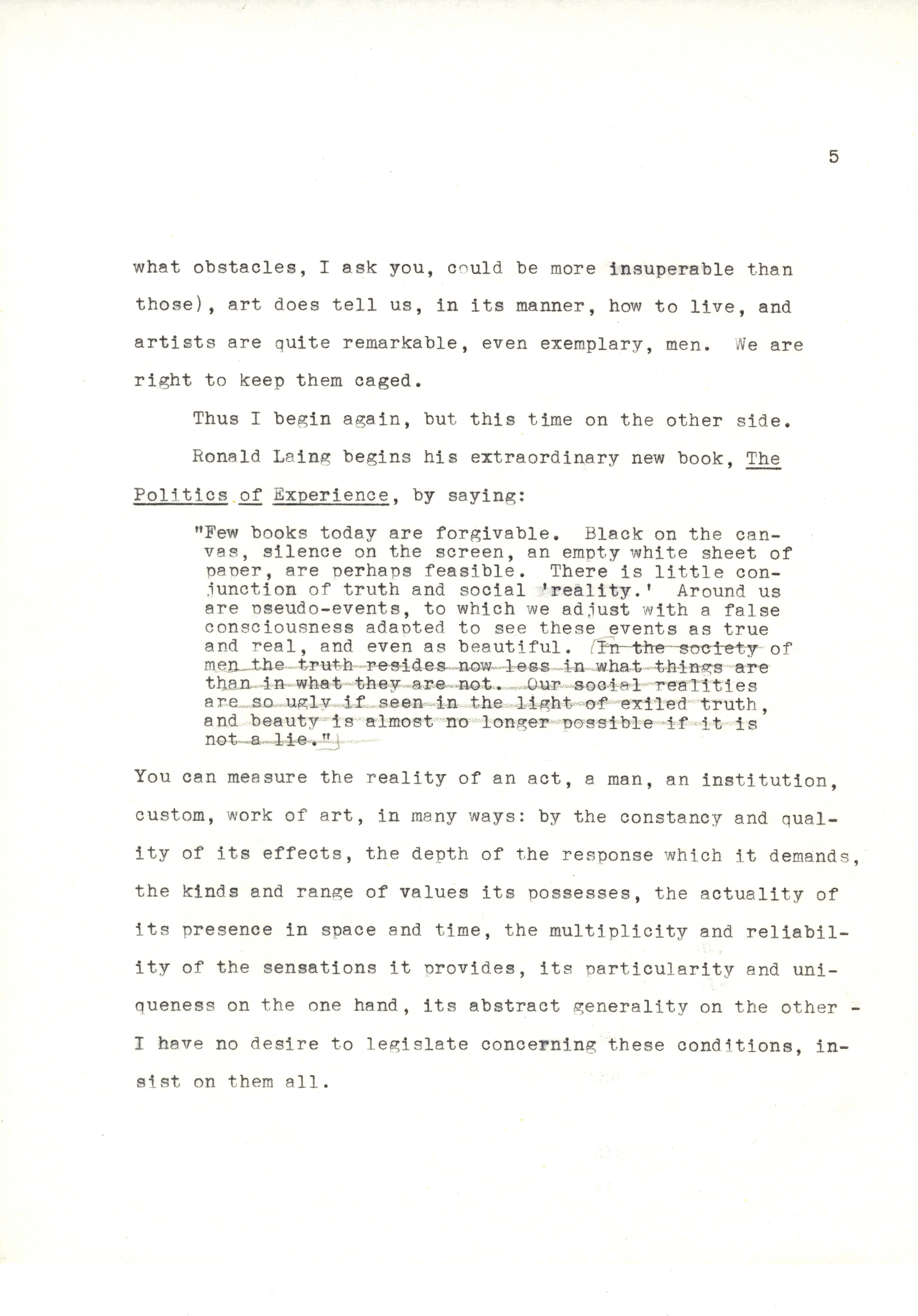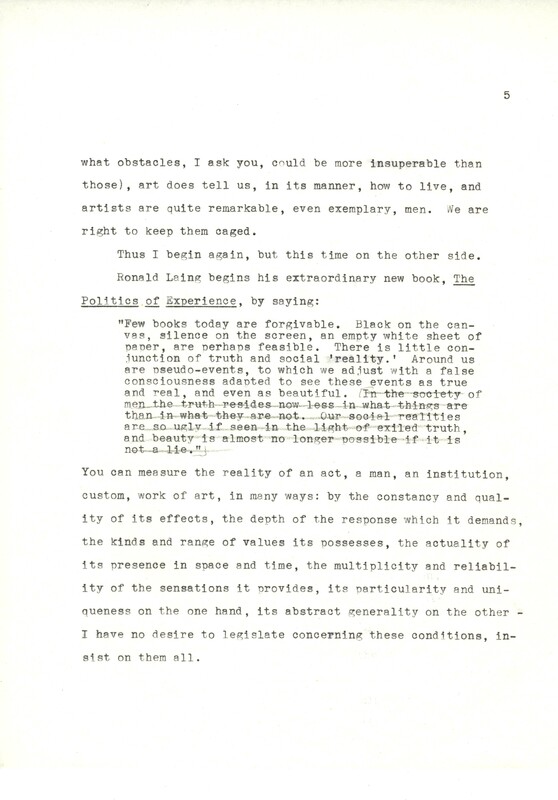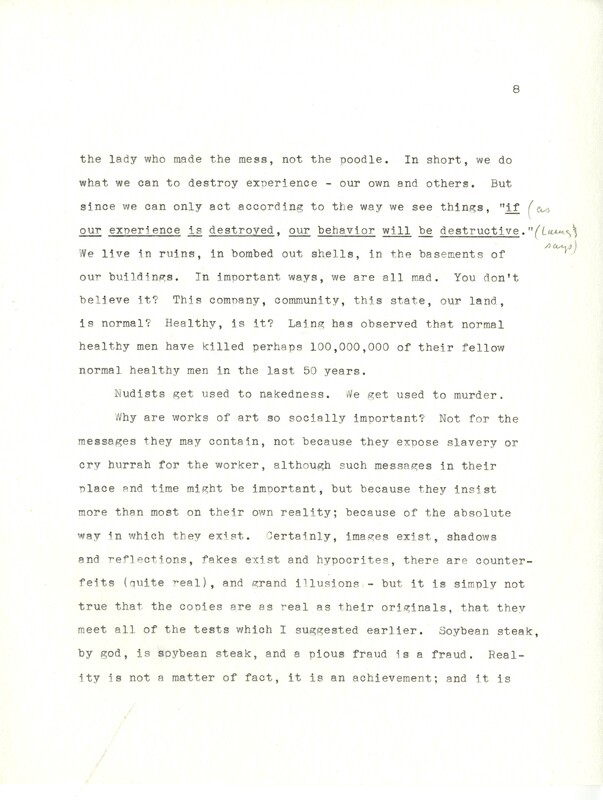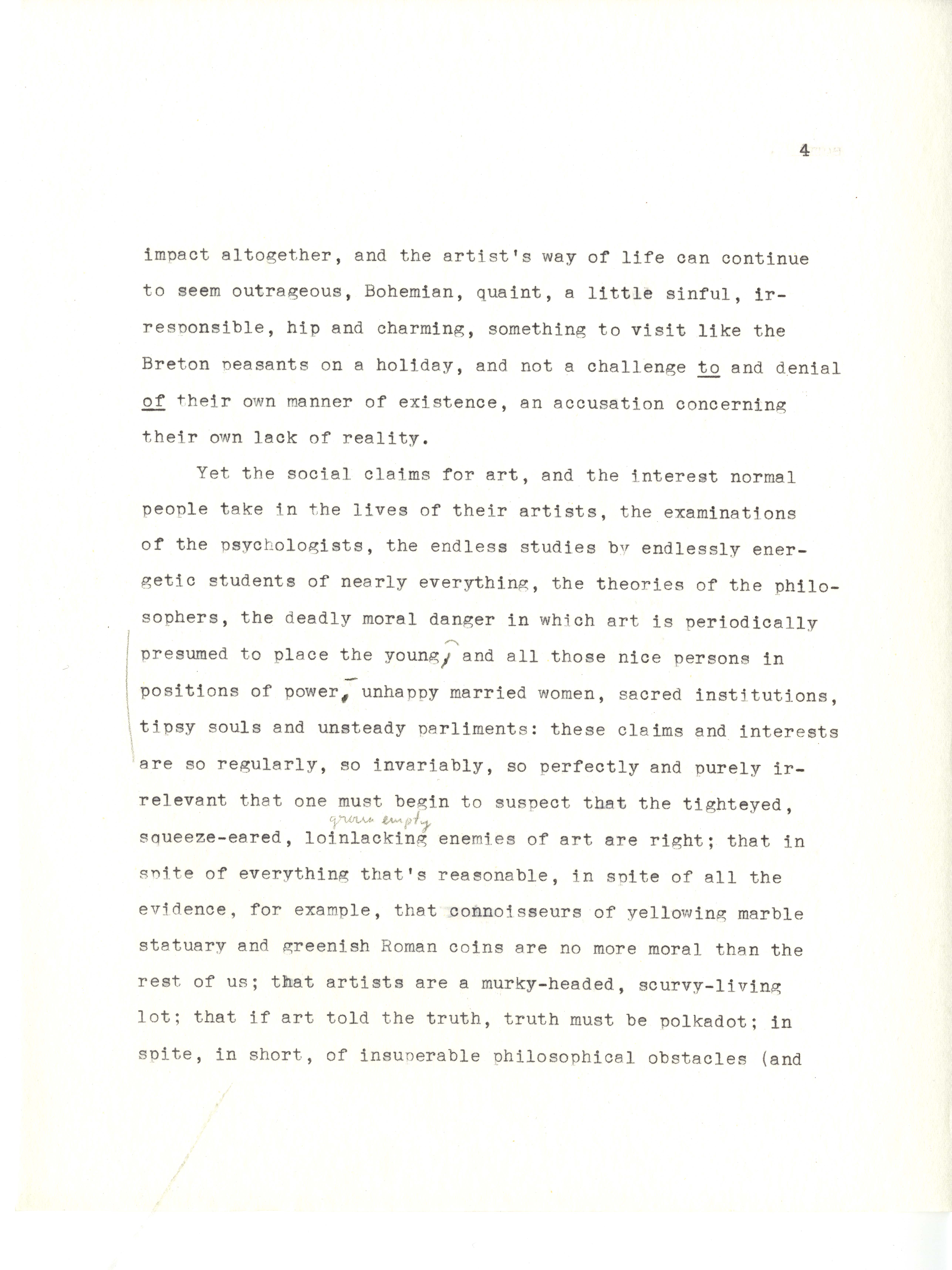 Gass, William H., “"The Artist and Society" - Typescript Draft”, circa July 1968, William H. Gass: The Soul Inside the Sentence, accessed February 10, 2026, https://digitalexhibits.library.wustl.edu/s/gass/item/14424