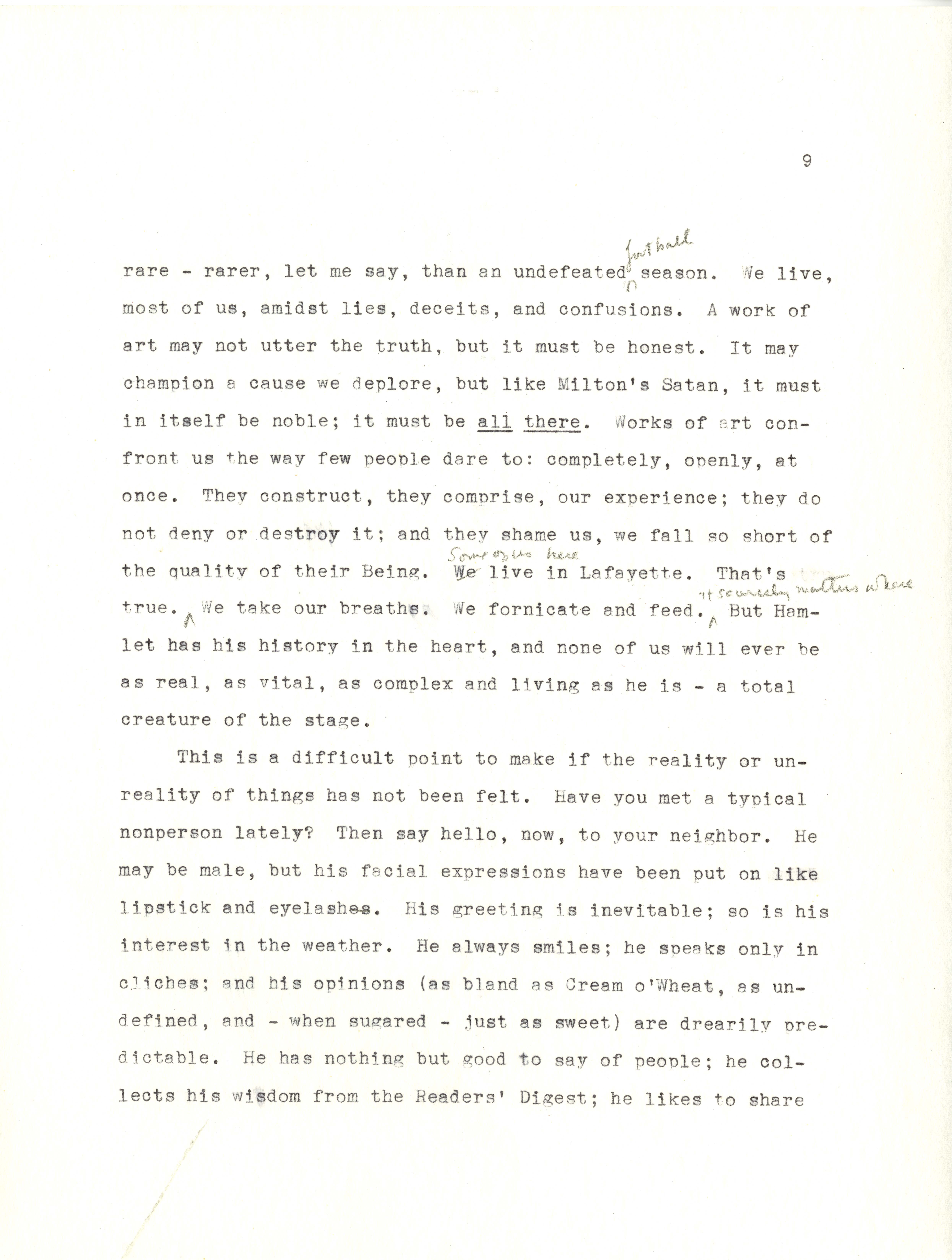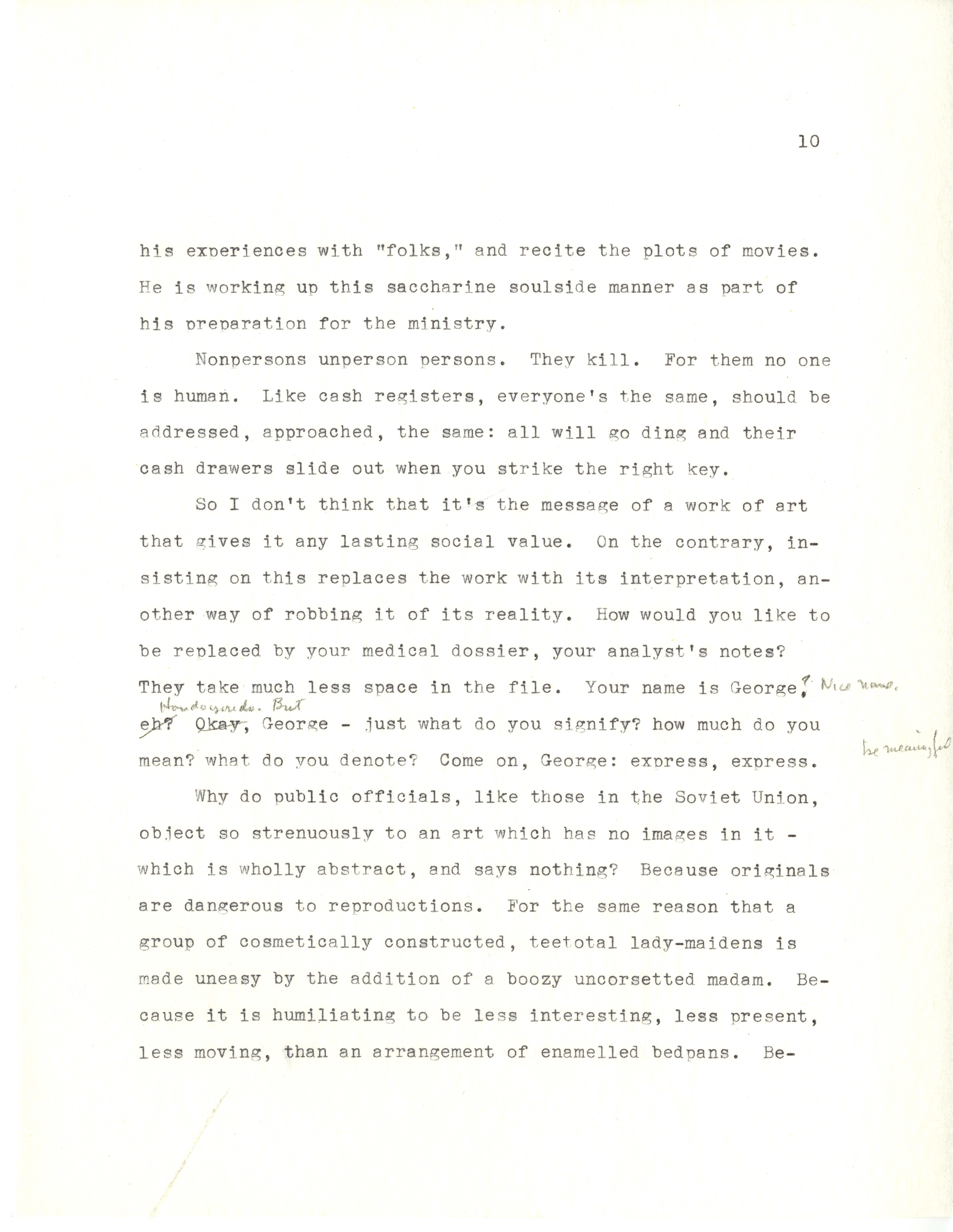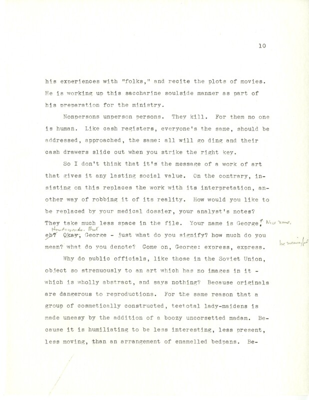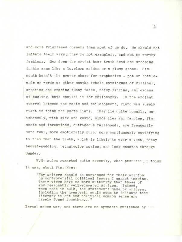 Gass, William H., “"The Artist and Society" - Typescript Draft”, circa July 1968, William H. Gass: The Soul Inside the Sentence, accessed February 10, 2026, https://digitalexhibits.library.wustl.edu/s/gass/item/14424