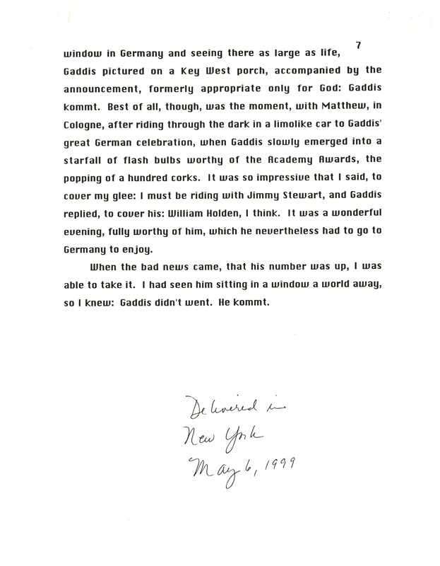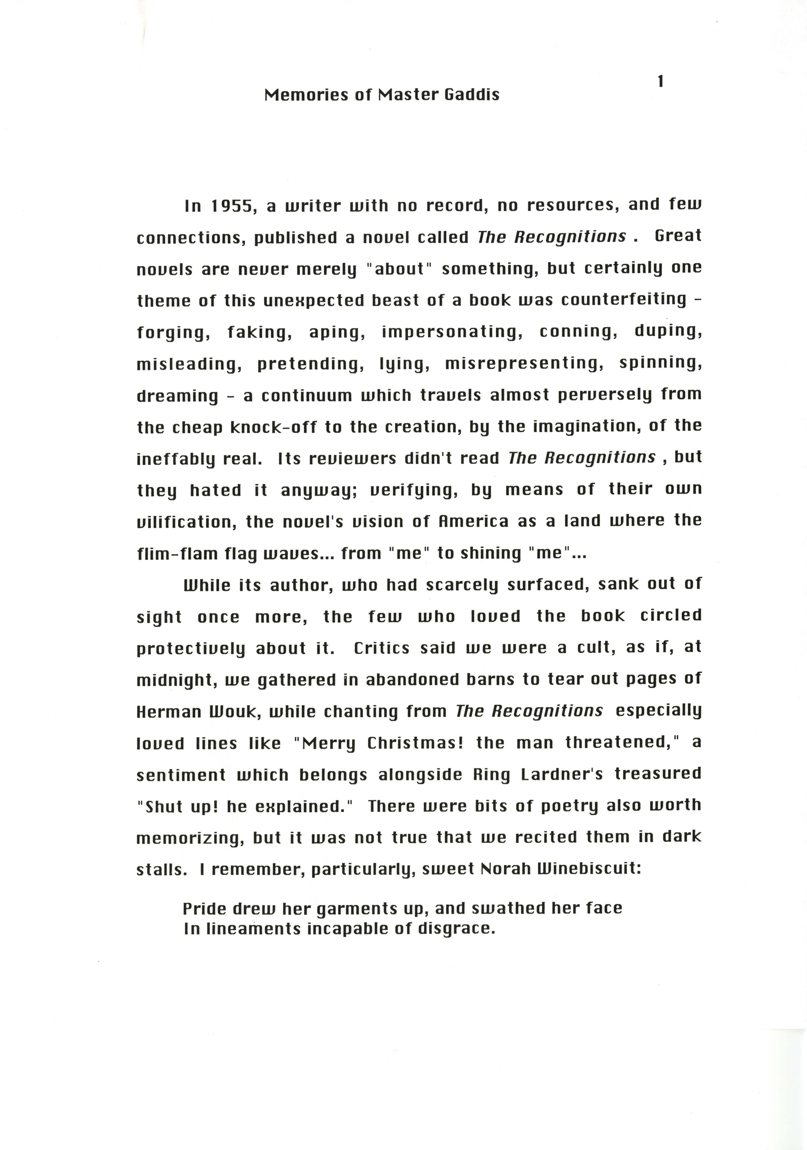 "Memories of Master Gaddis"