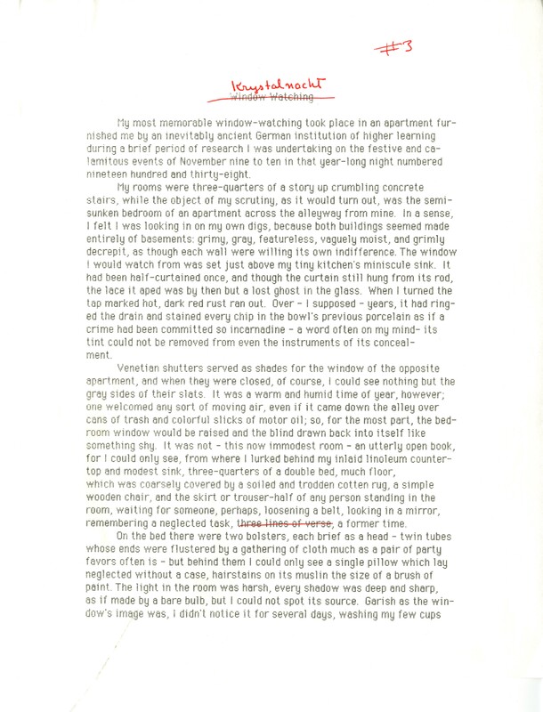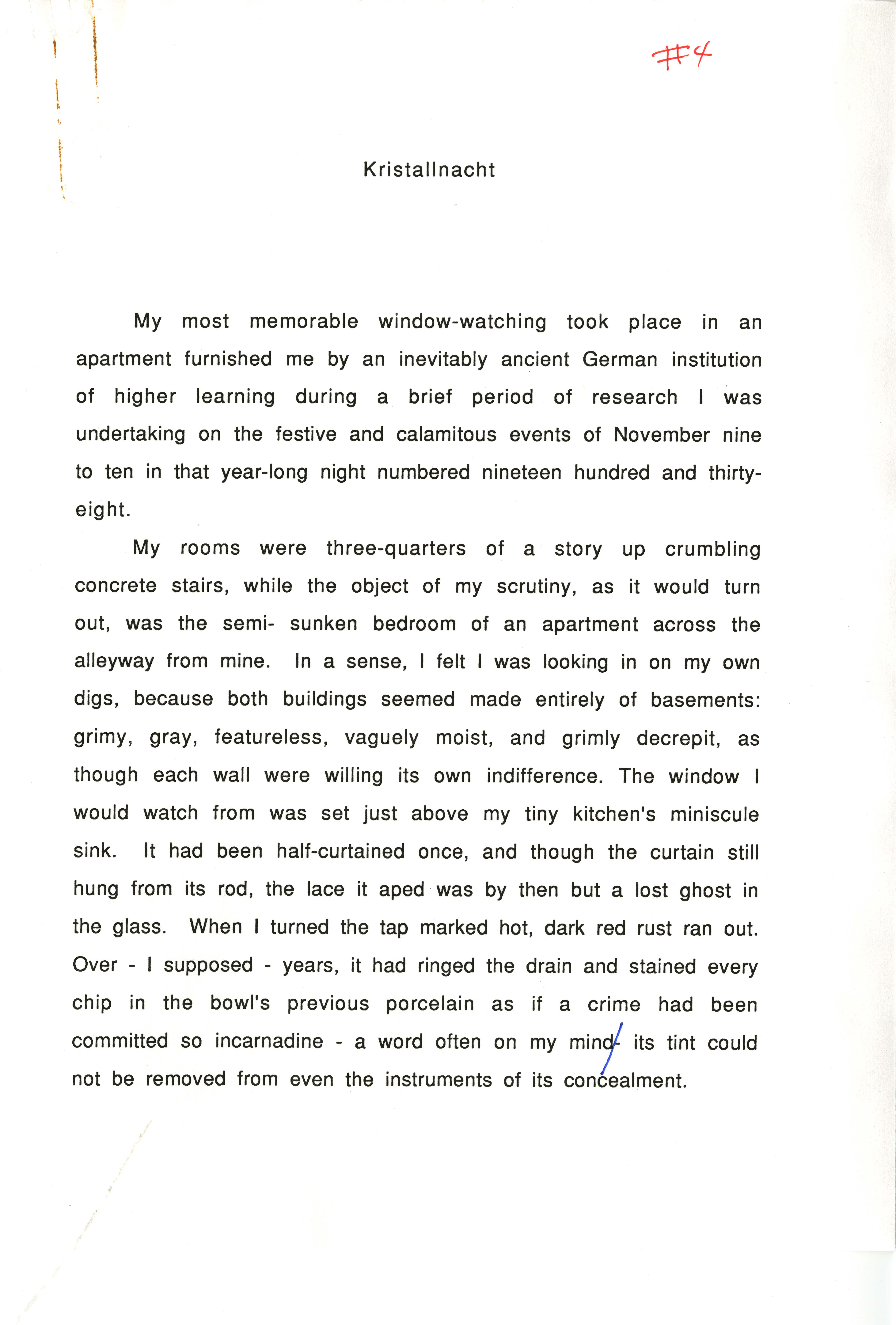 Gass, William H. “‘Krystalnacht’ - Drafts”. On Loan from William H. Gass, William H. Gass: The Soul Inside the Sentence, accessed February 11, 2026, https://digitalexhibits.library.wustl.edu/s/gass/item/14432
