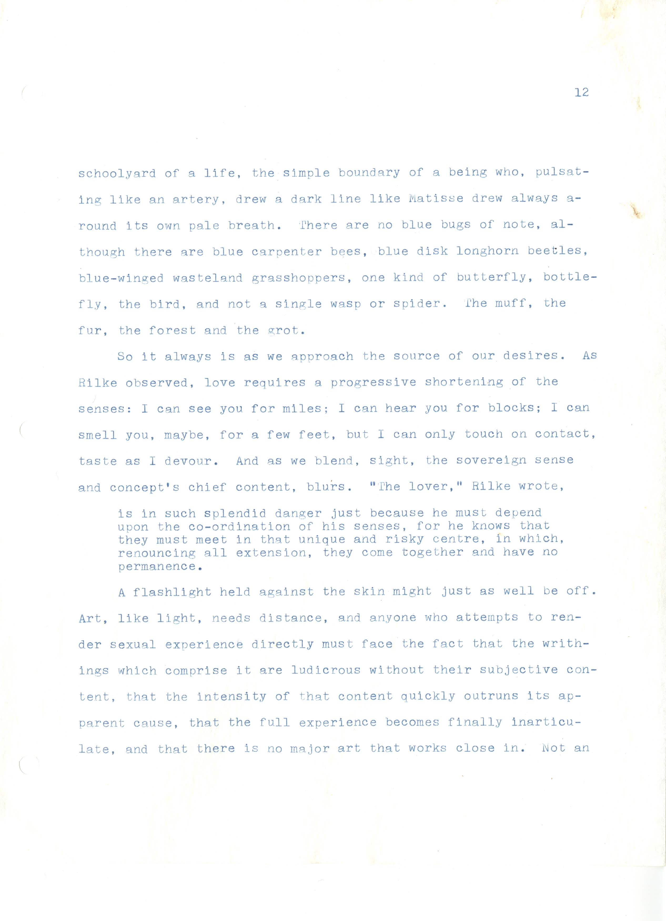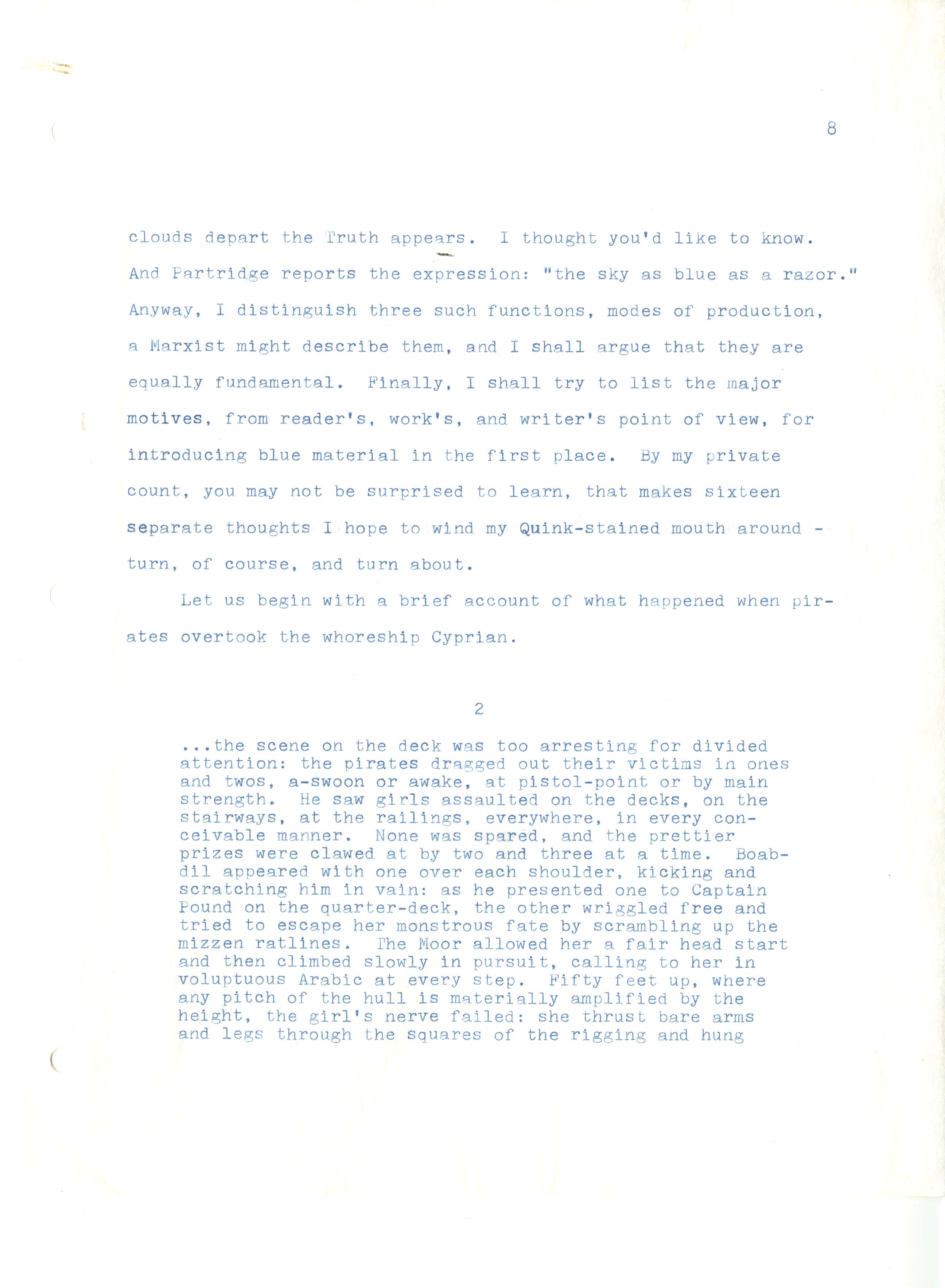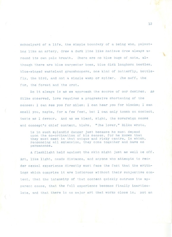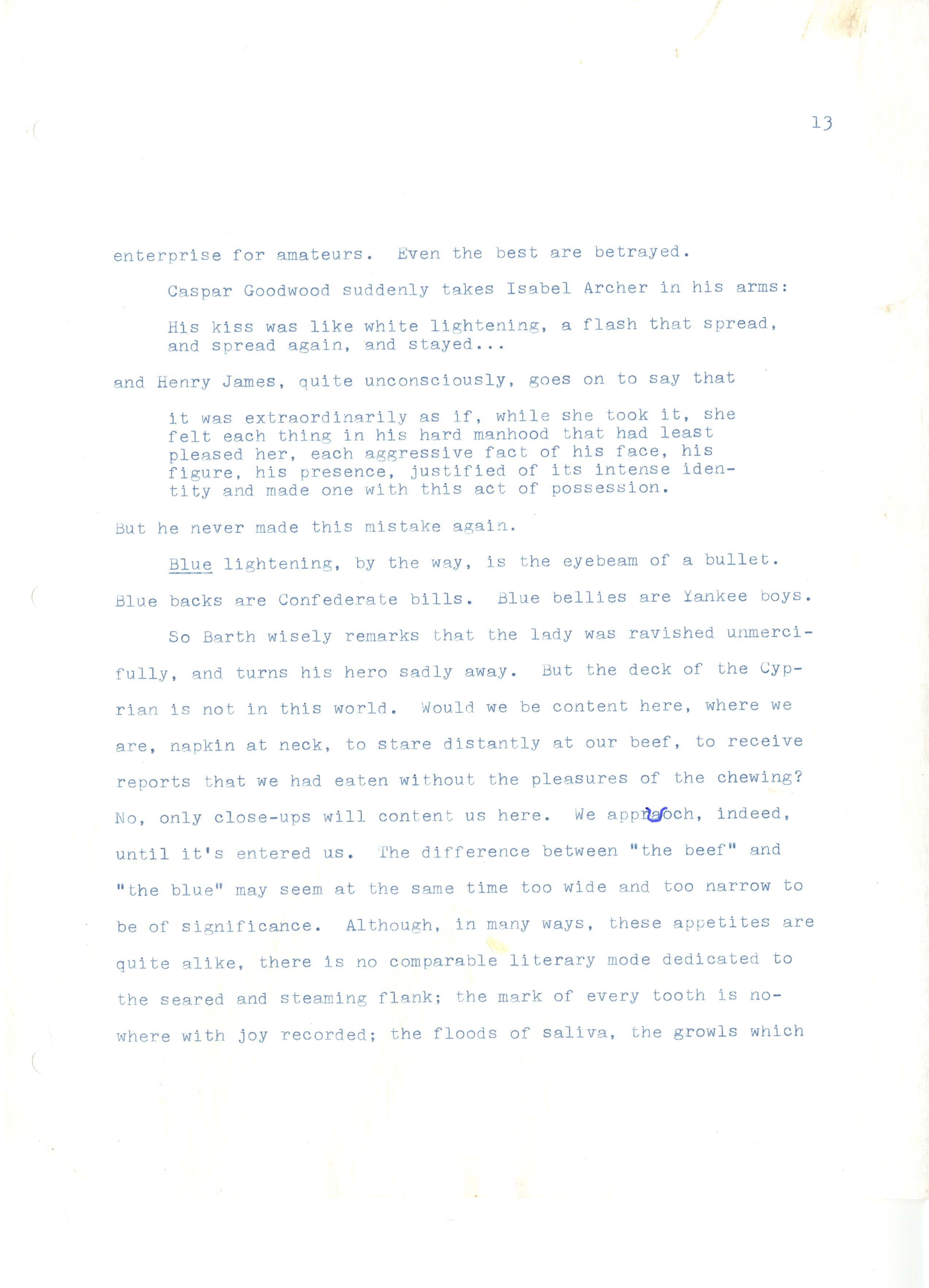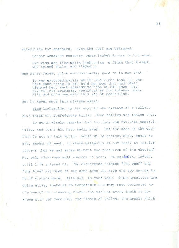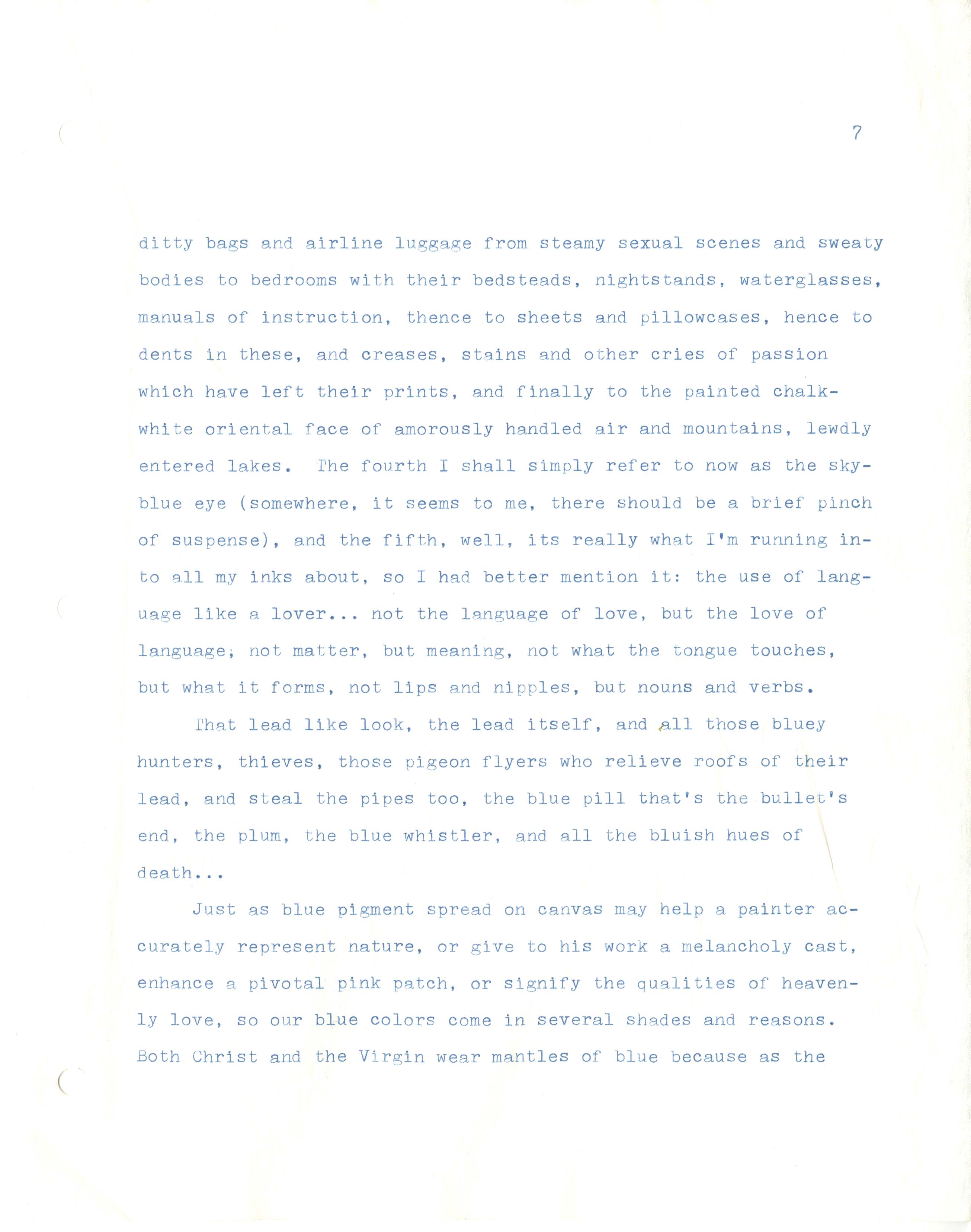Gass, William H., “On Being Blue - Typescript Draft and Fragments”, Not dated, William H. Gass: The Soul Inside the Sentence, accessed February 11, 2026, https://digitalexhibits.library.wustl.edu/s/gass/item/14433