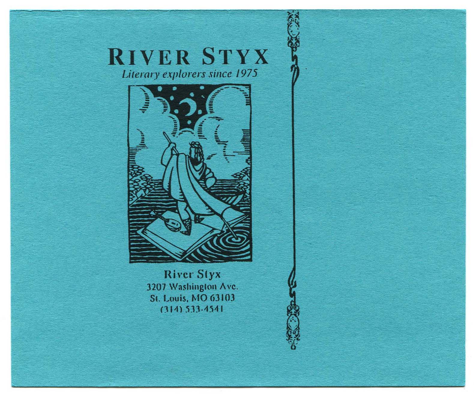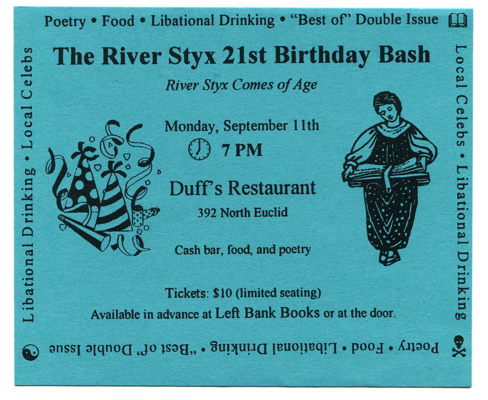 “‘River Styx 21st Birthday Bash’ Invitation”. 1995, William H. Gass: The Soul Inside the Sentence, accessed February 11, 2026, https://digitalexhibits.library.wustl.edu/s/gass/item/14444