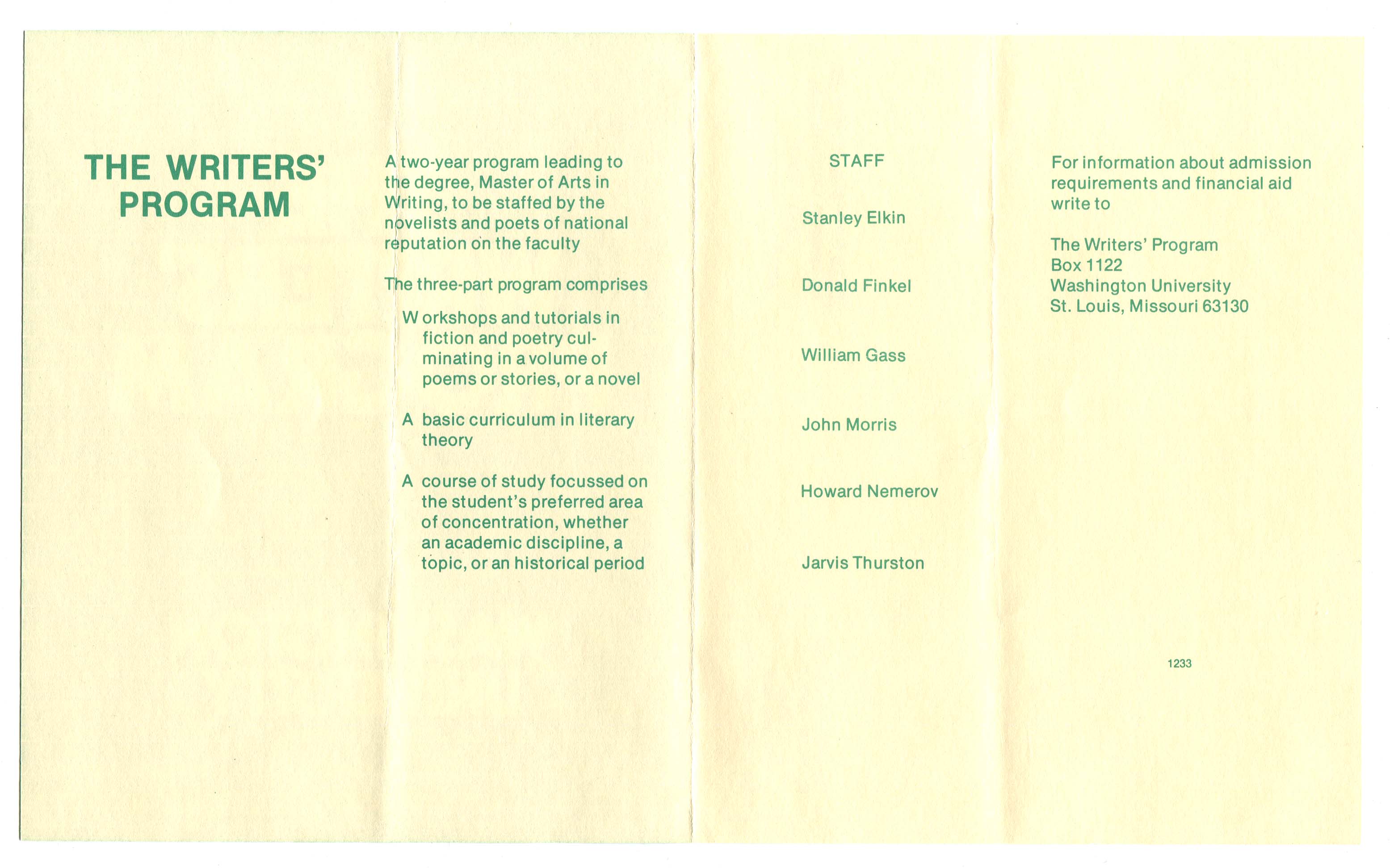 The Writers' Program at Washington University Brochure