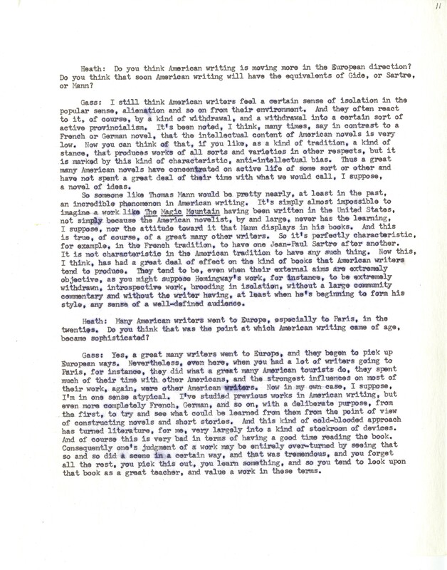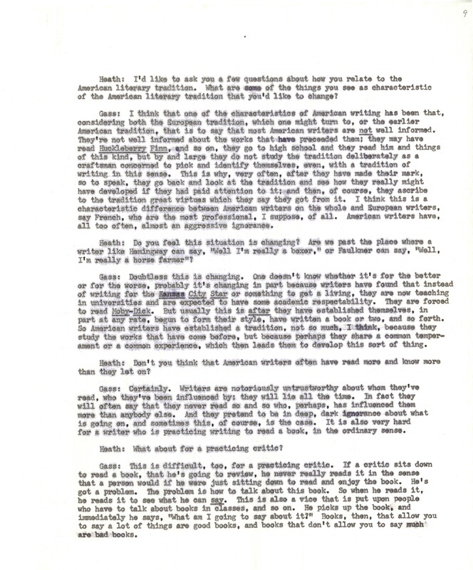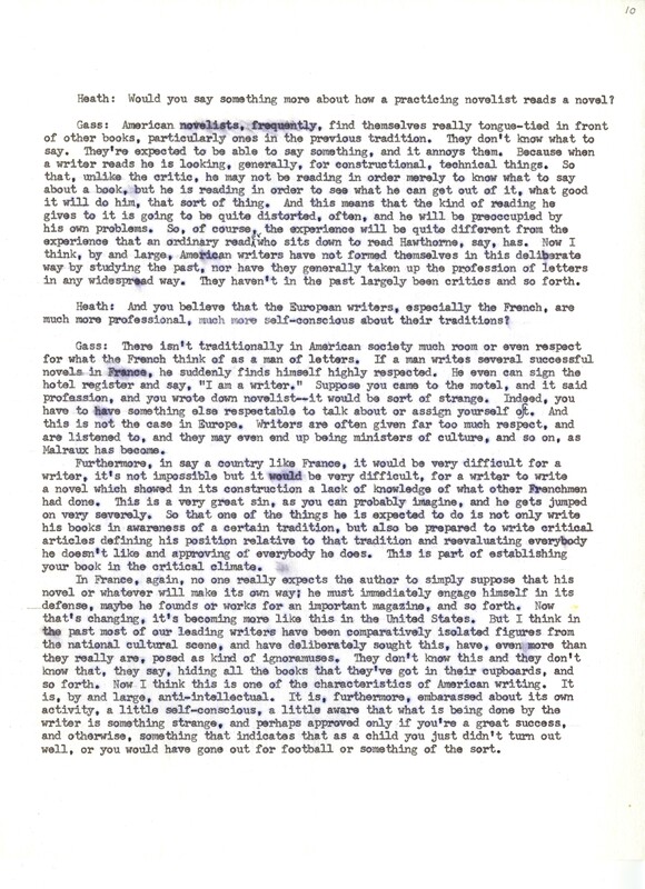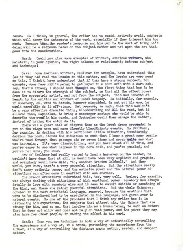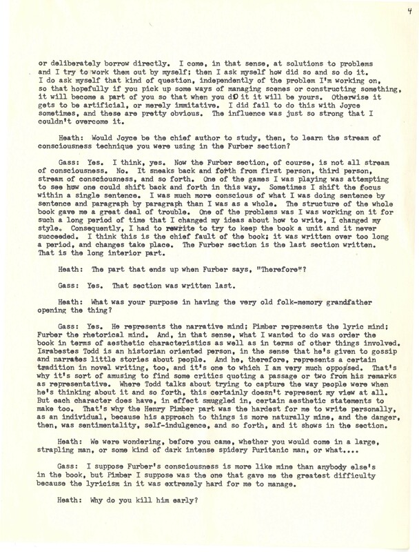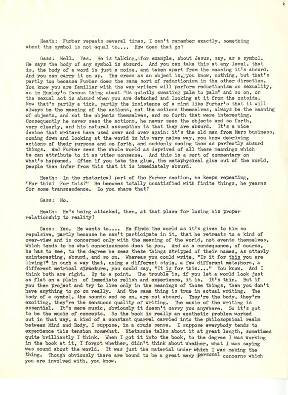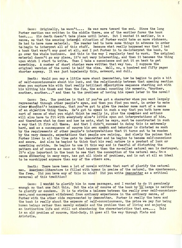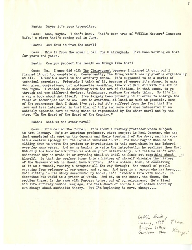 Heath, William. 1967. “‘Interview With William H. Gass’ by William Heath”. The Kenyon College Alumni Bulletin, William H. Gass: The Soul Inside the Sentence, accessed February 10, 2026, https://digitalexhibits.library.wustl.edu/s/gass/item/15063