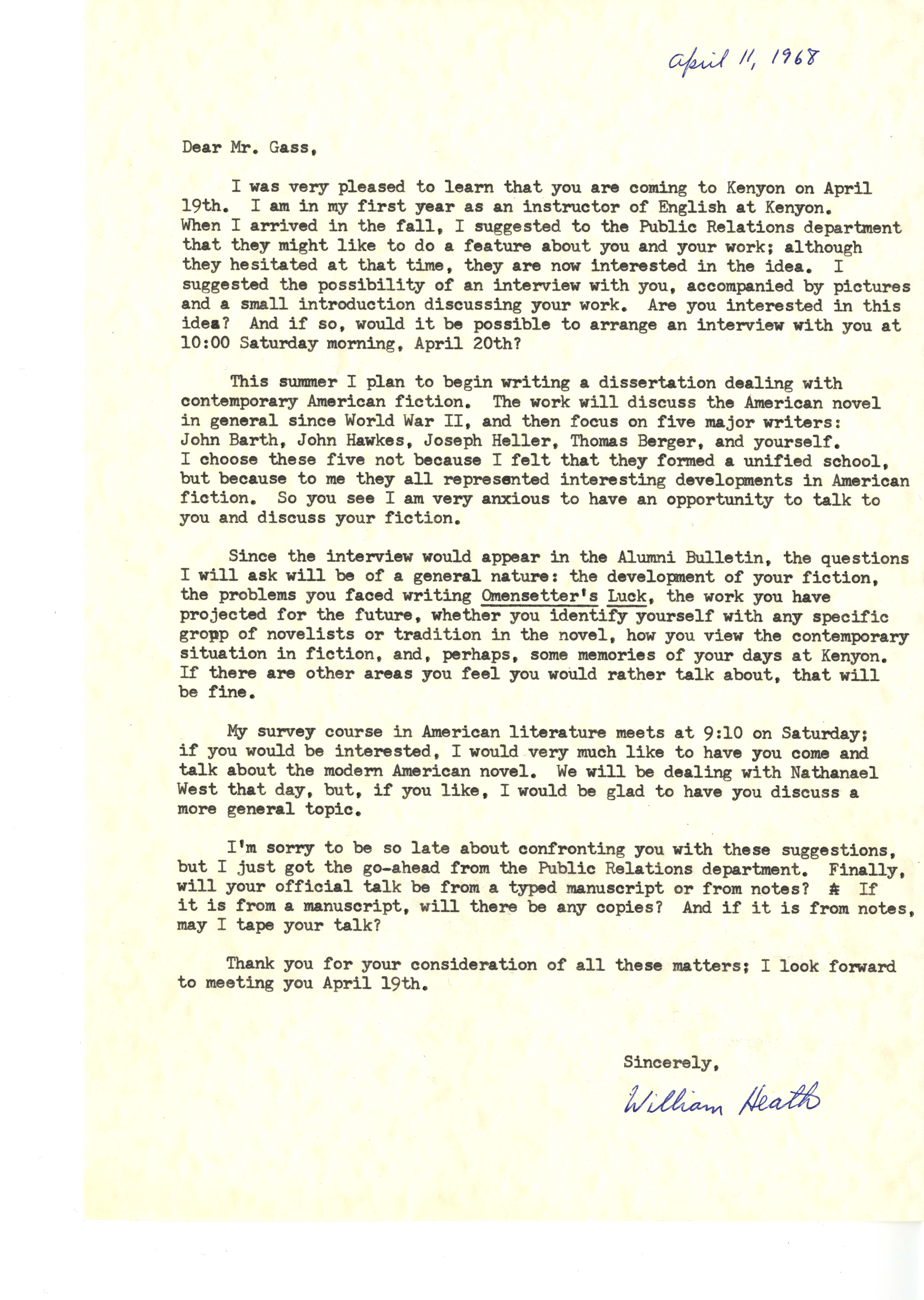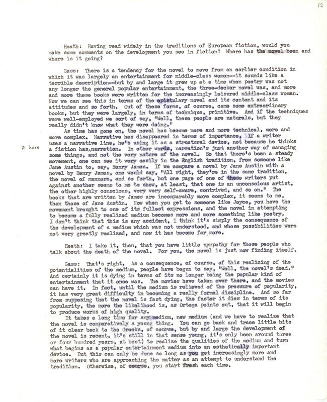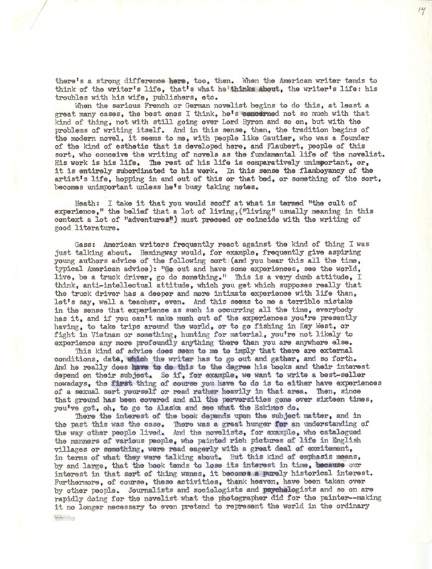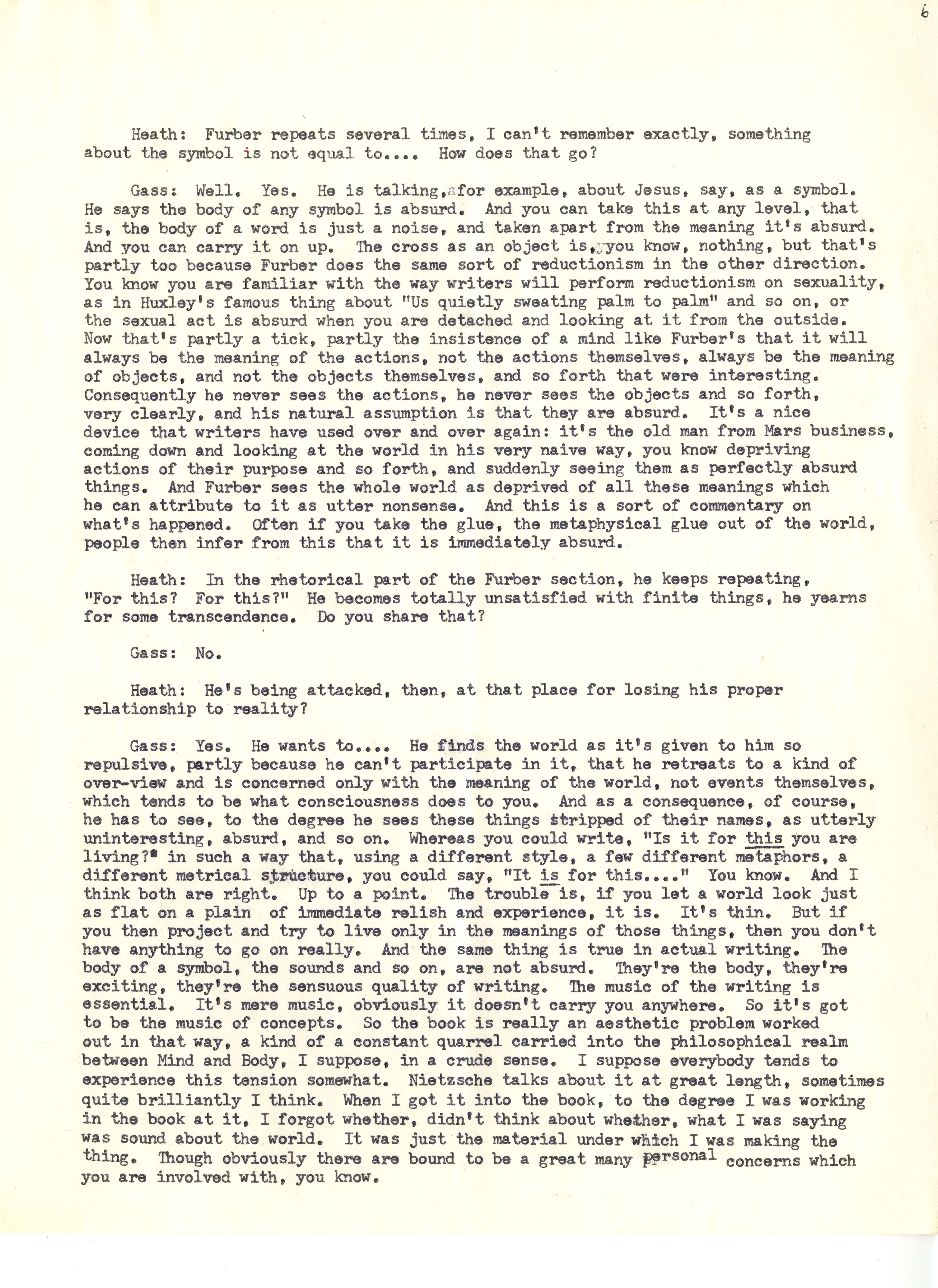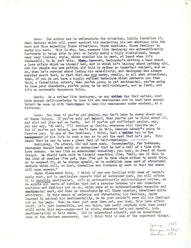 Heath, William. 1967. “‘Interview With William H. Gass’ by William Heath”. The Kenyon College Alumni Bulletin, William H. Gass: The Soul Inside the Sentence, accessed February 10, 2026, https://digitalexhibits.library.wustl.edu/s/gass/item/15063
