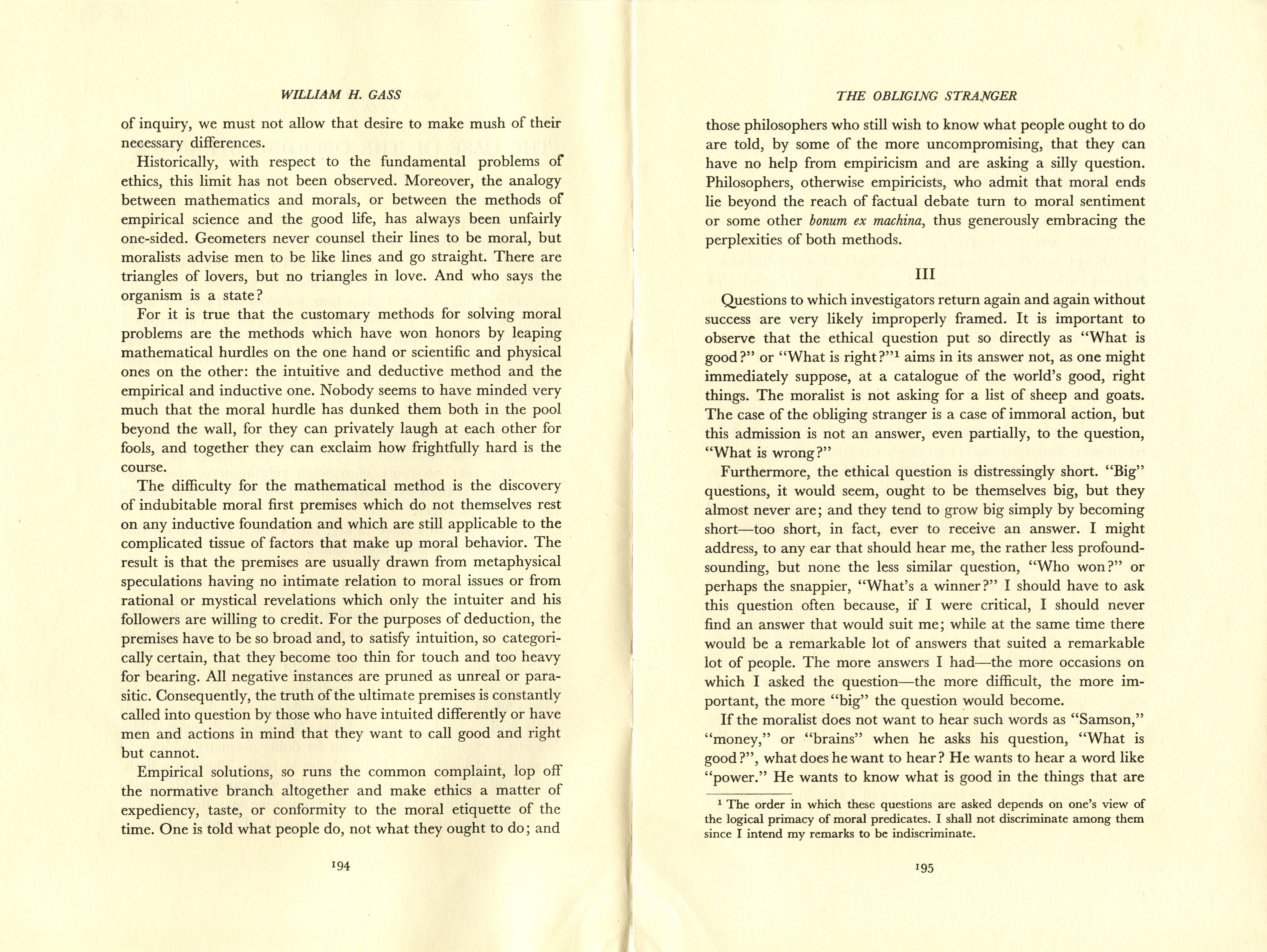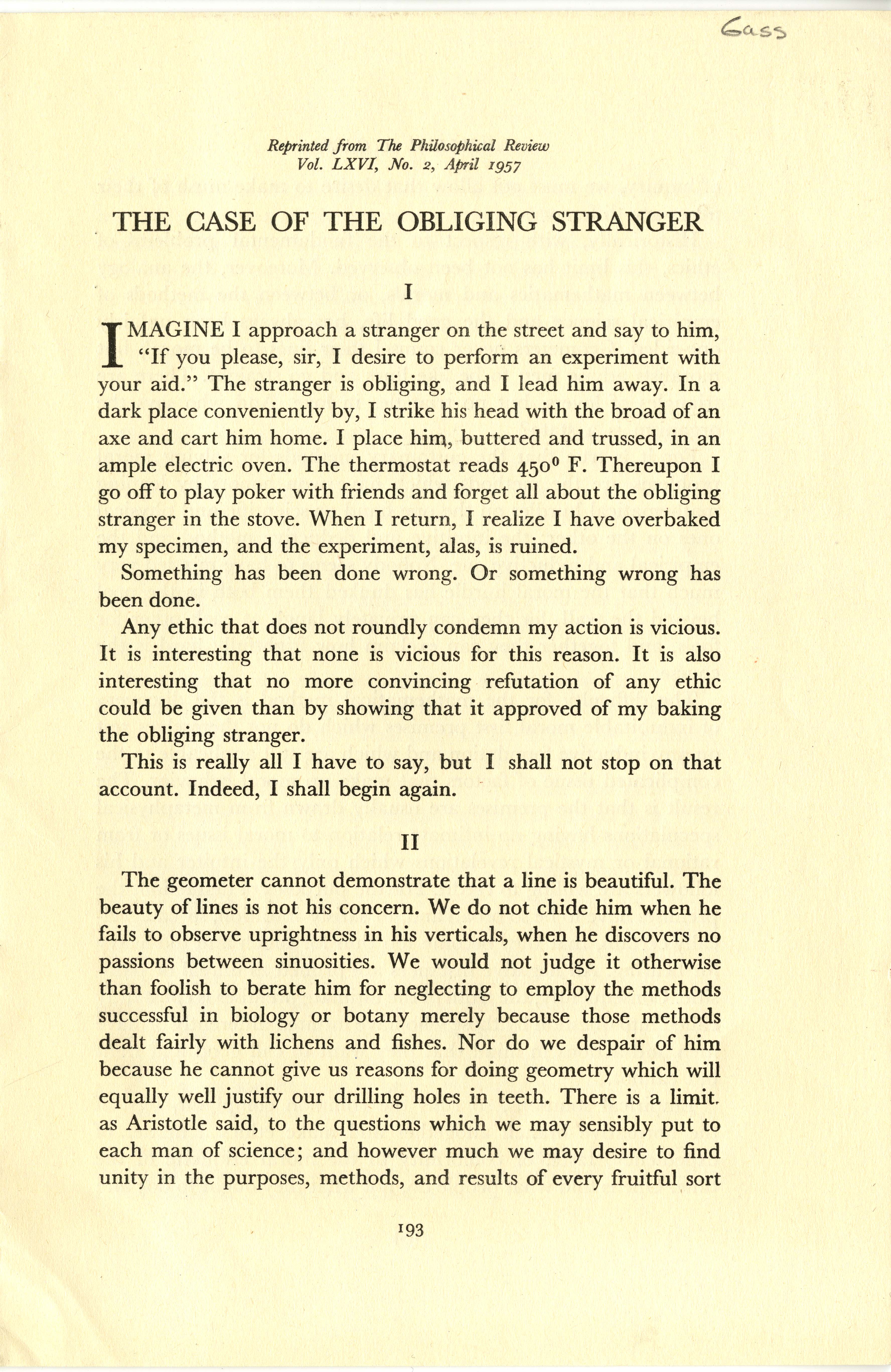 Gass, William H. 1957. “‘The Case of the Obliging Stranger’”. The Philosphical Review, William H. Gass: The Soul Inside the Sentence, accessed February 10, 2026, https://digitalexhibits.library.wustl.edu/s/gass/item/15068