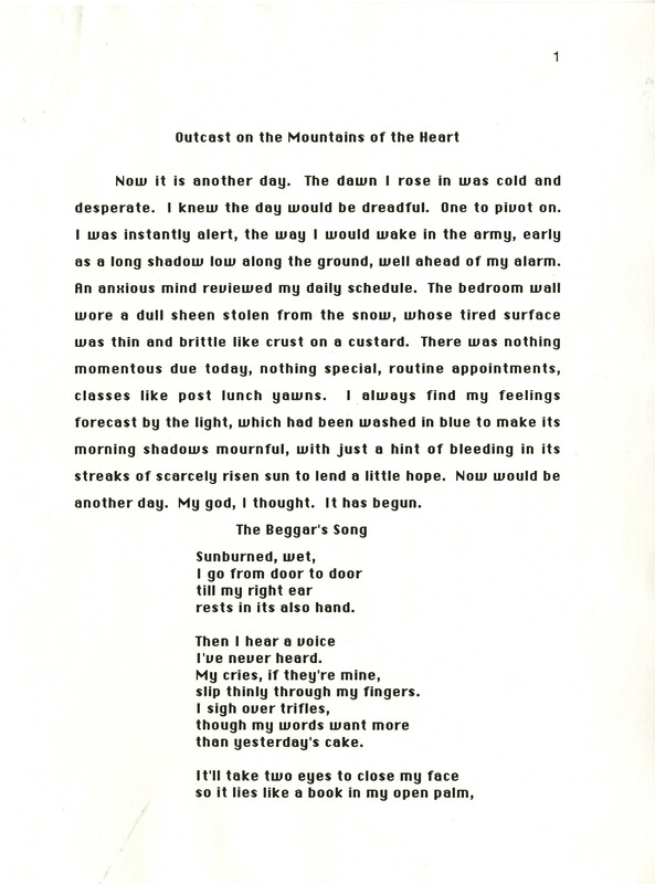 "Outcast on the Mountains of the Heart" Draft Pages