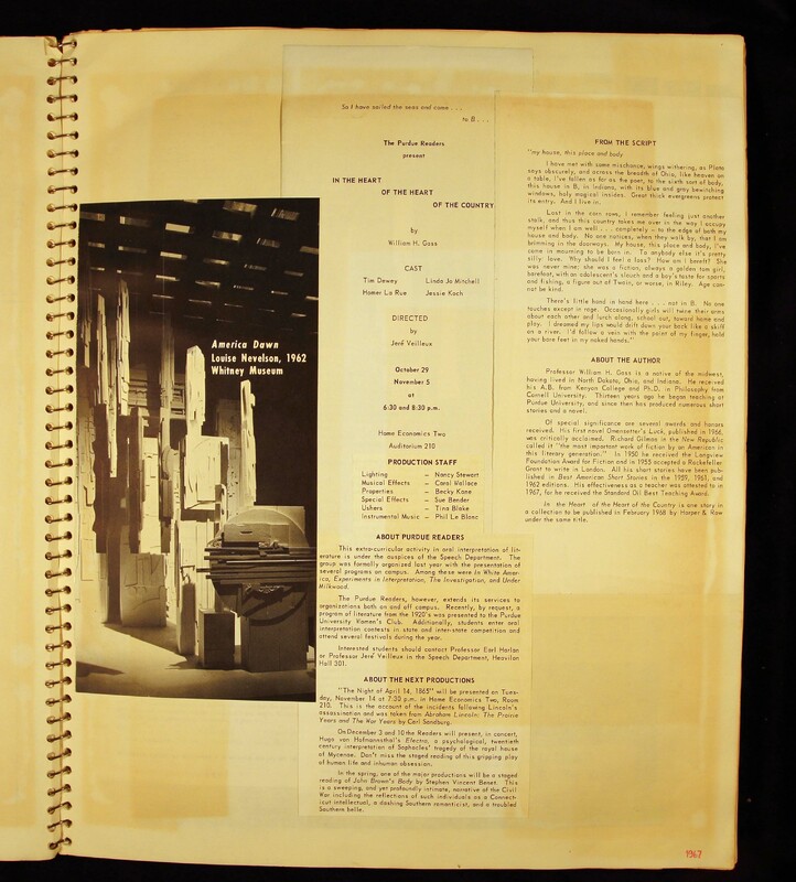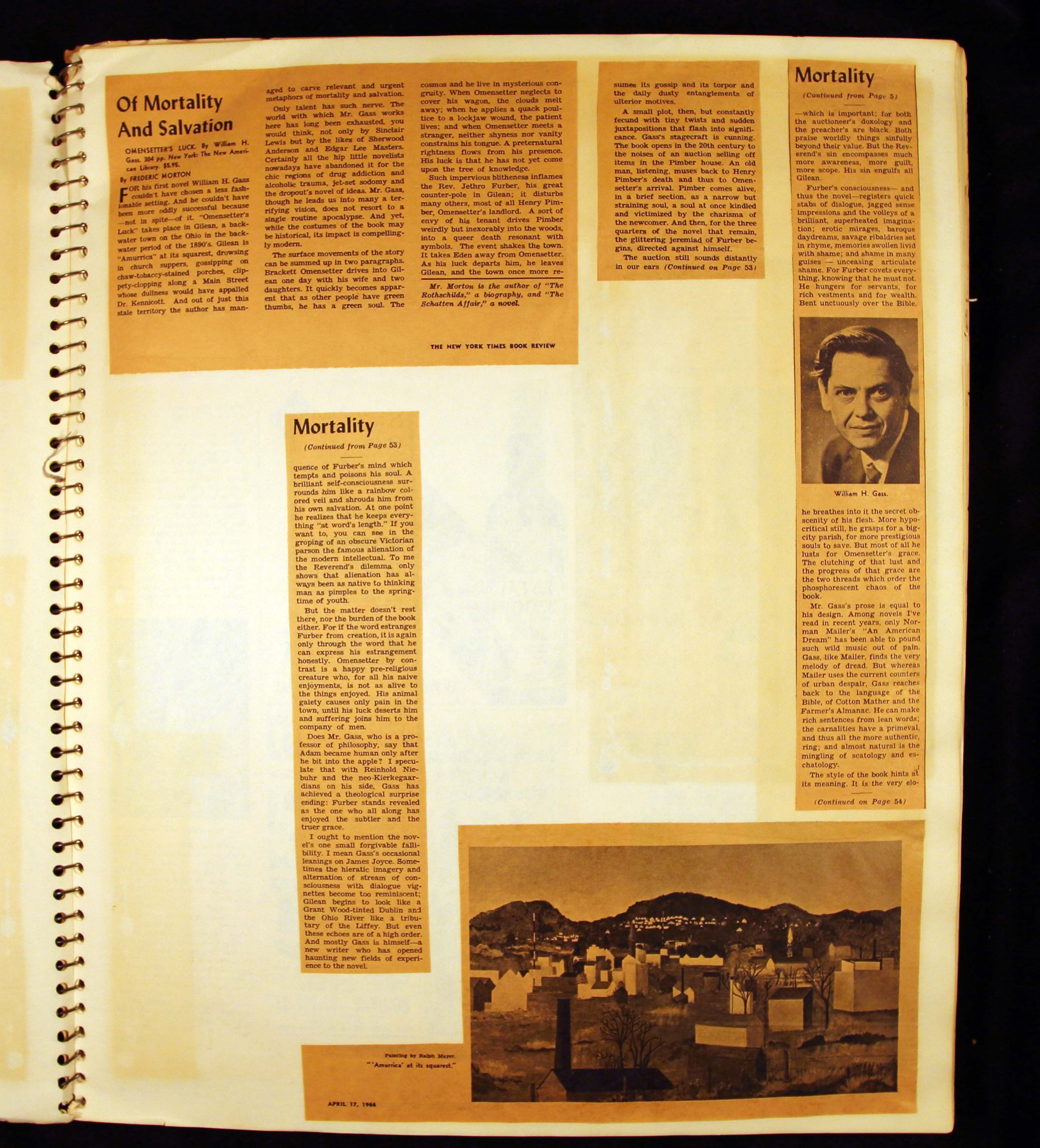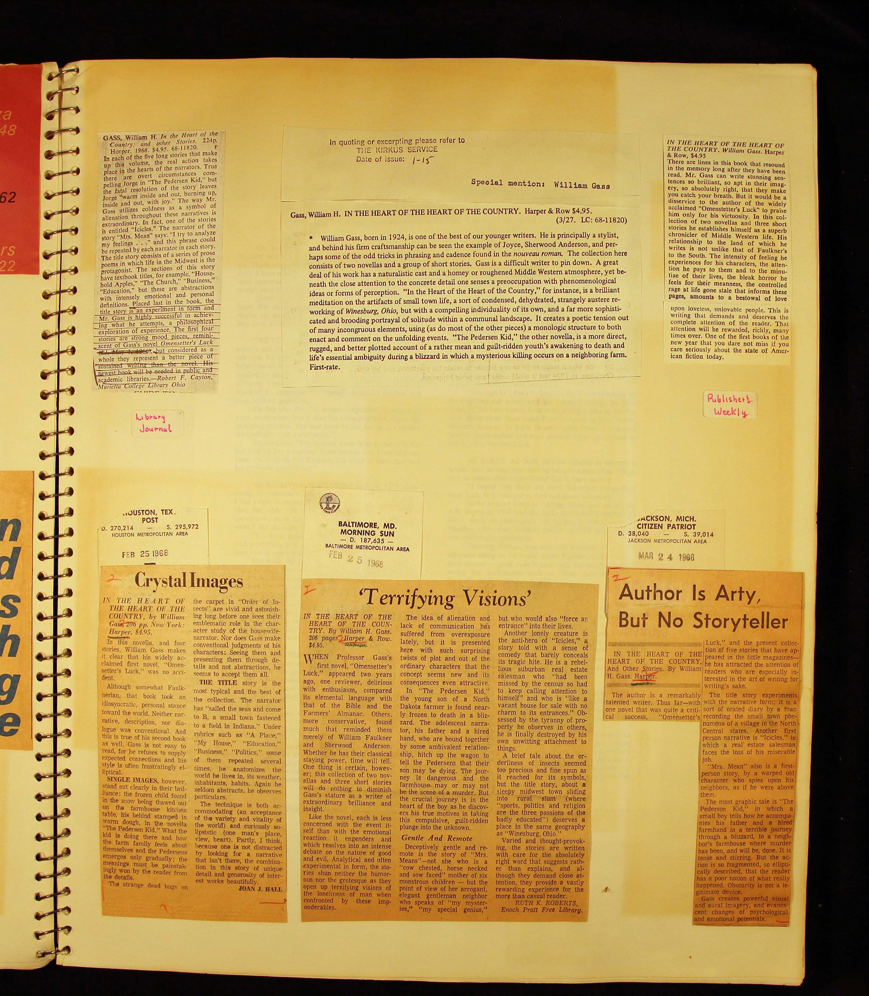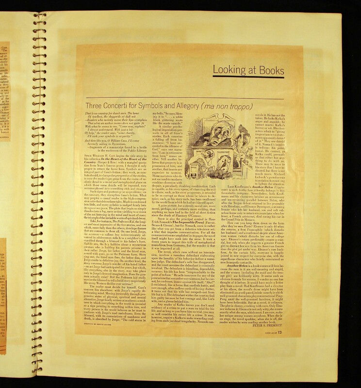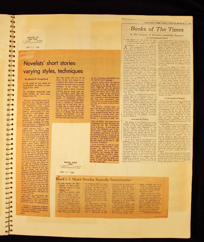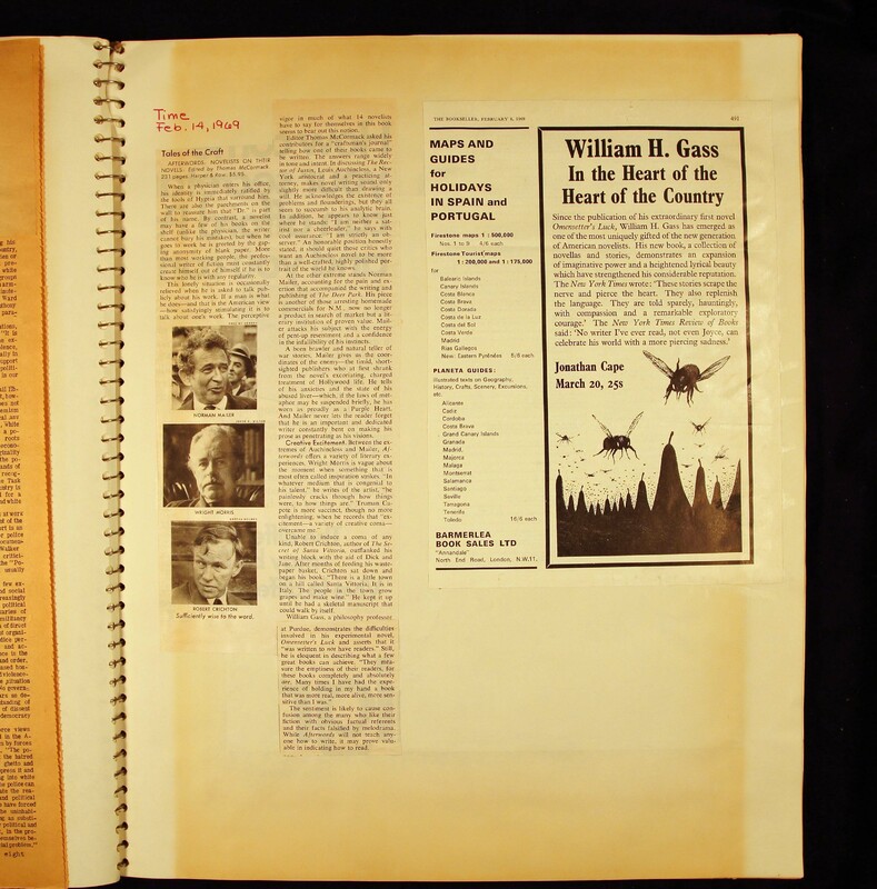 - Scrapbook created by William H. Gass containing clippings of articles, reviews and advertisements, as well as some photographs, spanning the 1950s and 1960s.