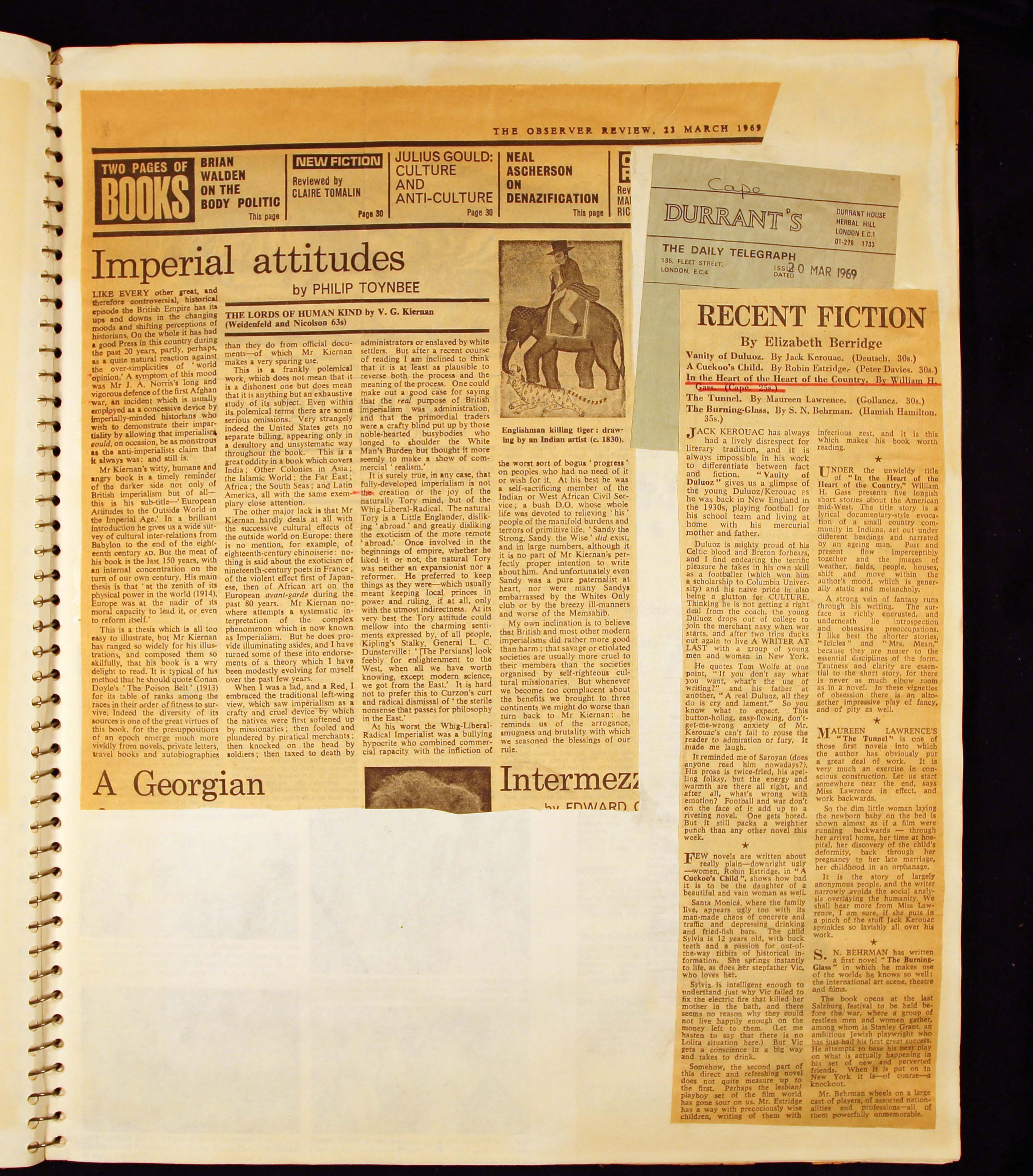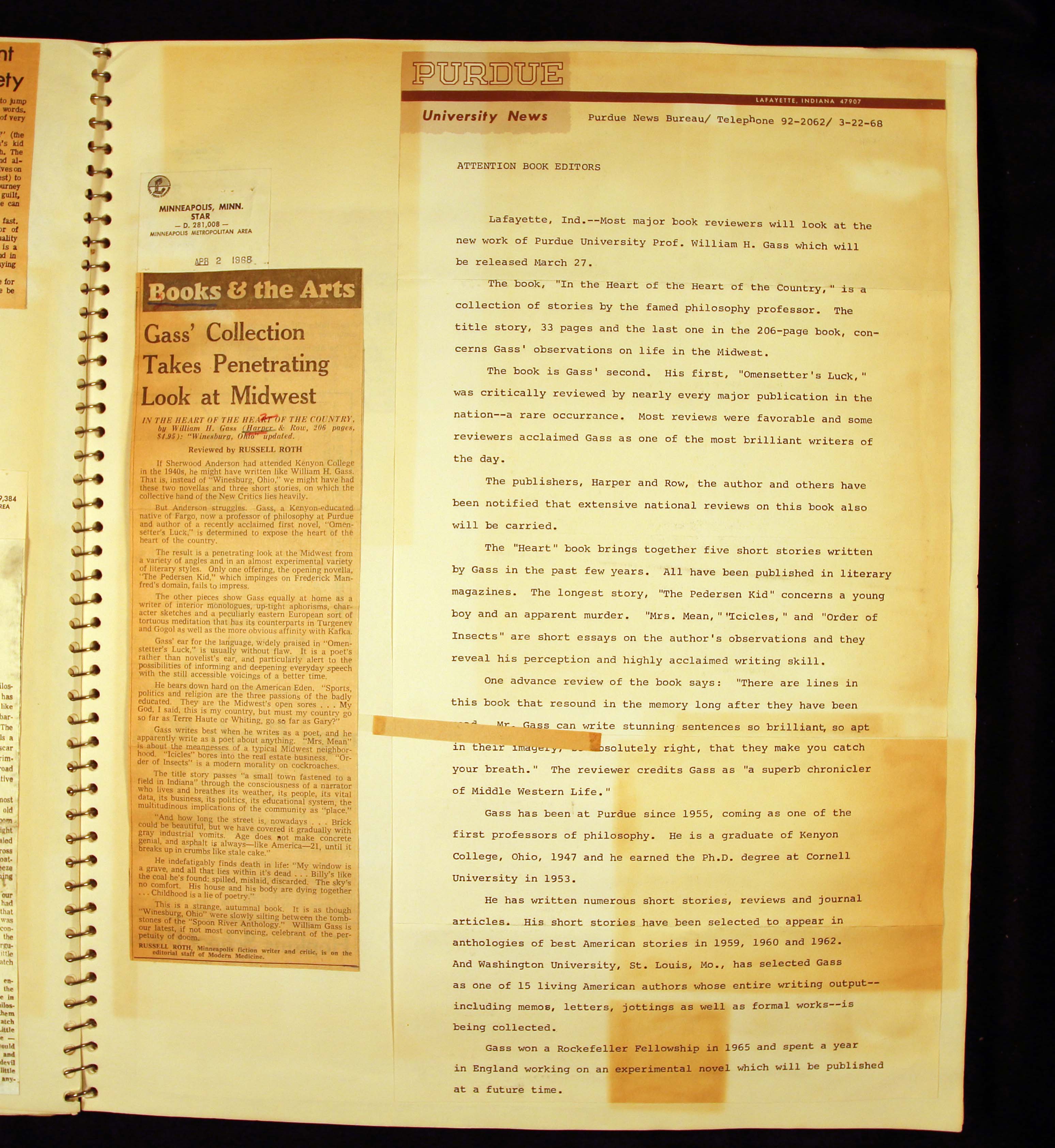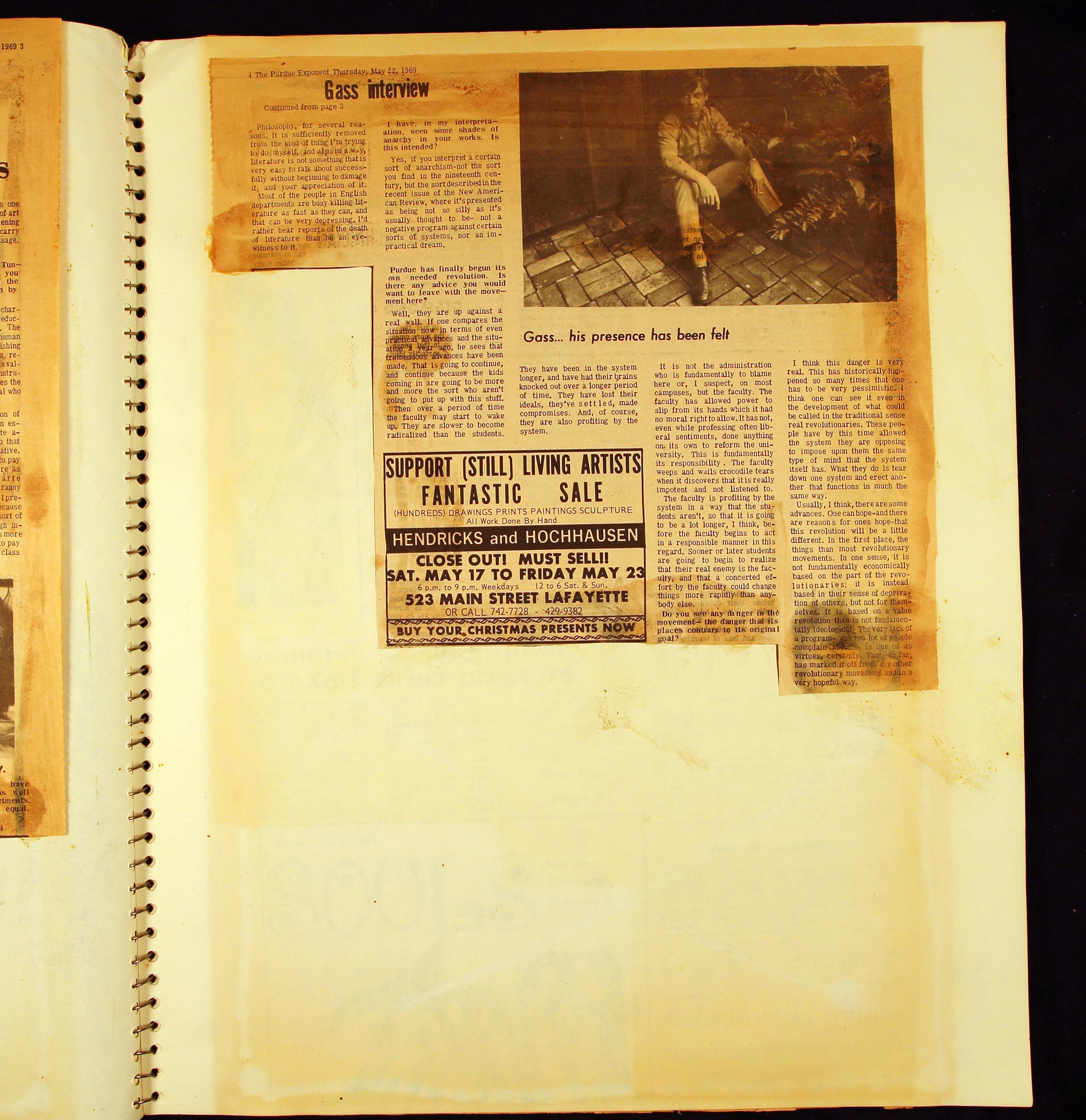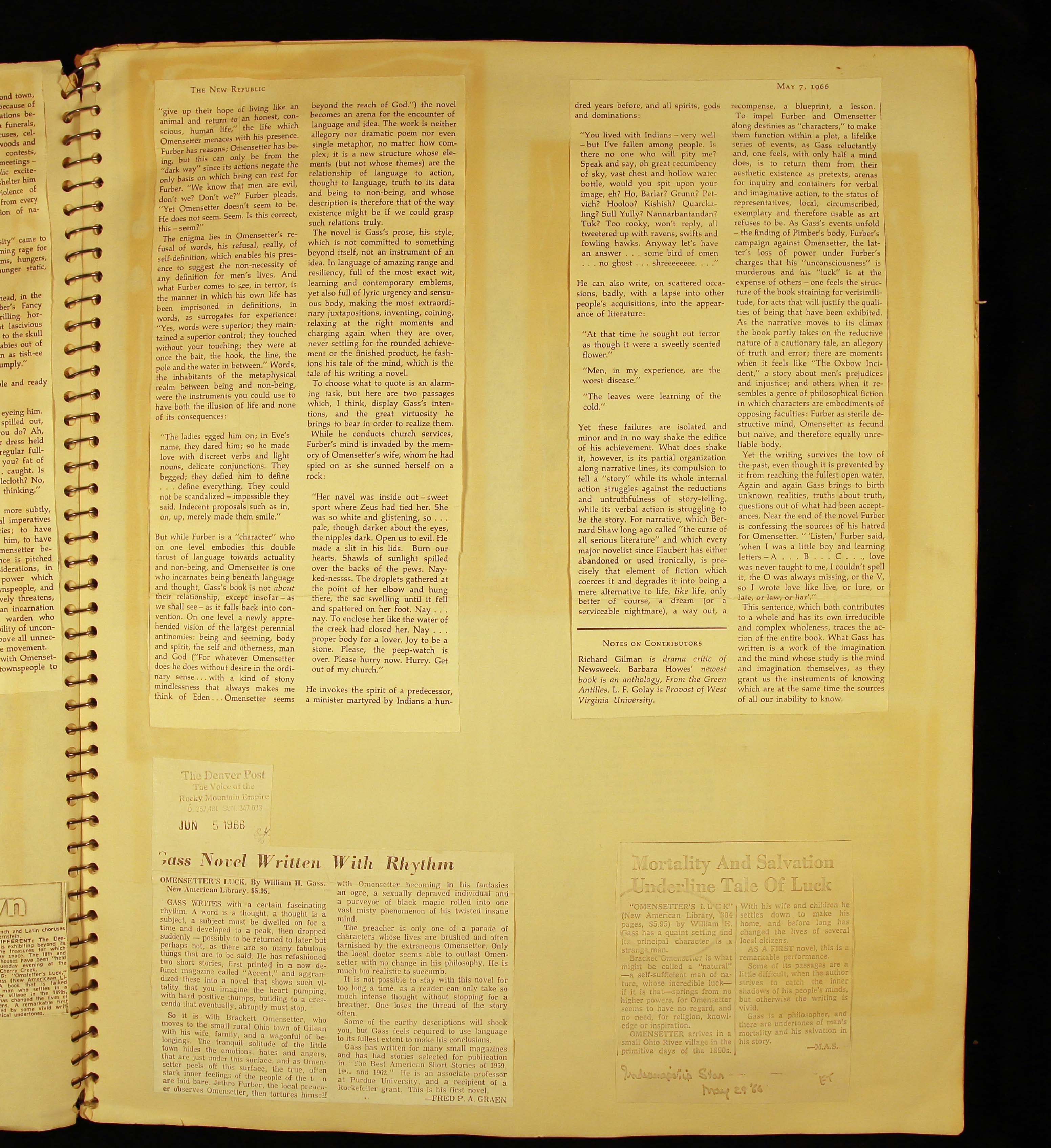 - Scrapbook created by William H. Gass containing clippings of articles, reviews and advertisements, as well as some photographs, spanning the 1950s and 1960s.