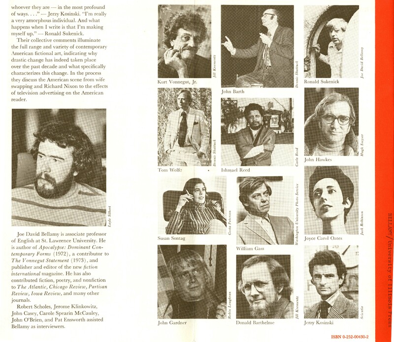 Bellamy, Joe David. 1974. “The New Fiction: Interviews With Innovative American Writers Prospectus and Book Order Form, 1975”. University of Illonois, William H. Gass: The Soul Inside the Sentence, accessed February 10, 2026, https://digitalexhibits.library.wustl.edu/s/gass/item/15376