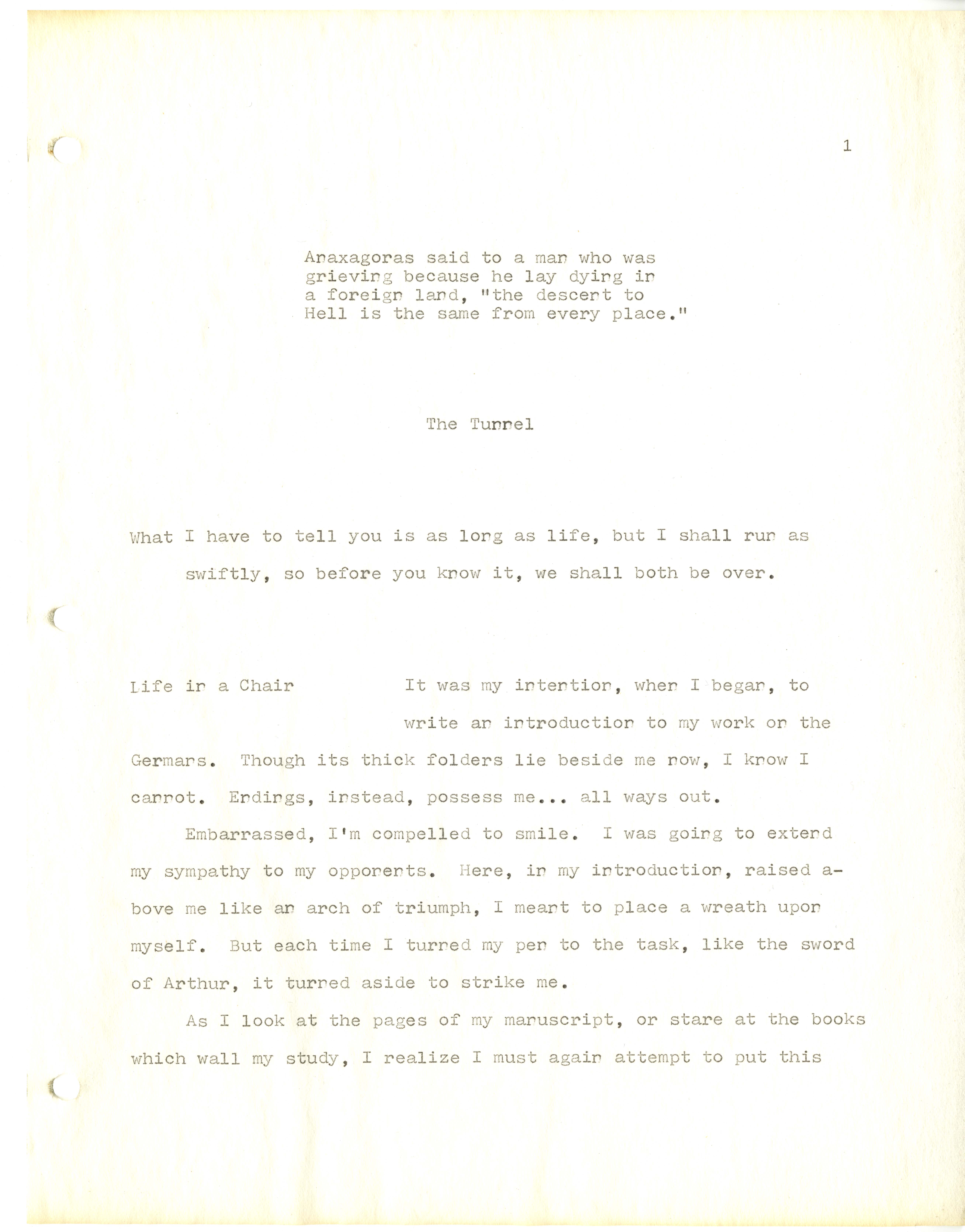 First typed draft of The Tunnel