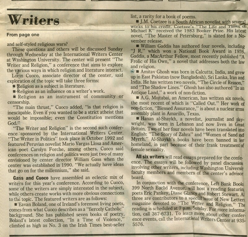 Asim, Jabari. 1994. “‘The Writer and Religion’ by Jabari Asim”. St. Louis Post-Dispatch, William H. Gass: The Soul Inside the Sentence, accessed February 10, 2026, https://digitalexhibits.library.wustl.edu/s/gass/item/15398