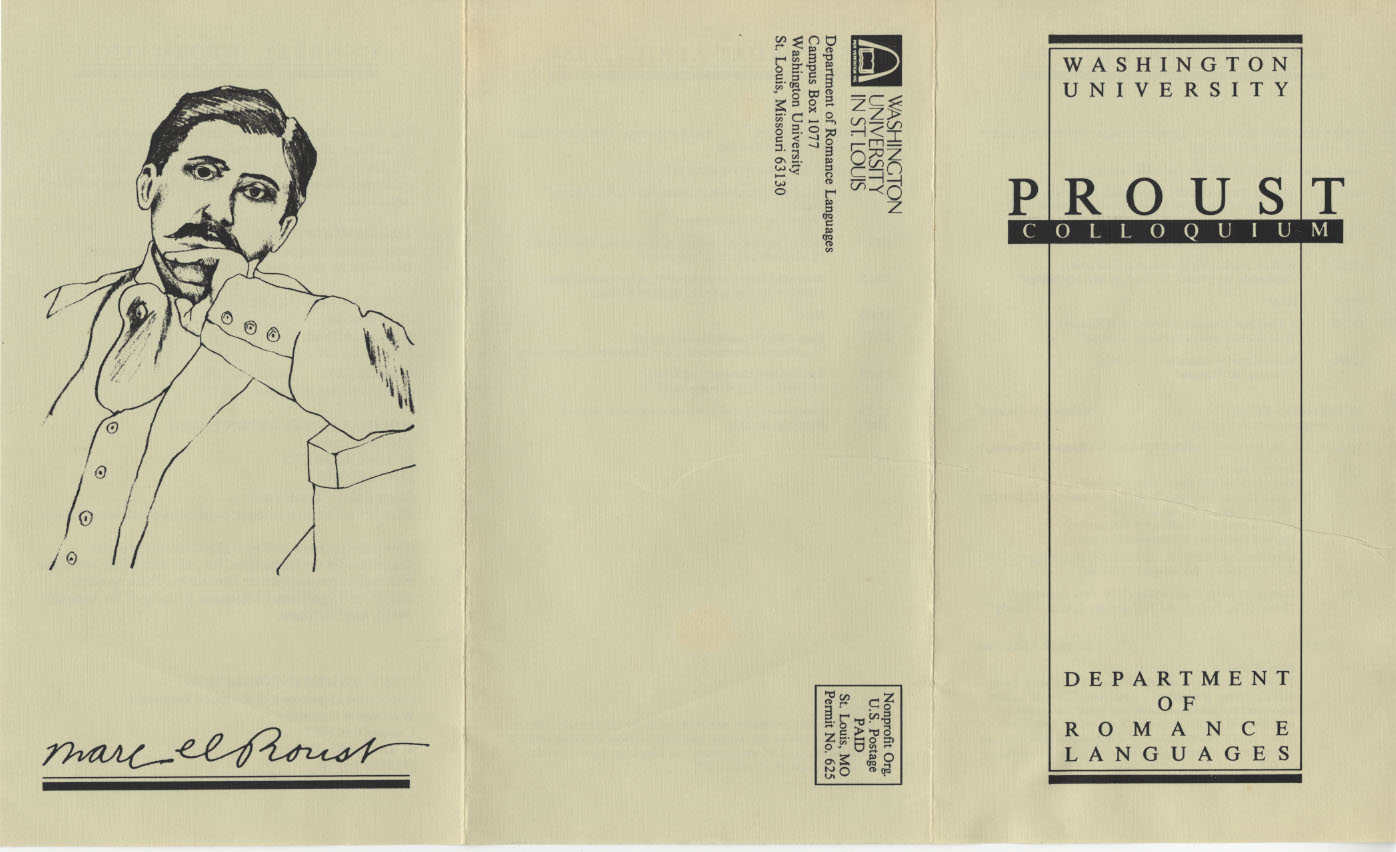 Washington University Department of Romance Languages. 1984. “Proust Colloquium, Washington University Department of Romance Languages”. Washington University Department of Romance Languages, William H. Gass: The Soul Inside the Sentence, accessed February 11, 2026, https://digitalexhibits.library.wustl.edu/s/gass/item/15404