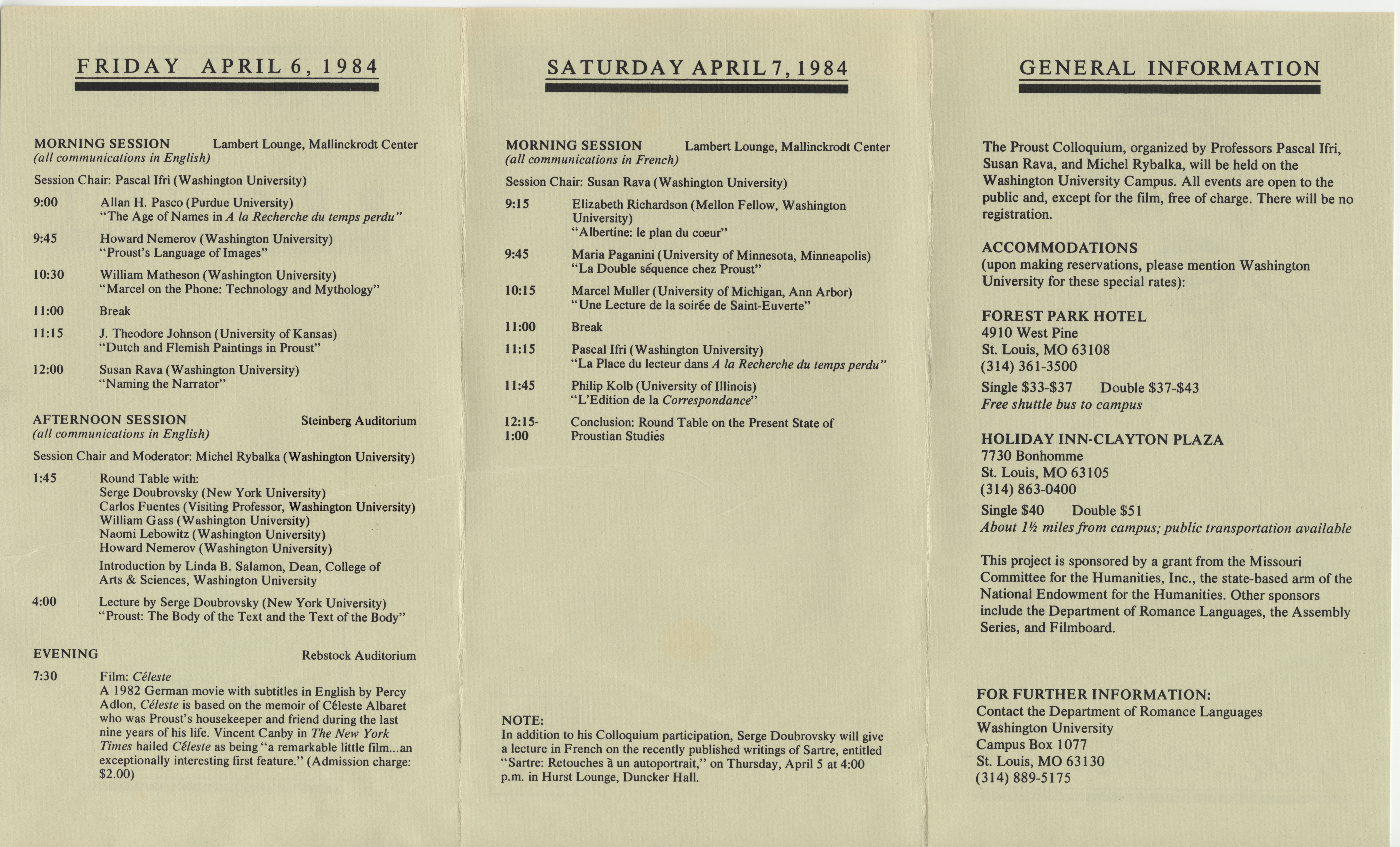 Proust Colloquium, Washington University Department of Romance Languages