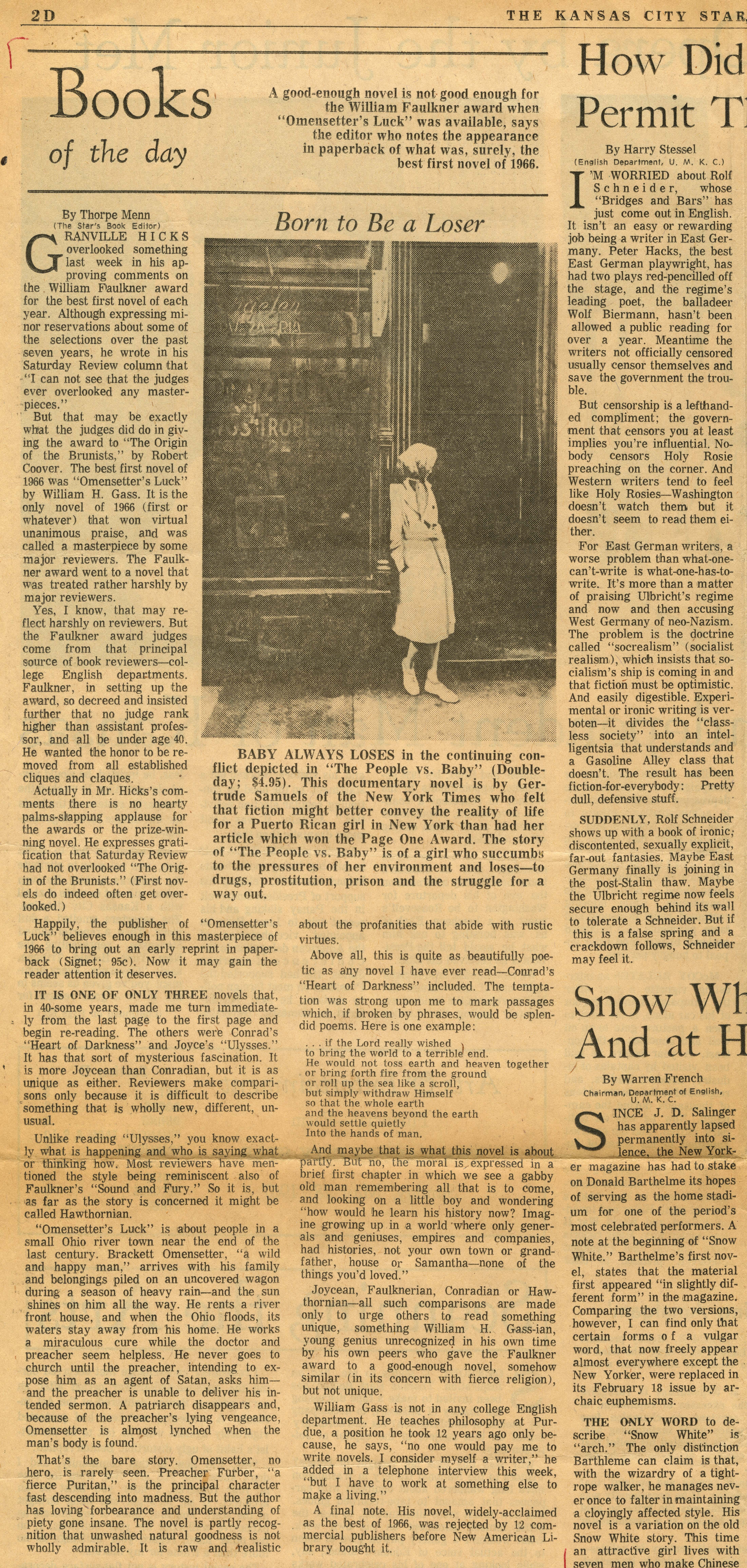 Menn, Thorpe. n.d. “‘Born to Be a Loser’ by Thorpe Menn, The Kansas City Star”. The Kansas City Star, William H. Gass: The Soul Inside the Sentence, accessed February 10, 2026, https://digitalexhibits.library.wustl.edu/s/gass/item/15418
