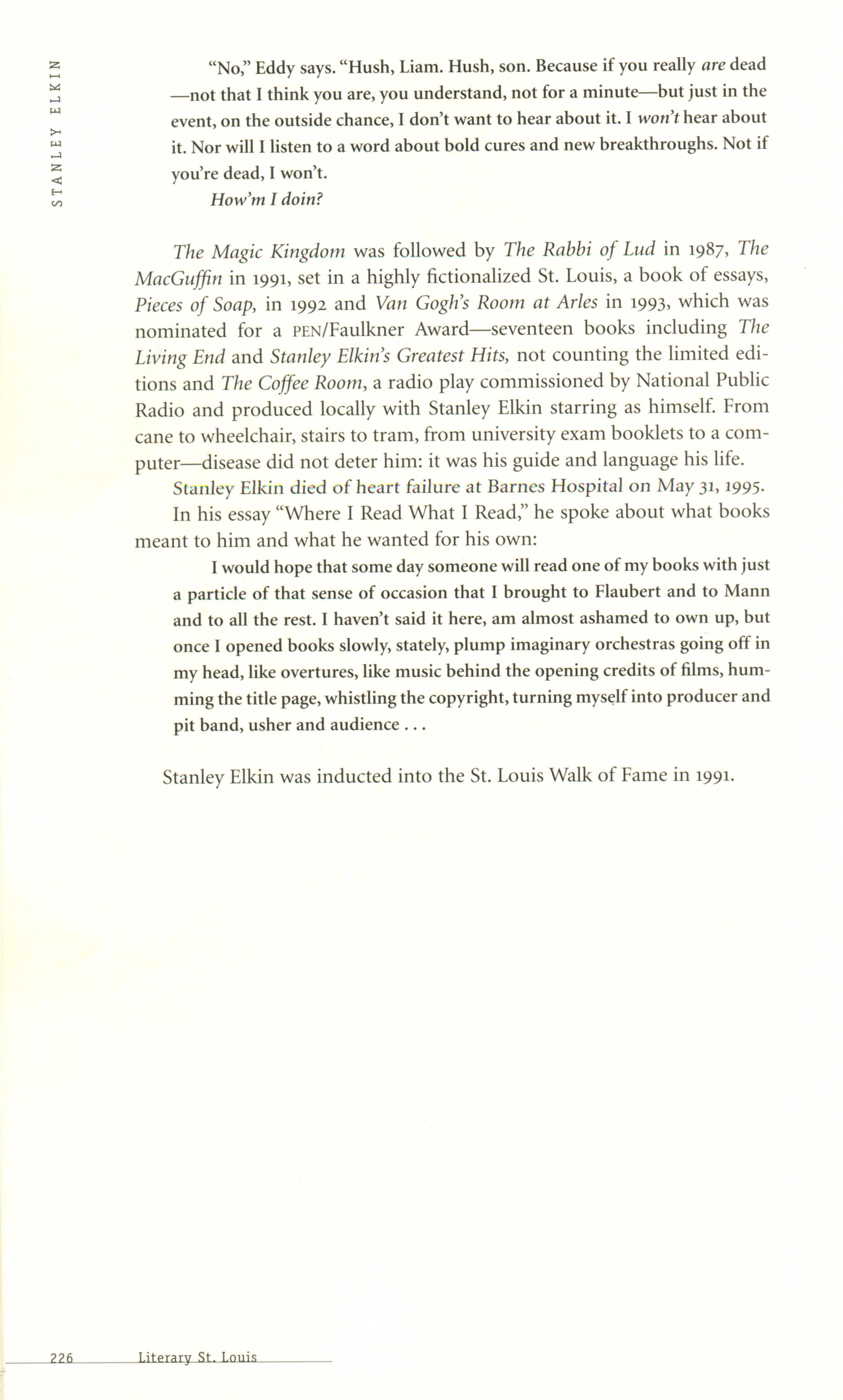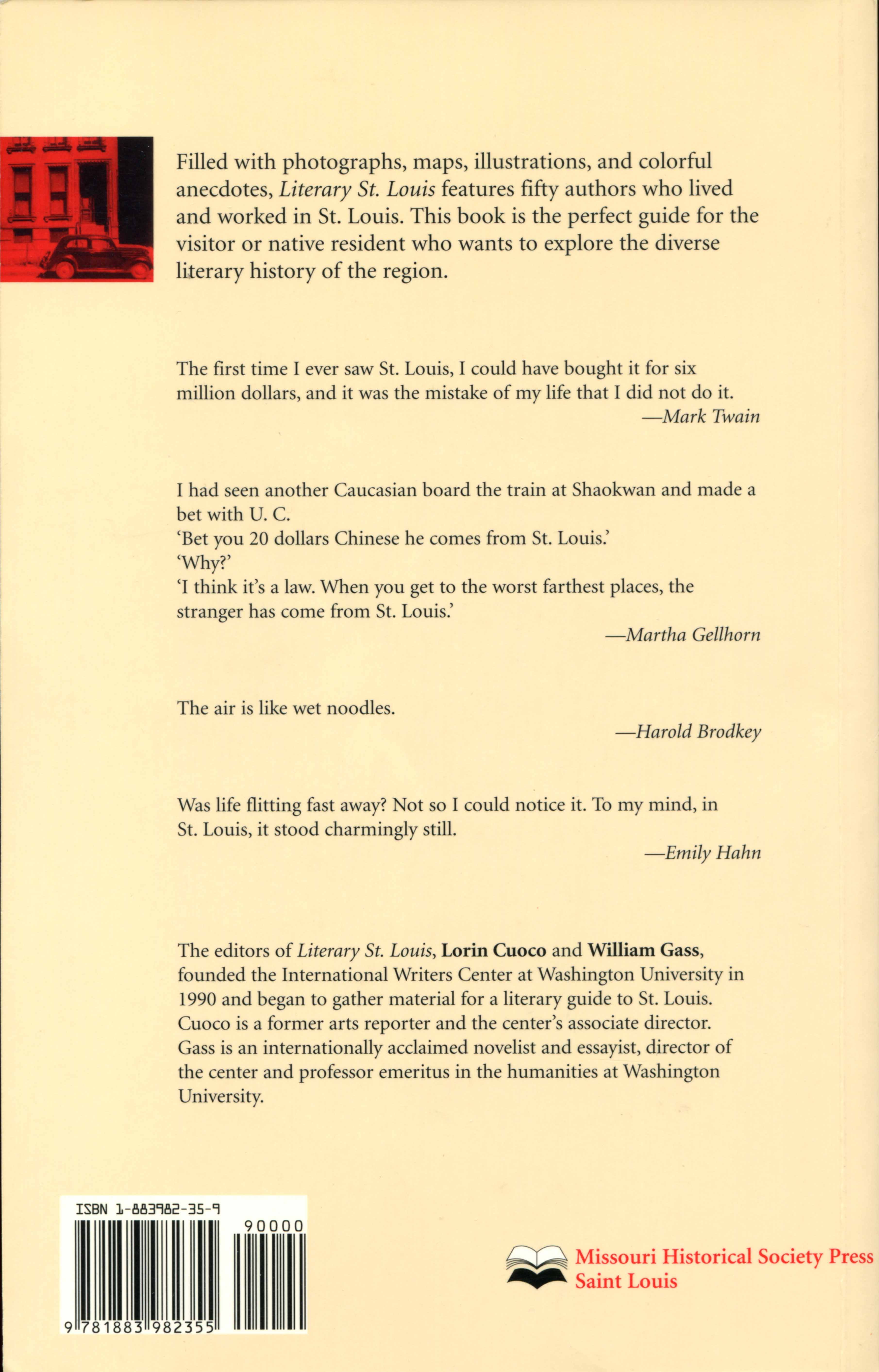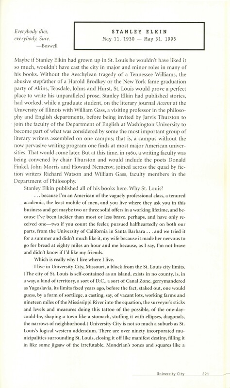 Cuoco, Lorin and Gass, William H., editors. 1999. “Literary St. Louis: A Guide”. Rare Books. International Writers Center and Missouri Historical Society Press, William H. Gass: The Soul Inside the Sentence, accessed February 13, 2026, https://digitalexhibits.library.wustl.edu/s/gass/item/15421