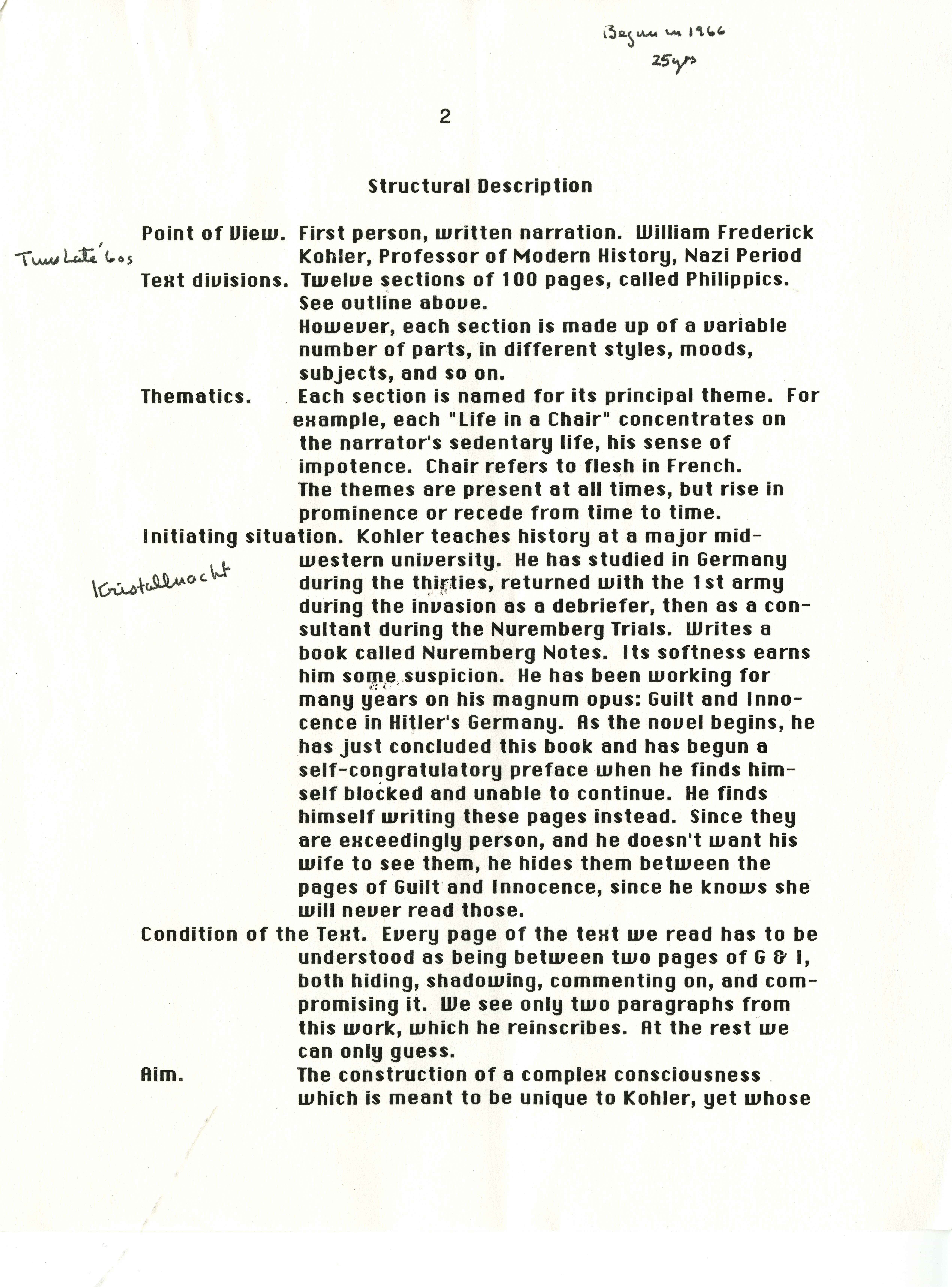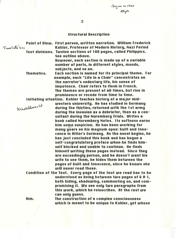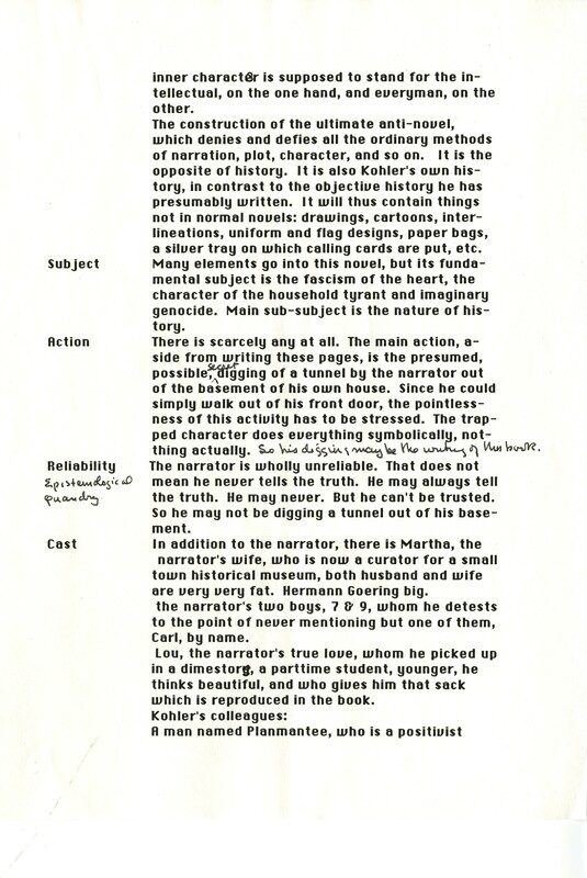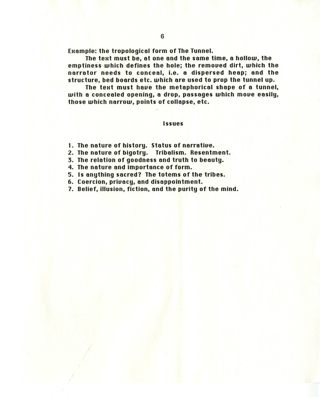 Gass, William H. “Organizational Notes for The Tunnel.”, William H. Gass: The Soul Inside the Sentence, accessed February 11, 2026, https://digitalexhibits.library.wustl.edu/s/gass/item/15422