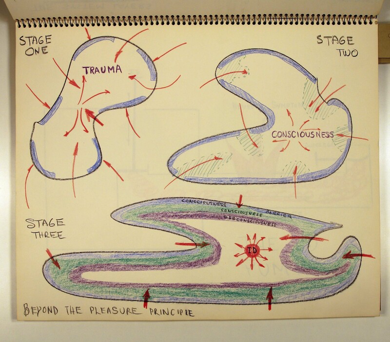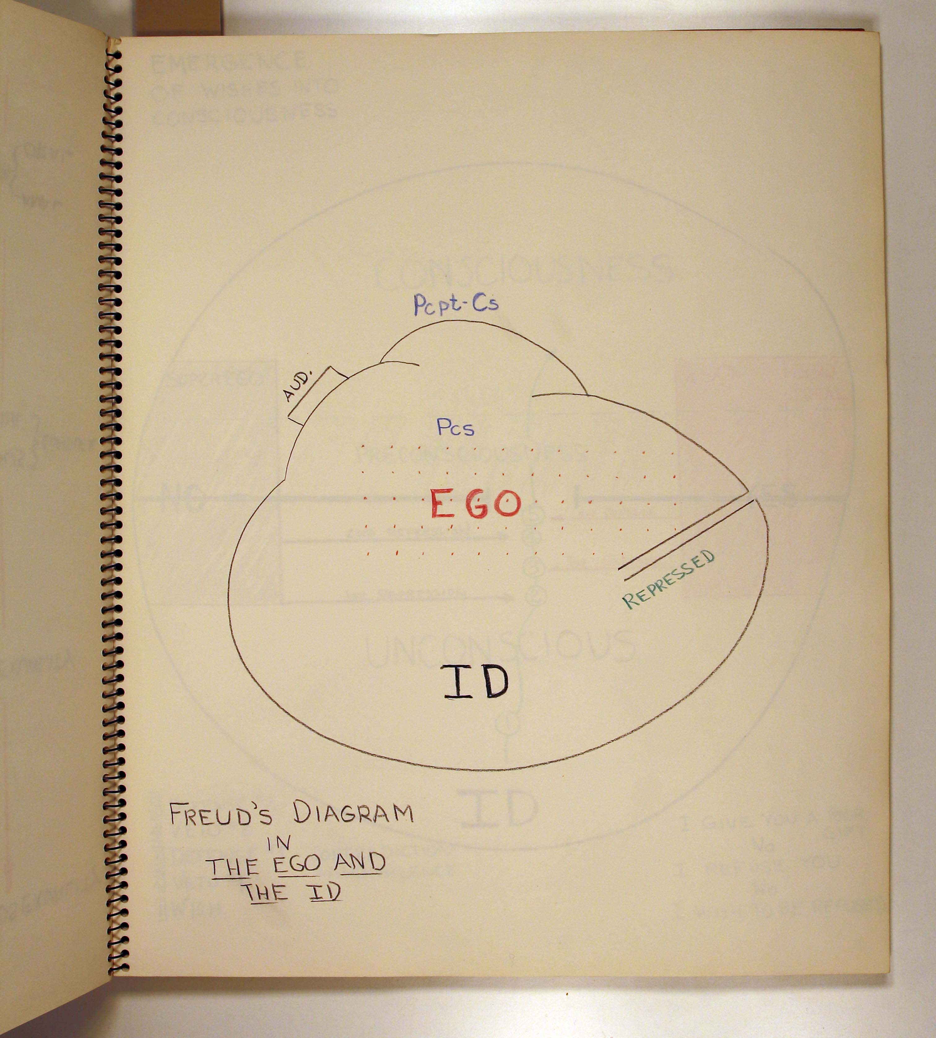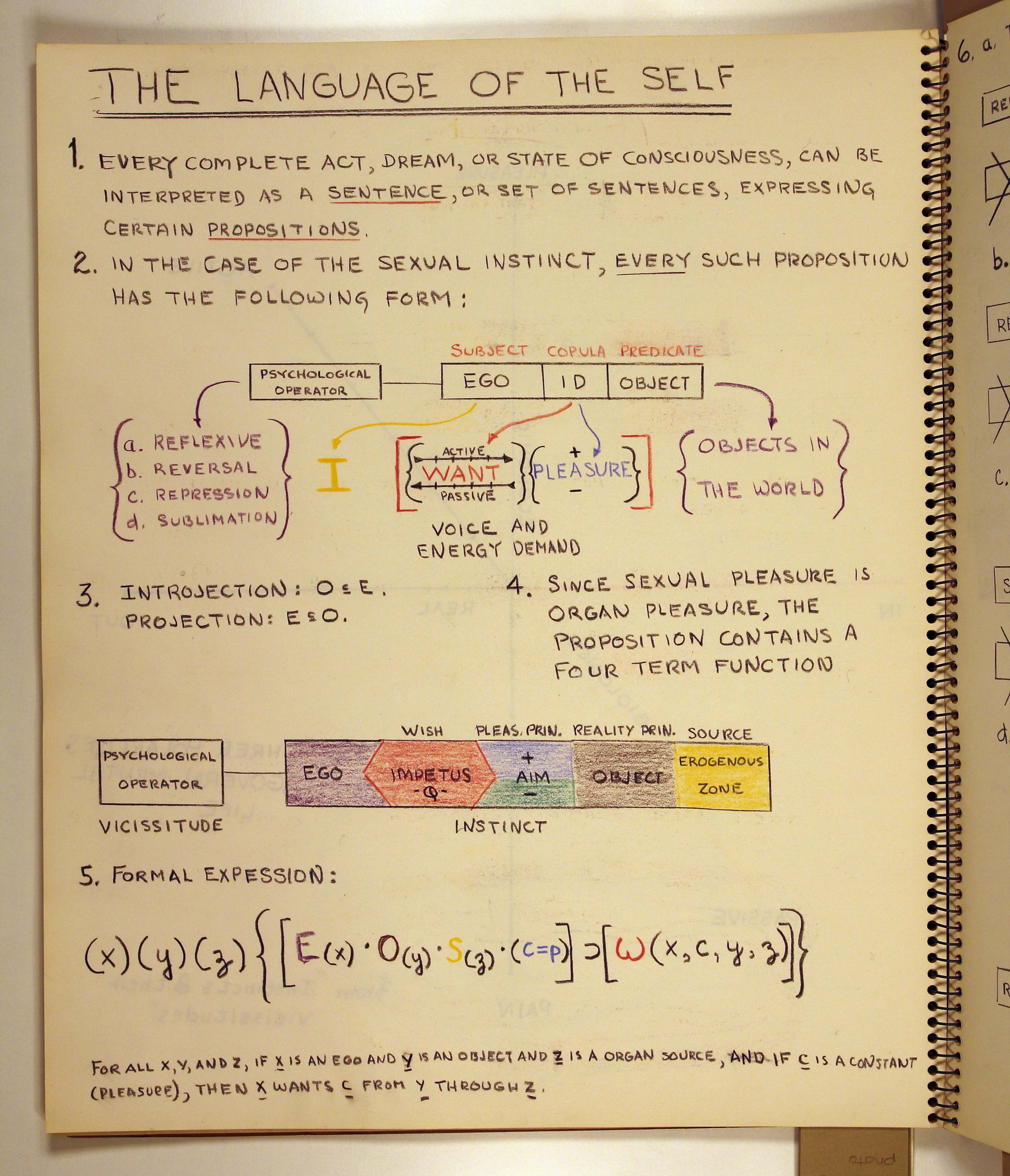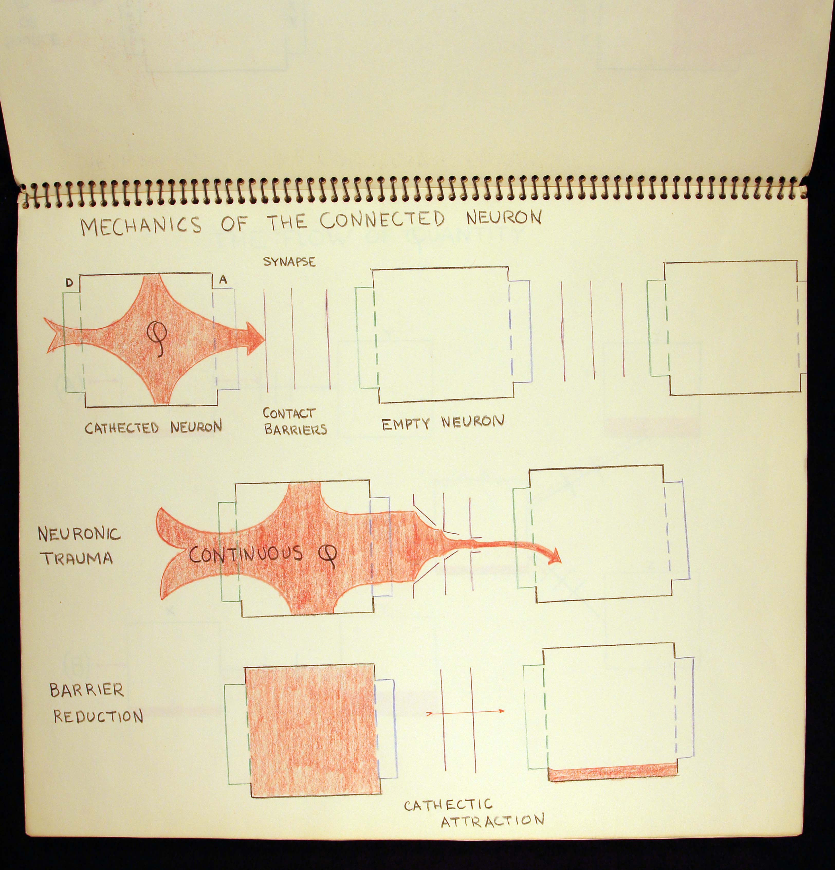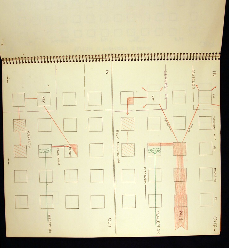 - A sketchbook full of diagrams and drawings by Gass used to illustrate concepts of consciousness related through language. This was used for seminar classes that met in Gass's home, in lieu of a chalkboard.