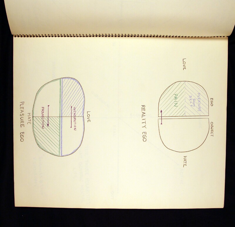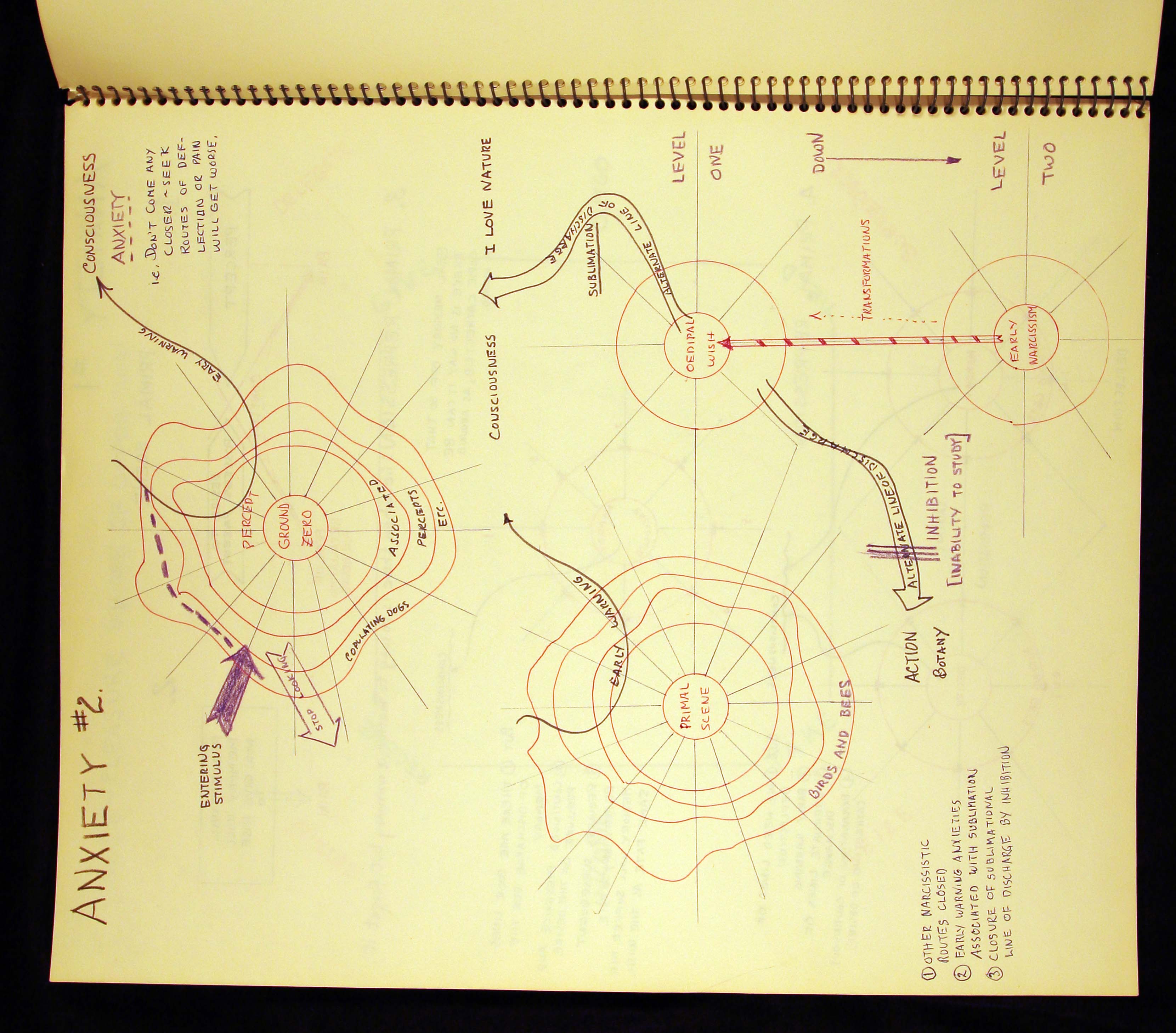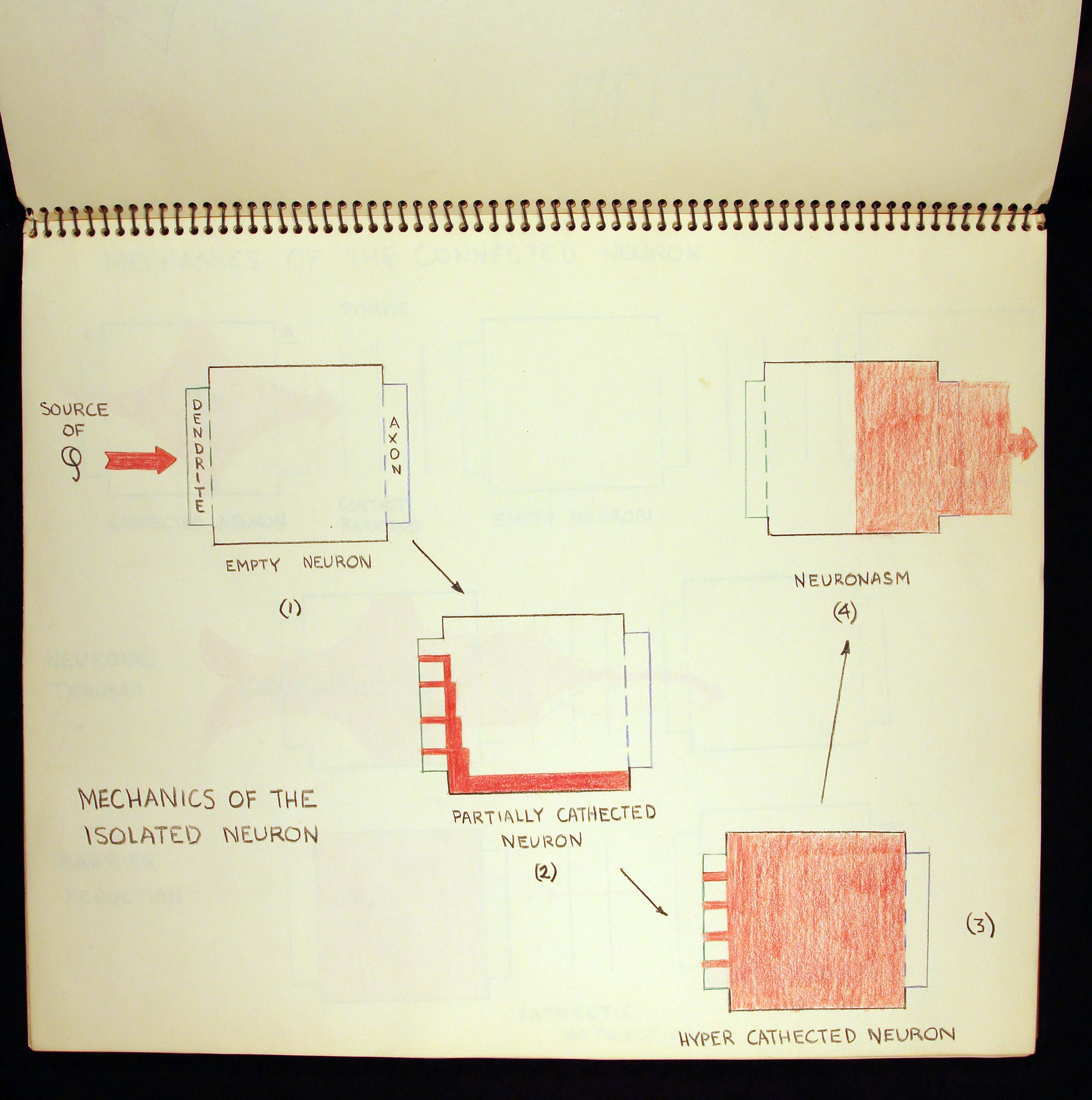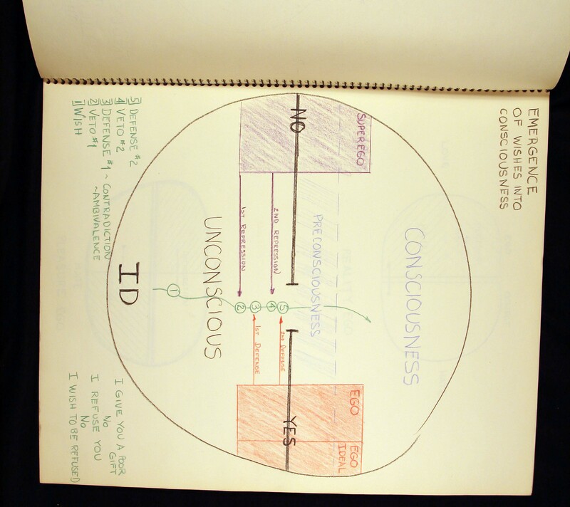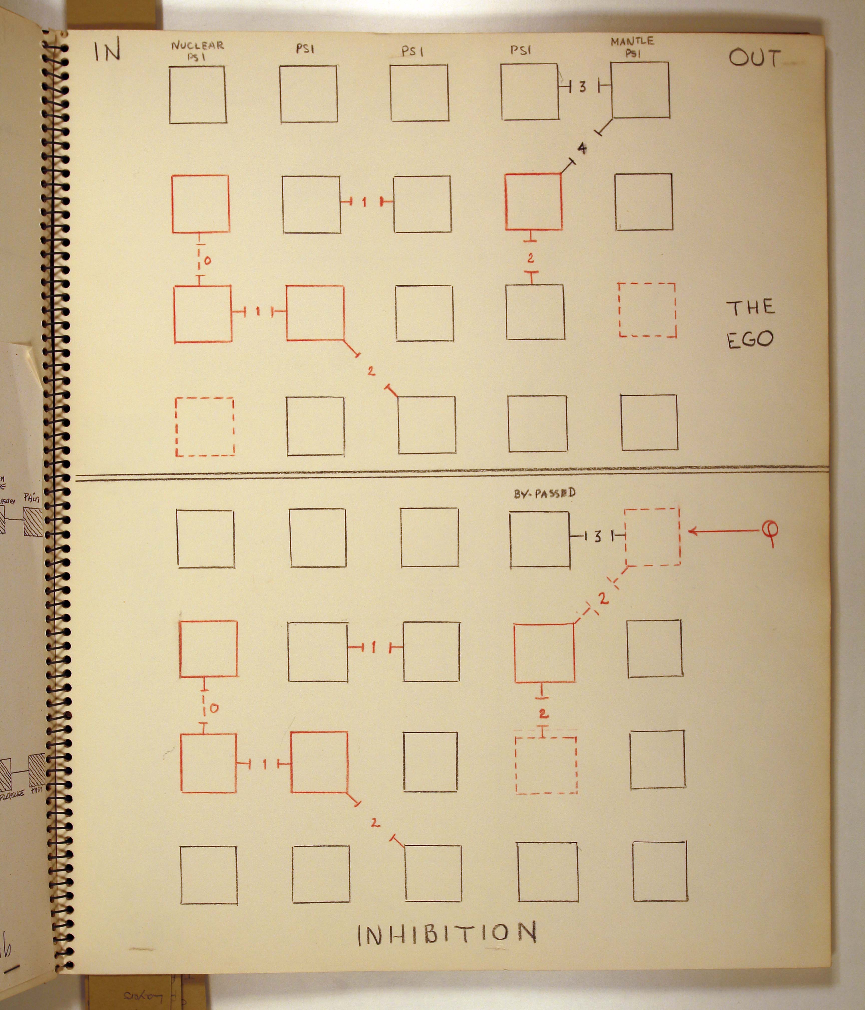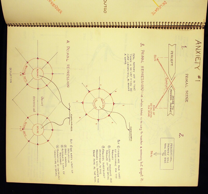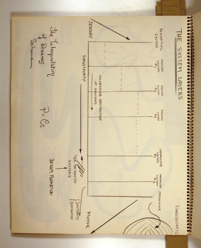 - A sketchbook full of diagrams and drawings by Gass used to illustrate concepts of consciousness related through language. This was used for seminar classes that met in Gass's home, in lieu of a chalkboard.
