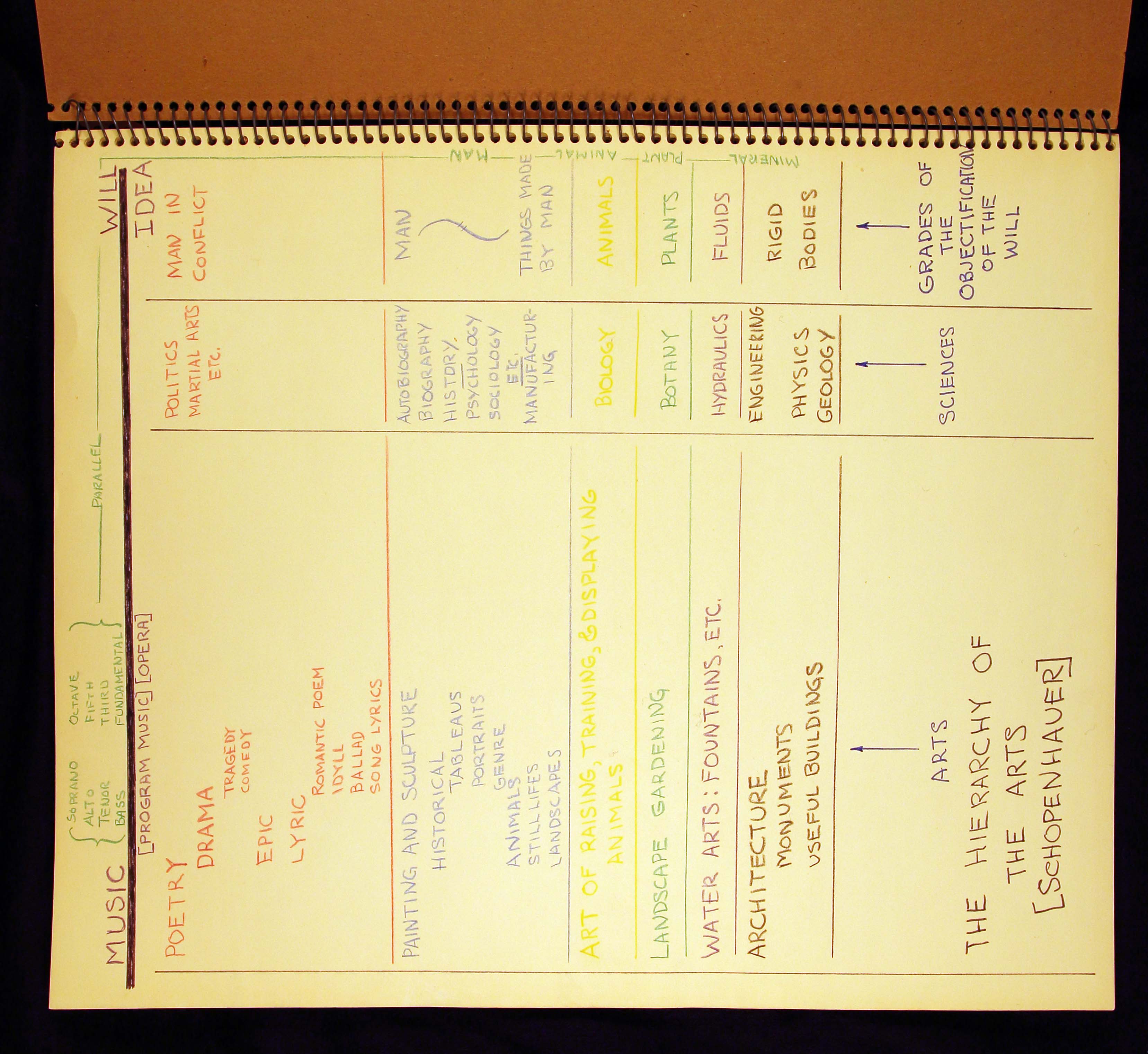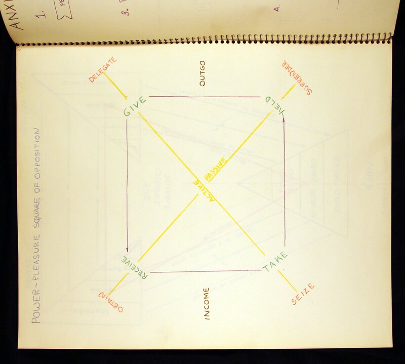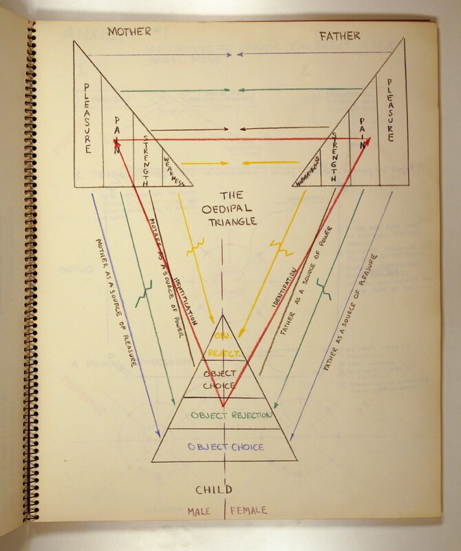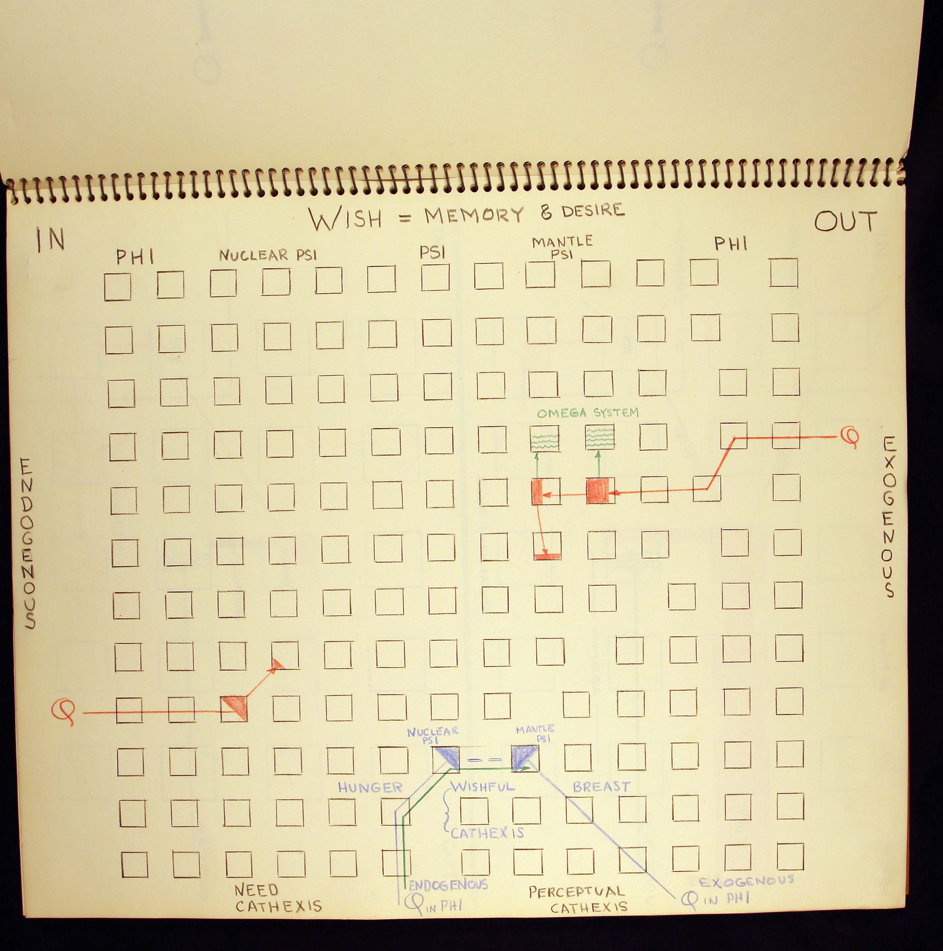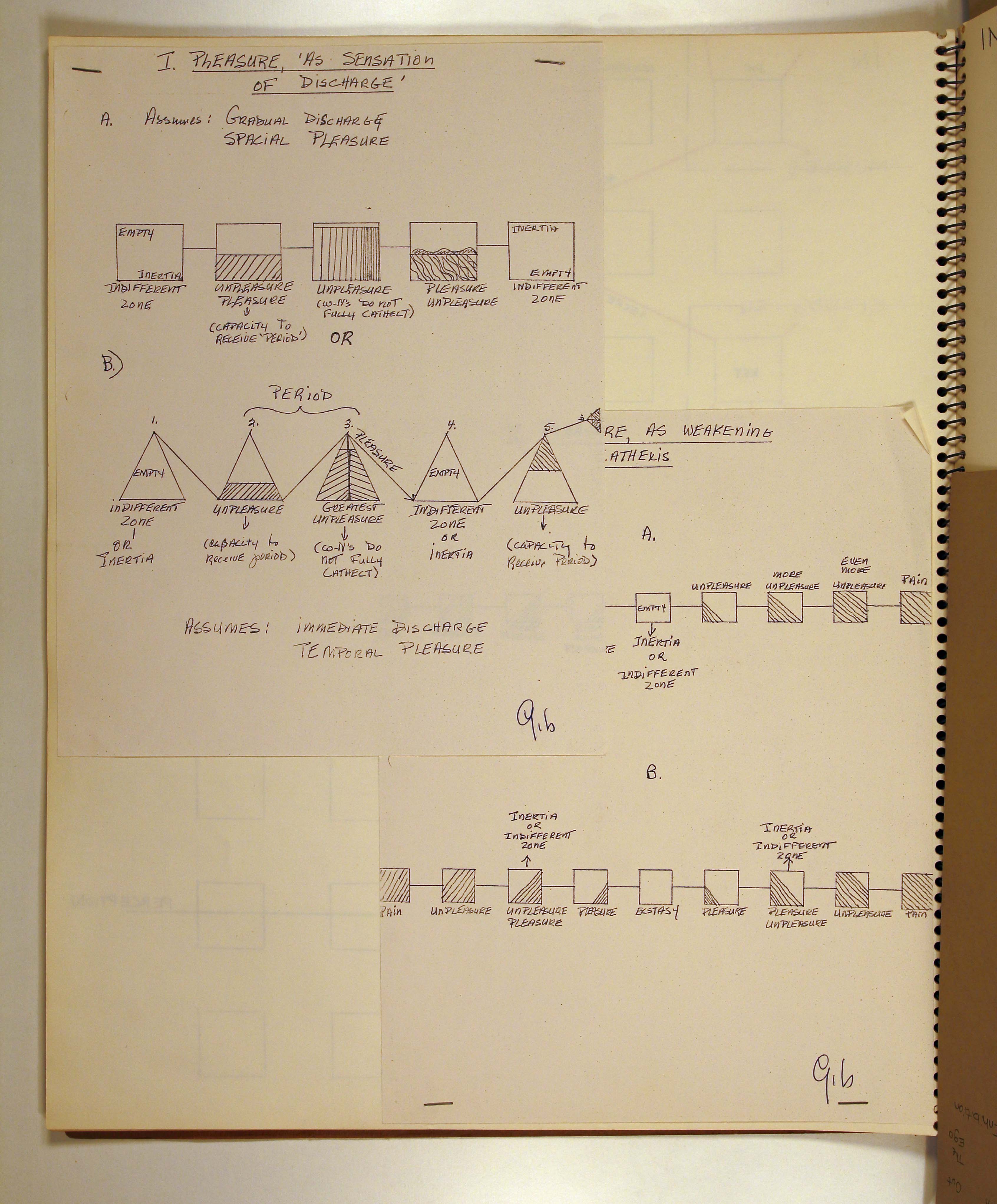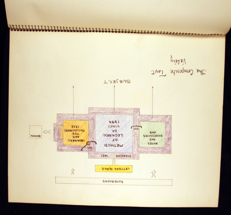 - A sketchbook full of diagrams and drawings by Gass used to illustrate concepts of consciousness related through language. This was used for seminar classes that met in Gass's home, in lieu of a chalkboard.