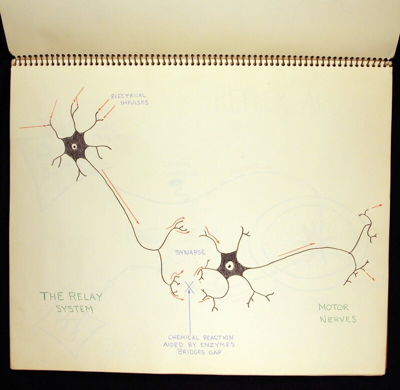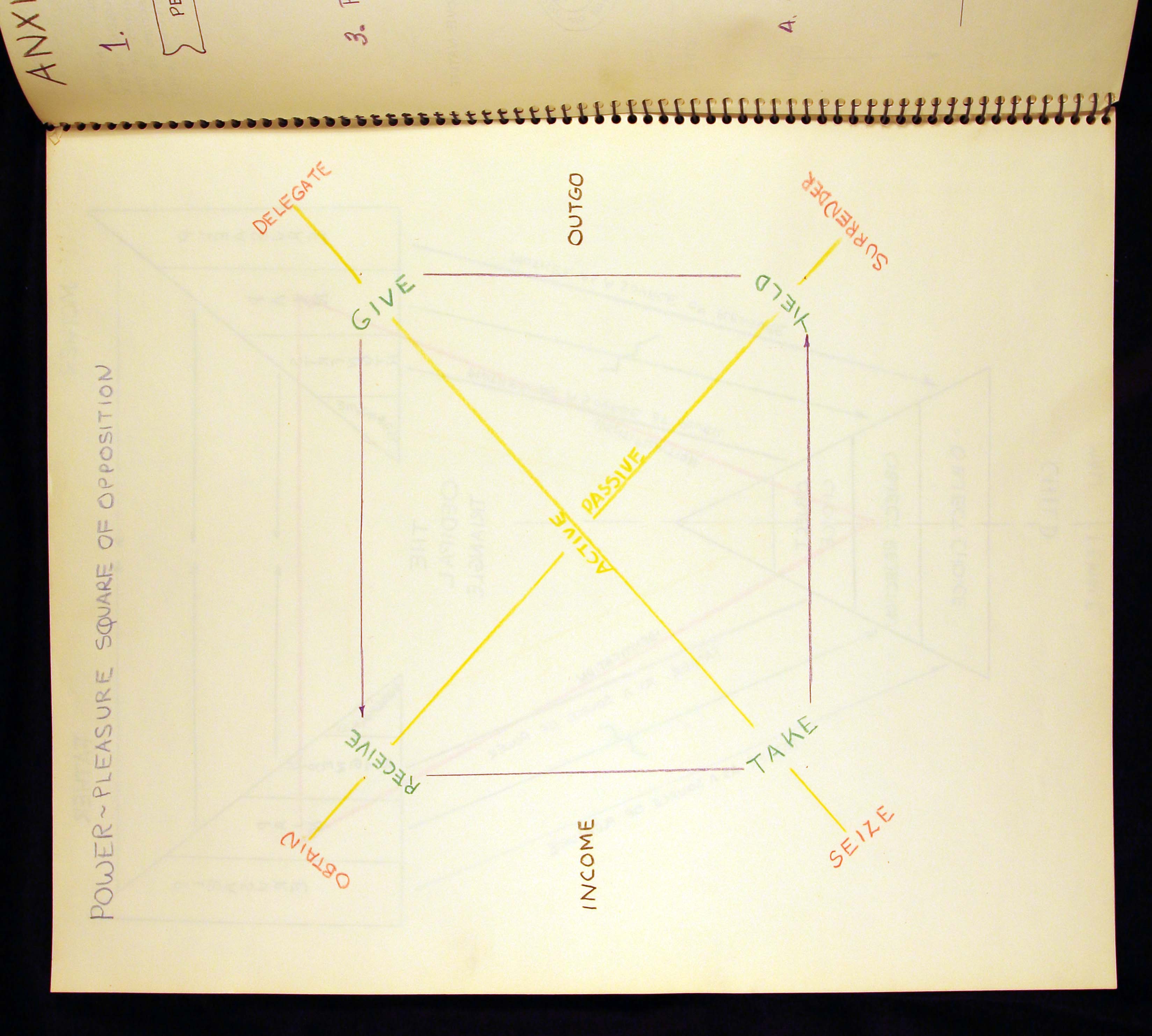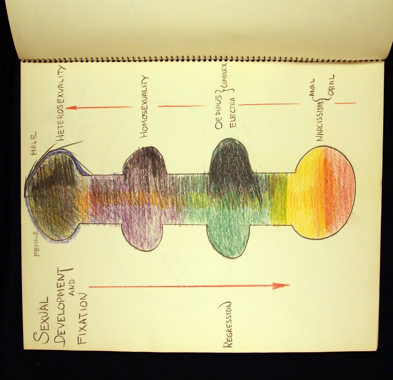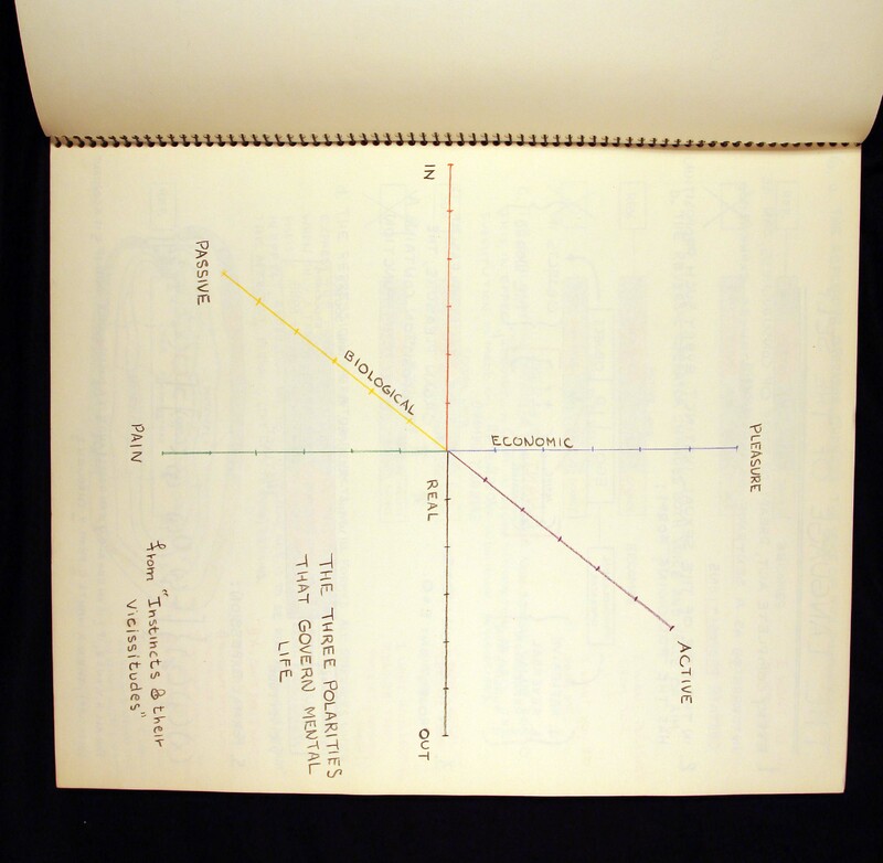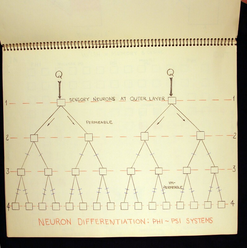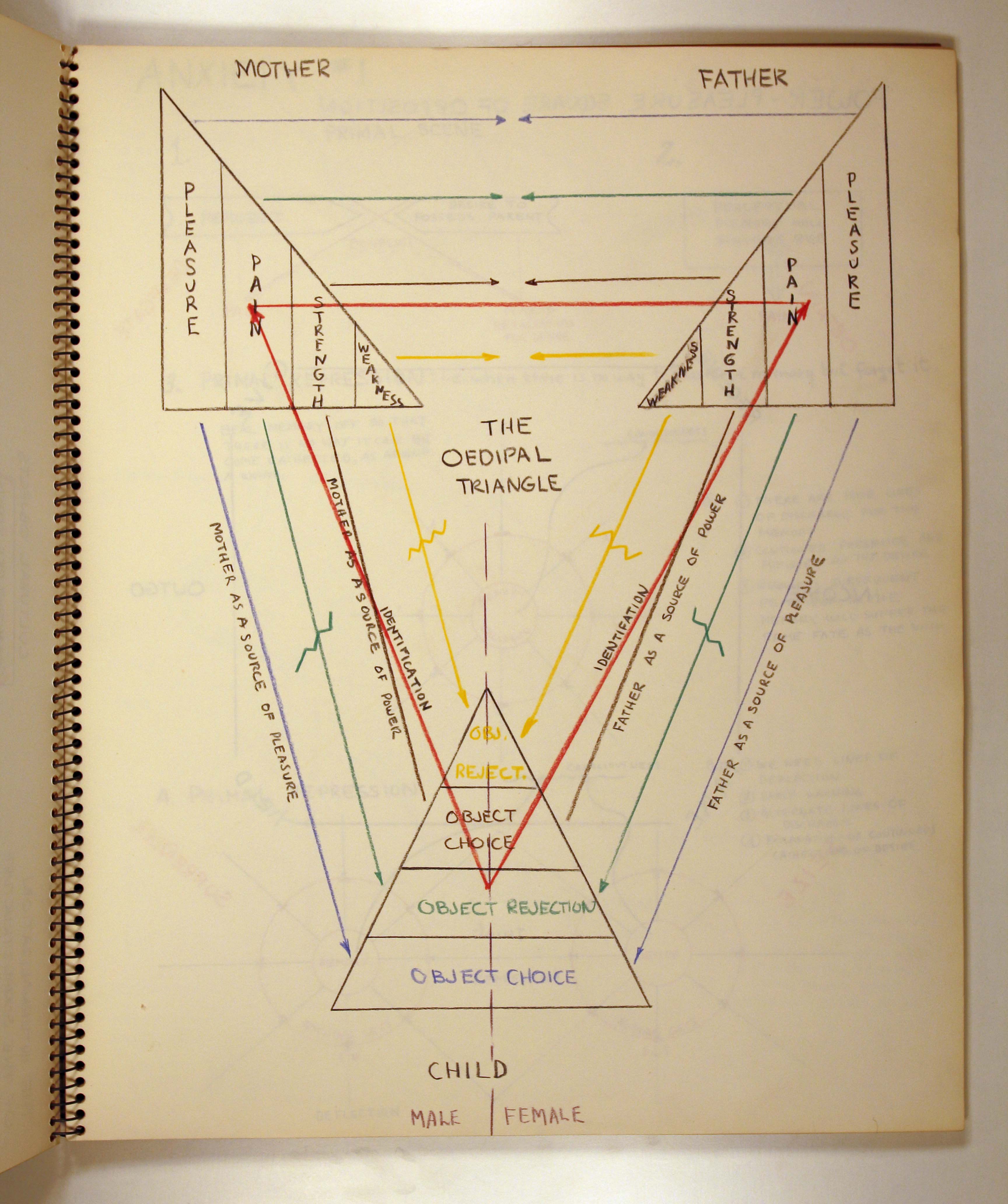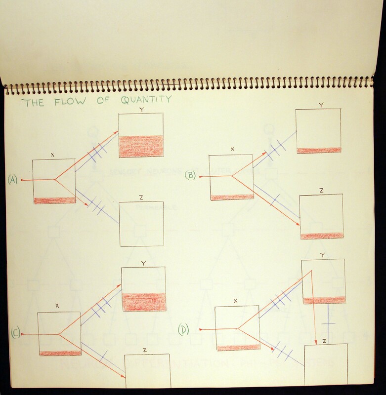 - A sketchbook full of diagrams and drawings by Gass used to illustrate concepts of consciousness related through language. This was used for seminar classes that met in Gass's home, in lieu of a chalkboard.