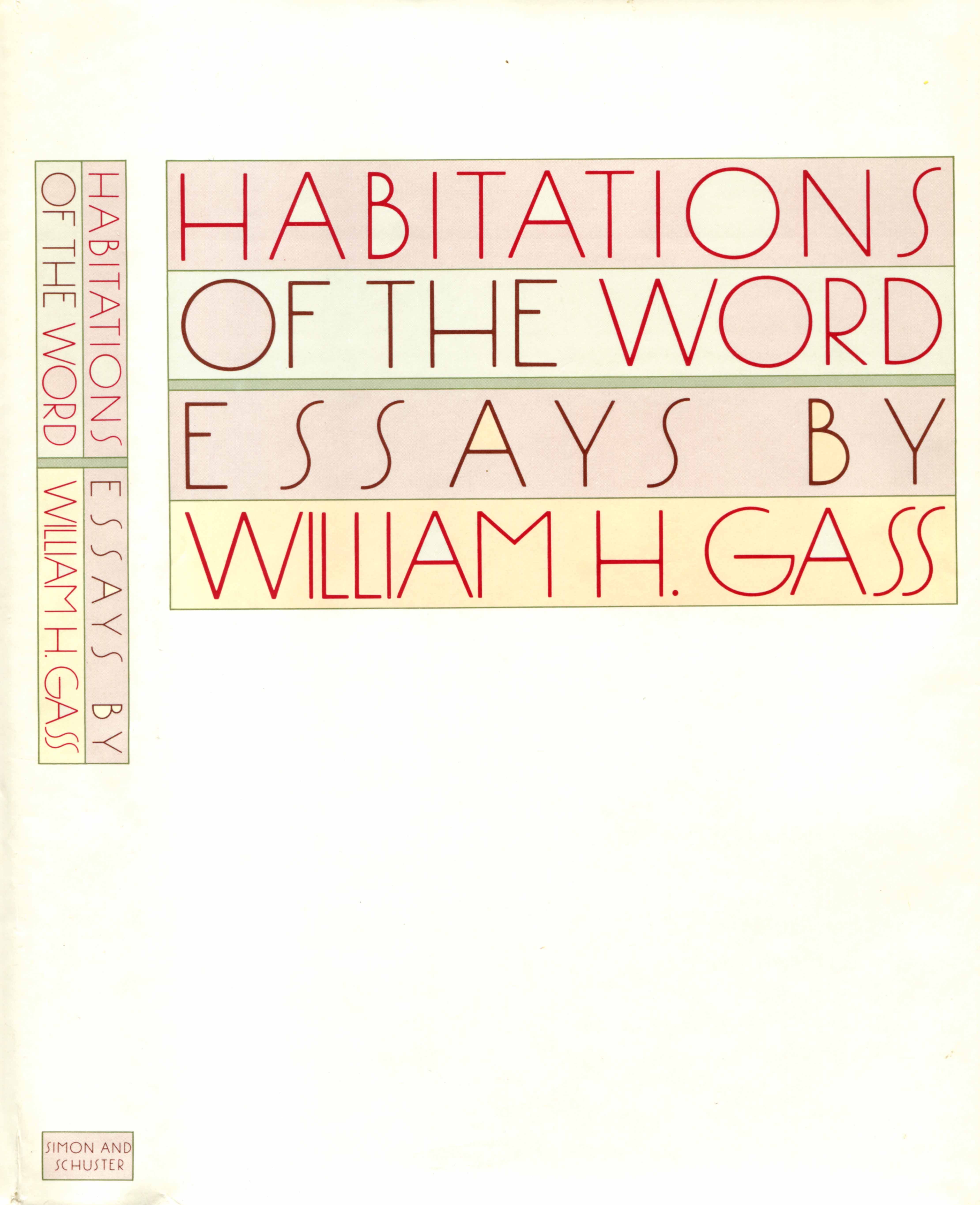 Simon and Schuster. 1984. “Habitations of the Word - First Edition Dust Jacket”. Simon and Schuster, William H. Gass: The Soul Inside the Sentence, accessed February 12, 2026, https://digitalexhibits.library.wustl.edu/s/gass/item/15610