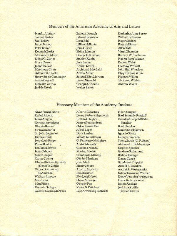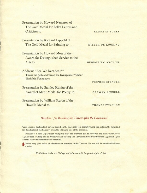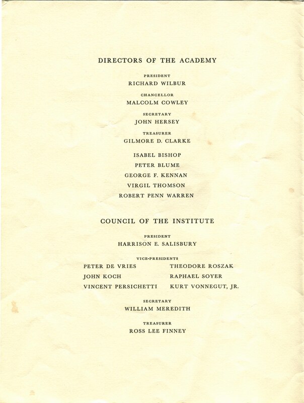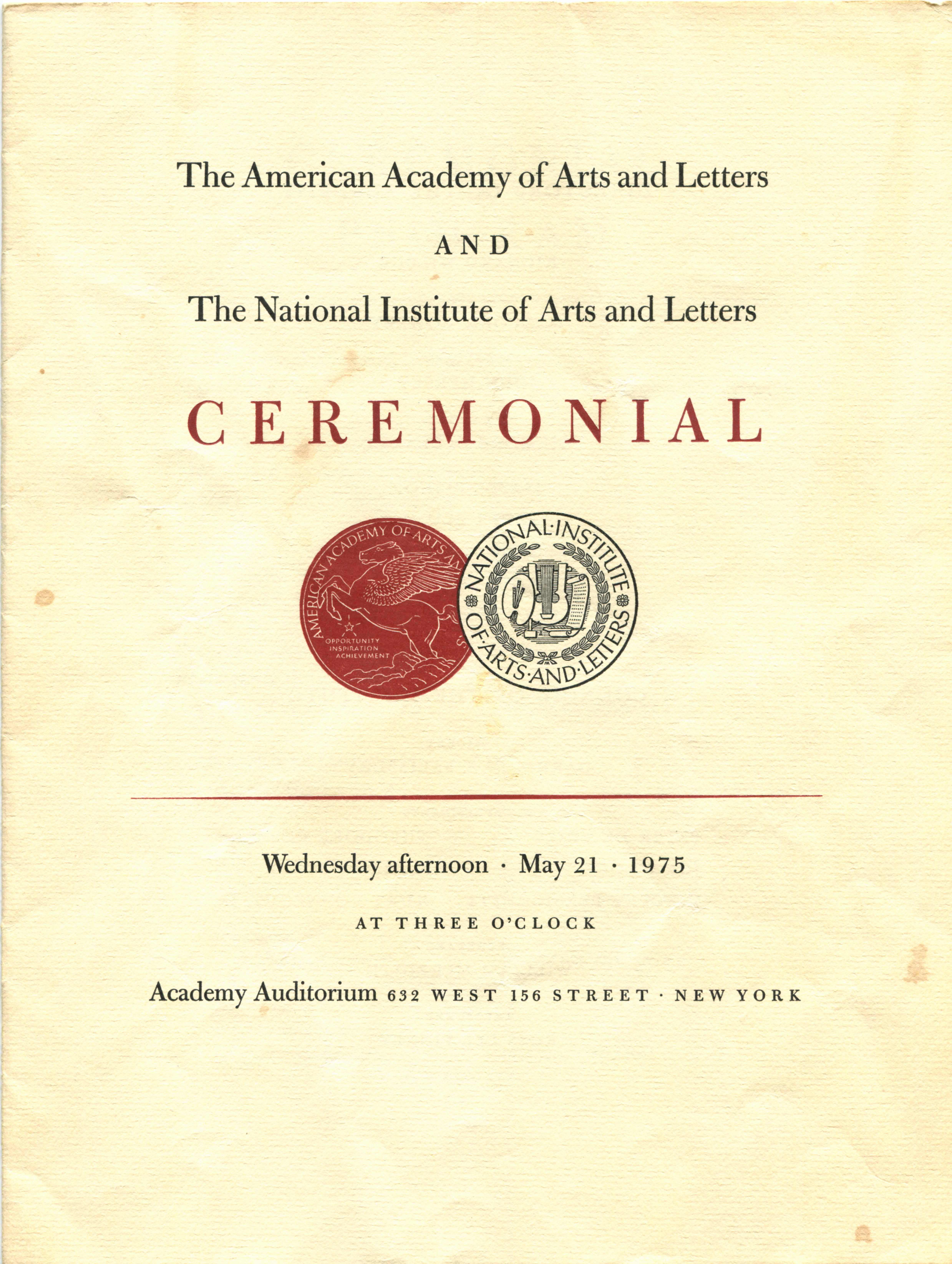 The American Academy of Arts and Letters and the National Institute of Arts and Letters Ceremonial program, May 21, 1975