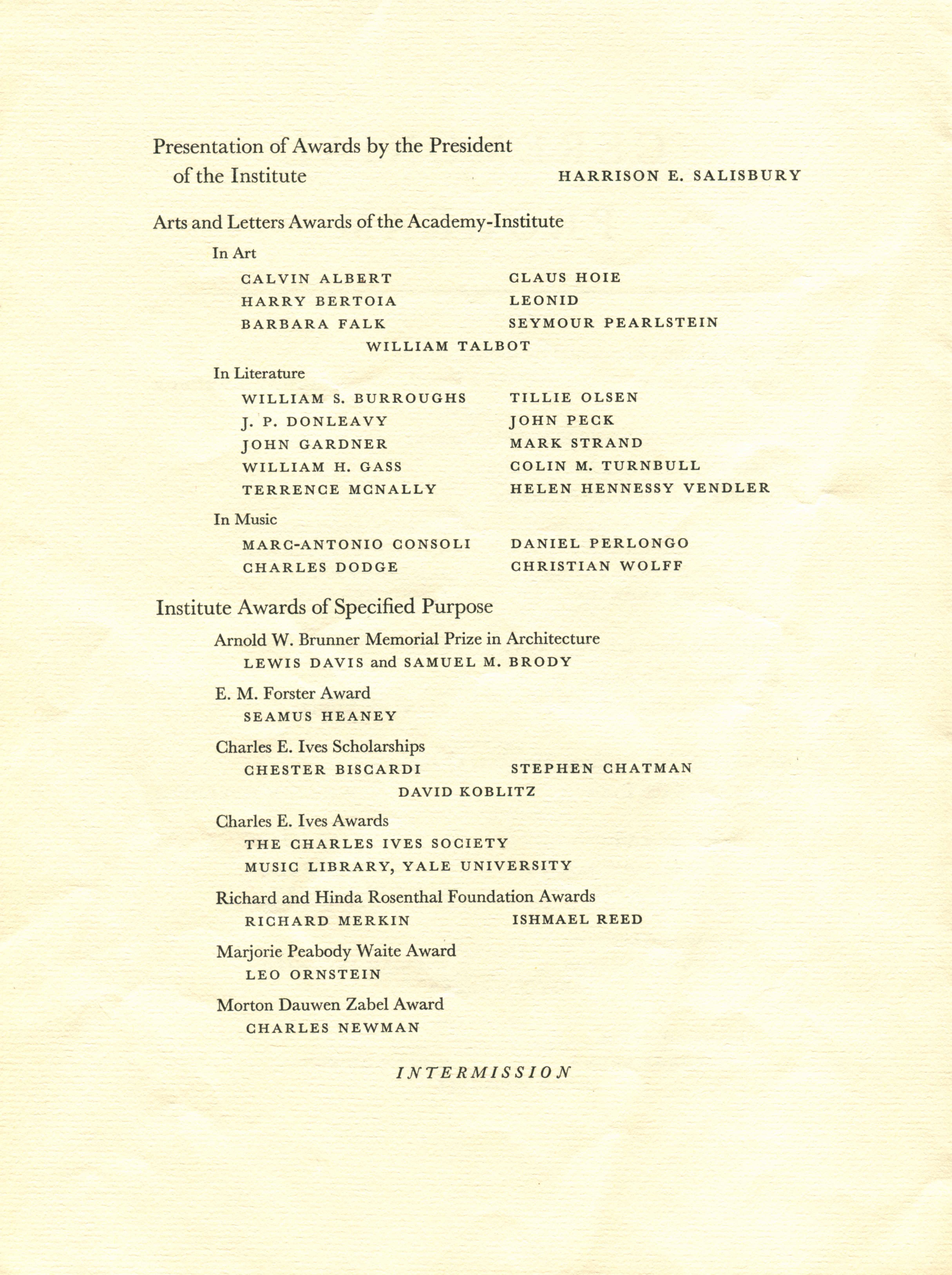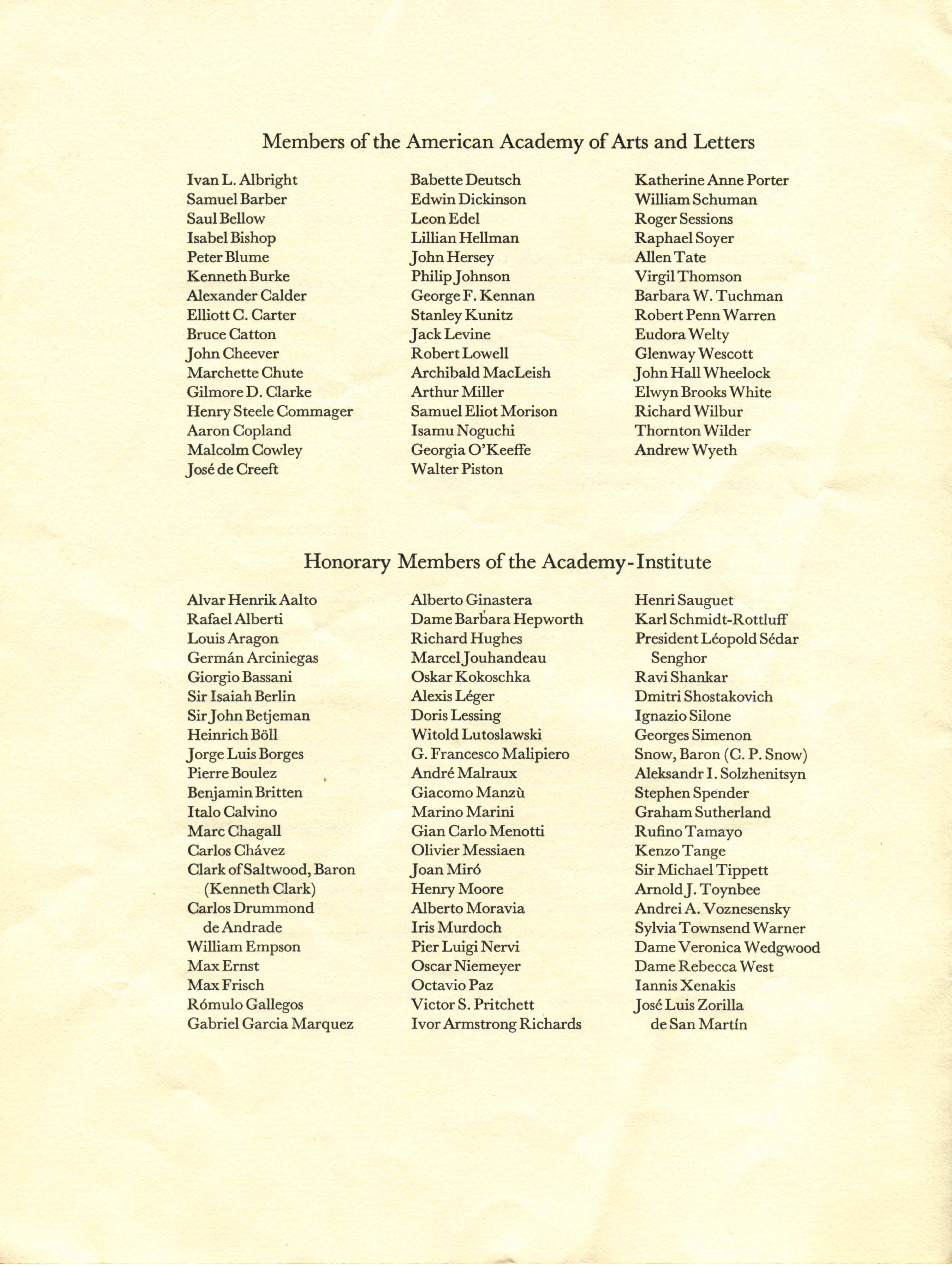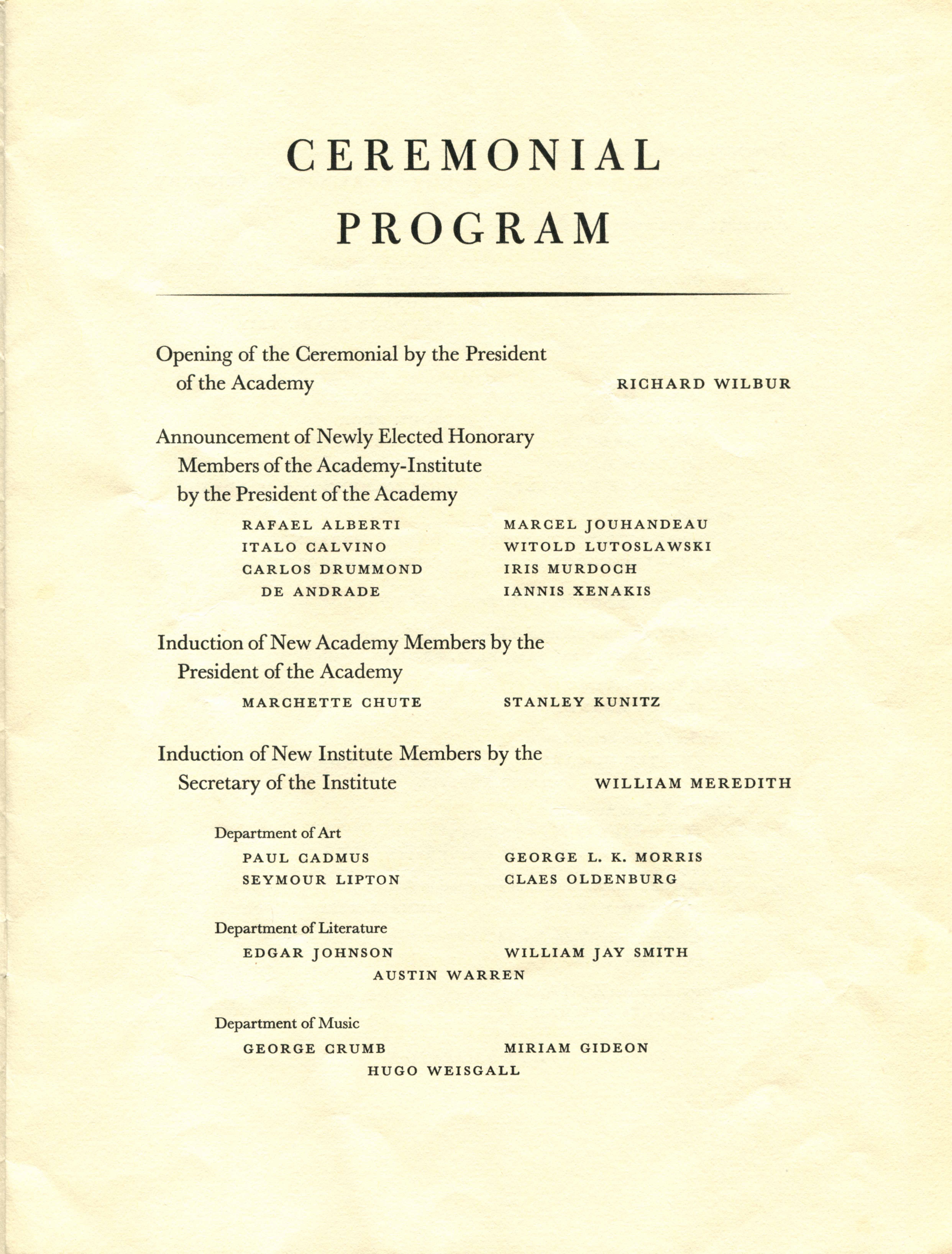 The American Academy of Arts and Letters and the National Institute of Arts and Letters Ceremonial program, May 21, 1975