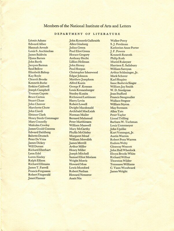 The American Academy of Arts and Letters and the National Institute of Arts and Letters. 1974. “The American Academy of Arts and Letters and the National Institute of Arts and Letters Ceremonial Program, May 21, 1975”. The American Academy of Arts and Letters and the National Institute of Arts and Letters, William H. Gass: The Soul Inside the Sentence, accessed February 11, 2026, https://digitalexhibits.library.wustl.edu/s/gass/item/15619
