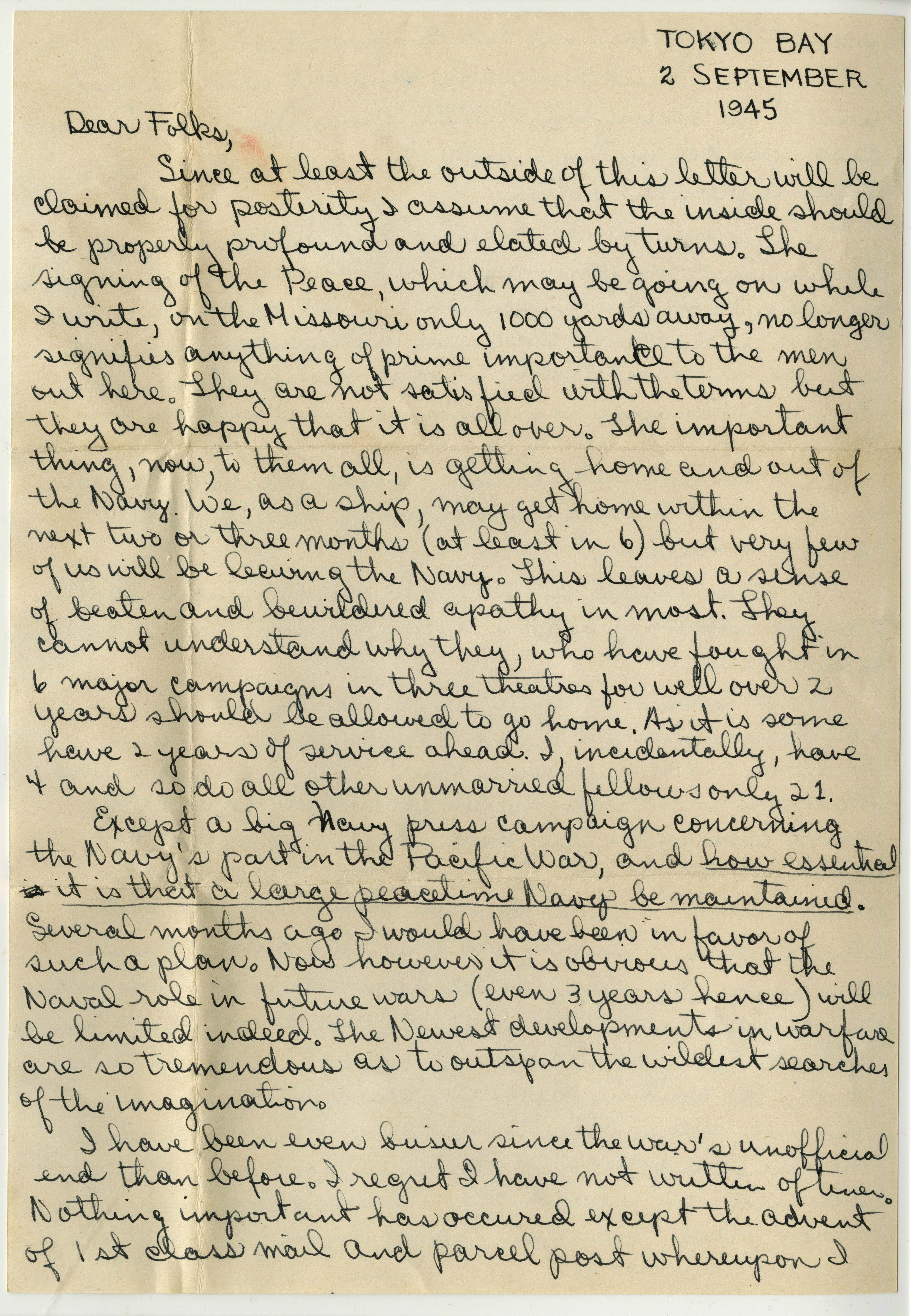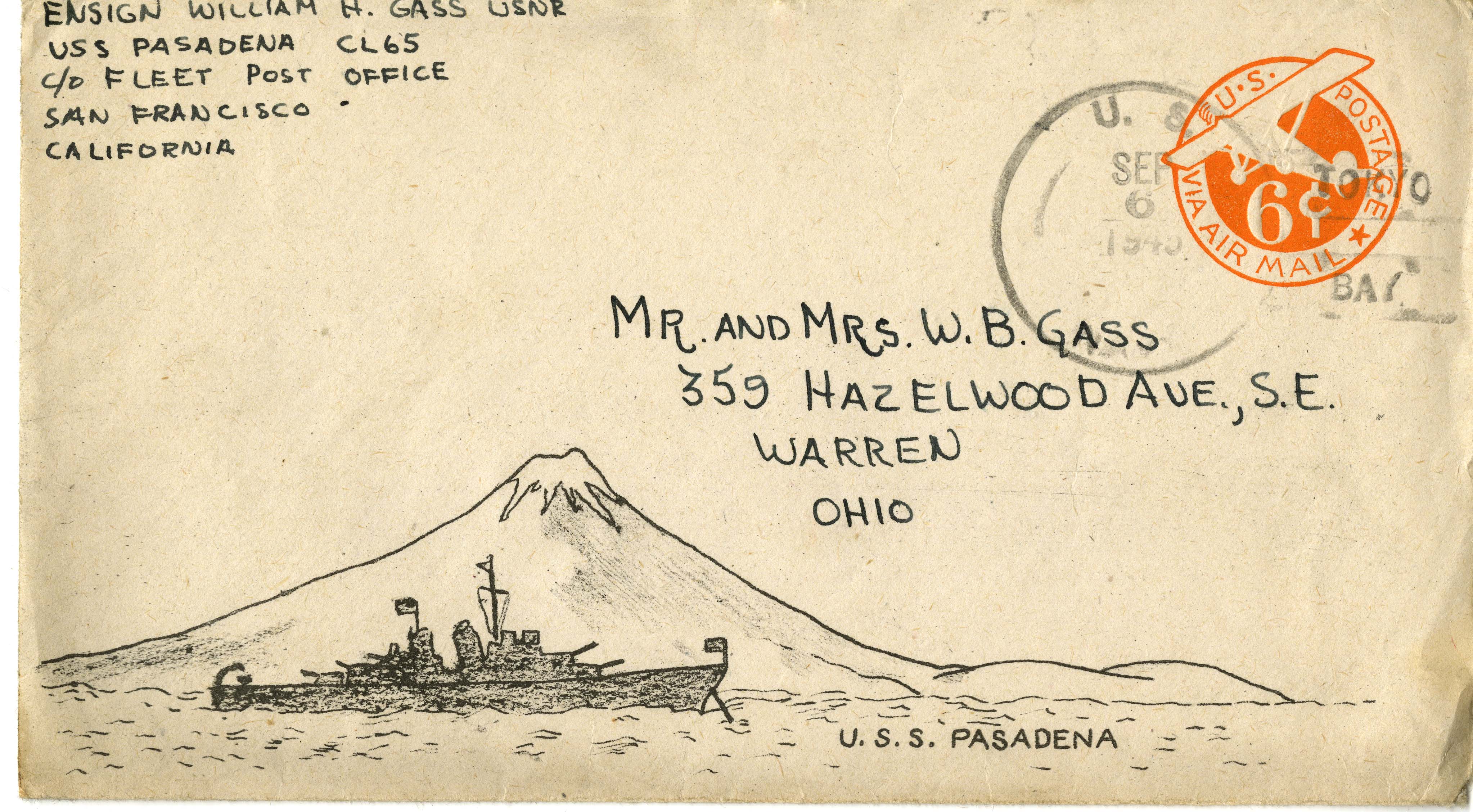 Autograph letter signed from William H. Gass to his parents, Mr. and Mrs. Gass, September 2, 1945