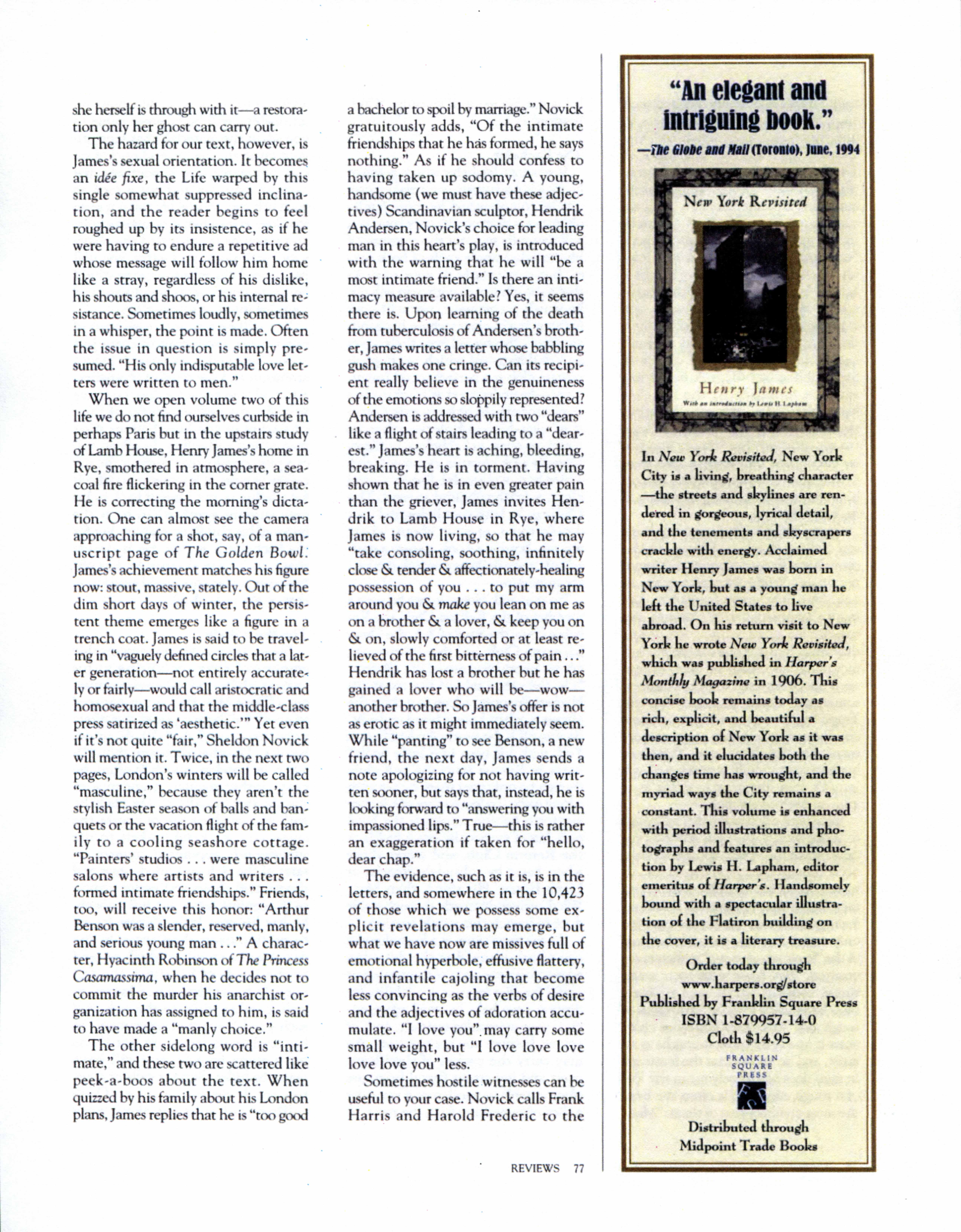 "The Master’s Voice: Henry James’s Curriculum Vitae"