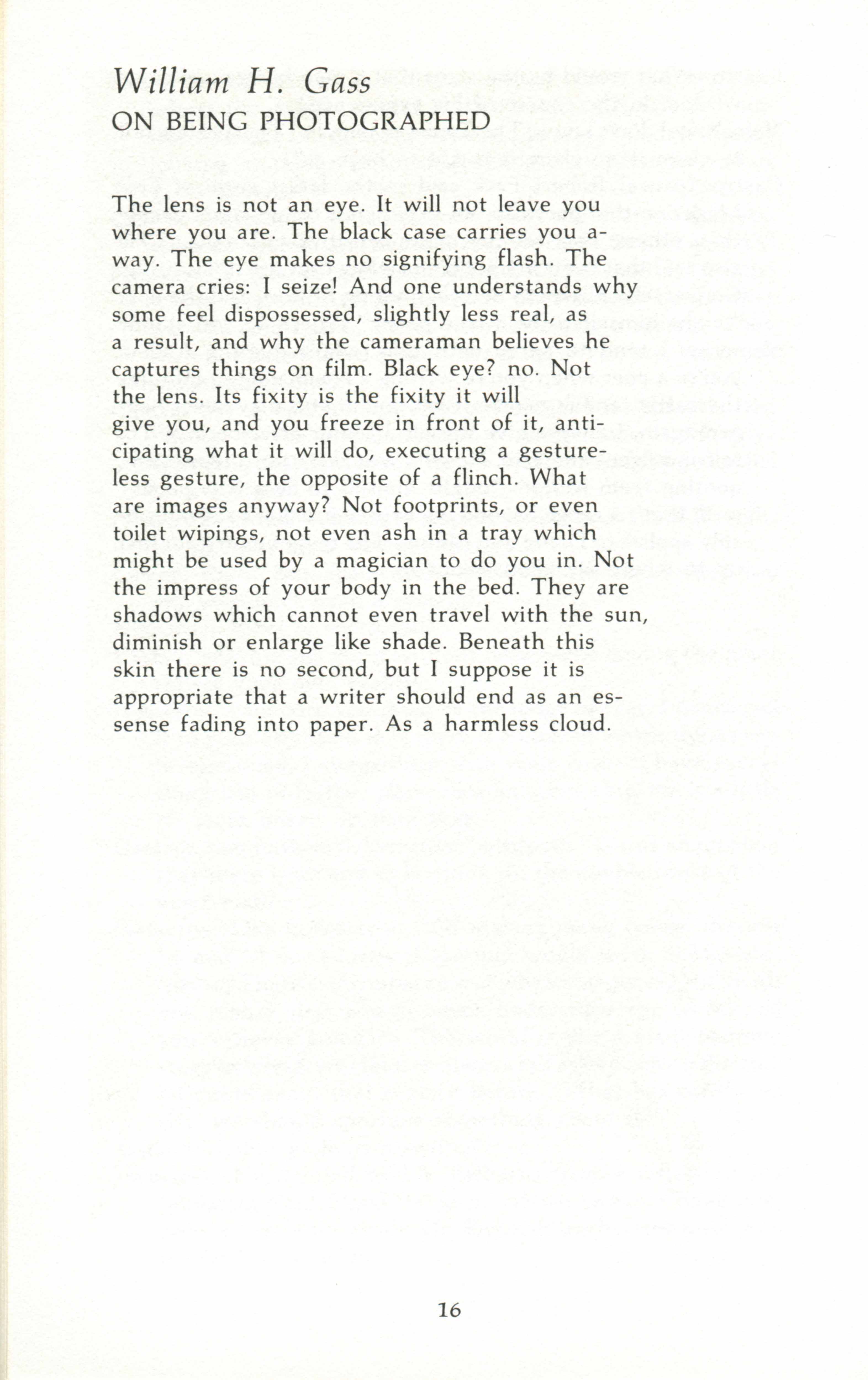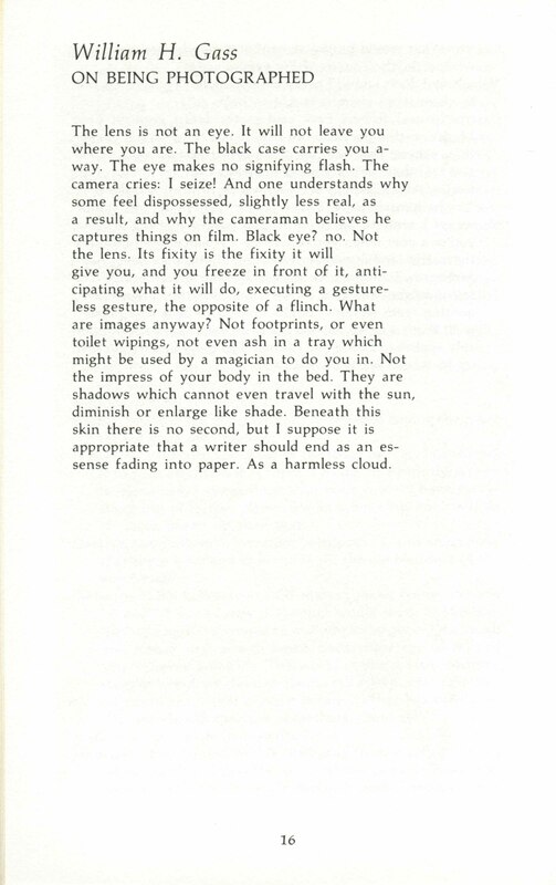 Gass, William H. 1979. “‘On Being Photographed’”. Webster Review, William H. Gass: The Soul Inside the Sentence, accessed February 10, 2026, https://digitalexhibits.library.wustl.edu/s/gass/item/15812