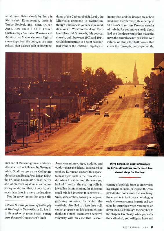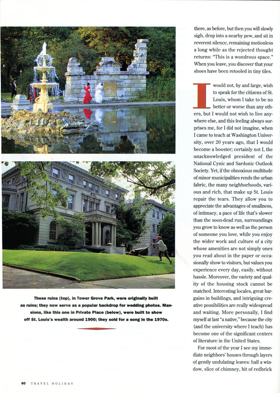 Gass, William H., and Travel Holiday. 1993. “‘St. Louis Bound’”. Travel Holiday, September 1993. Travel Holiday, William H. Gass: The Soul Inside the Sentence, accessed February 12, 2026, https://digitalexhibits.library.wustl.edu/s/gass/item/15814
