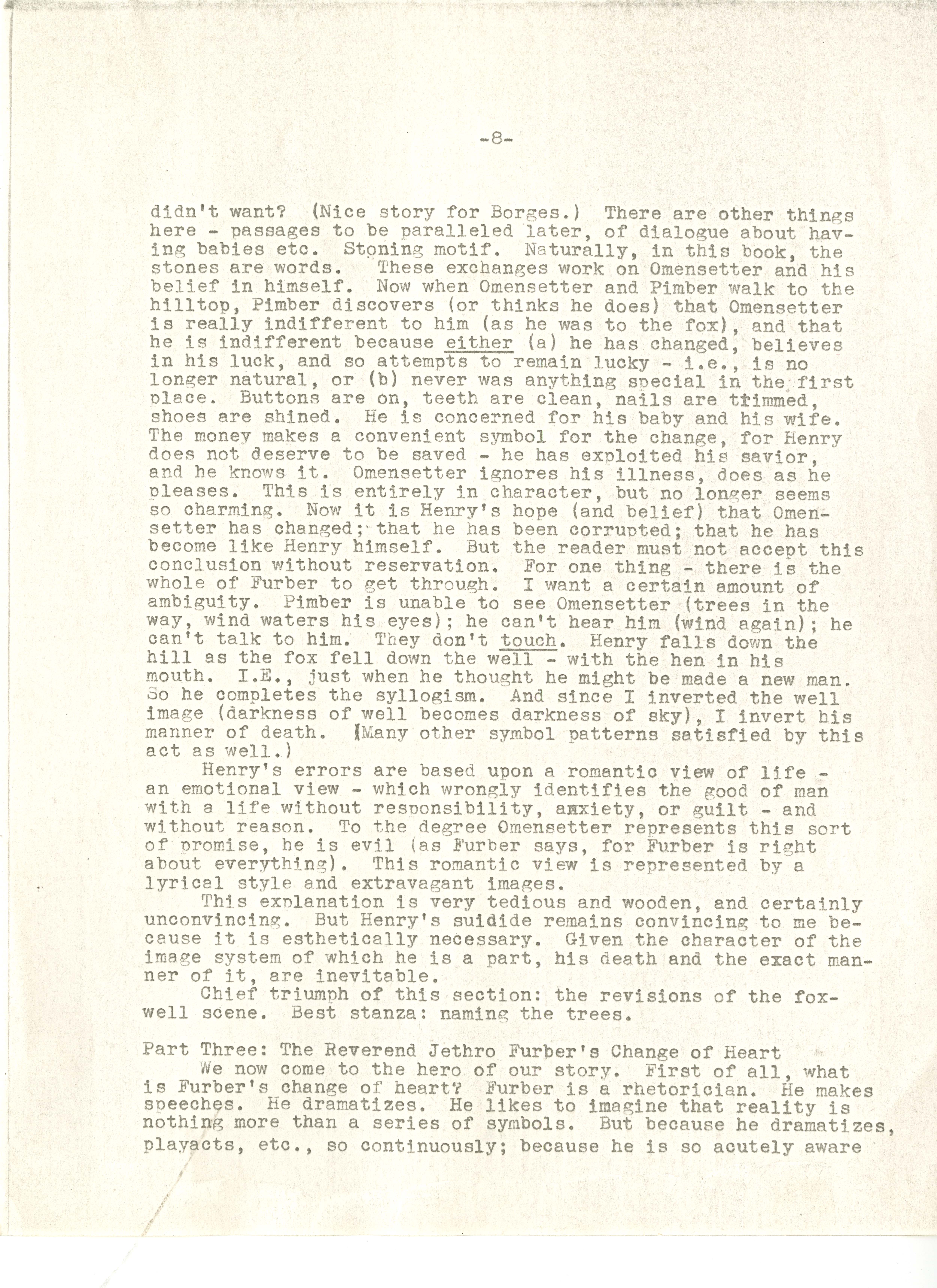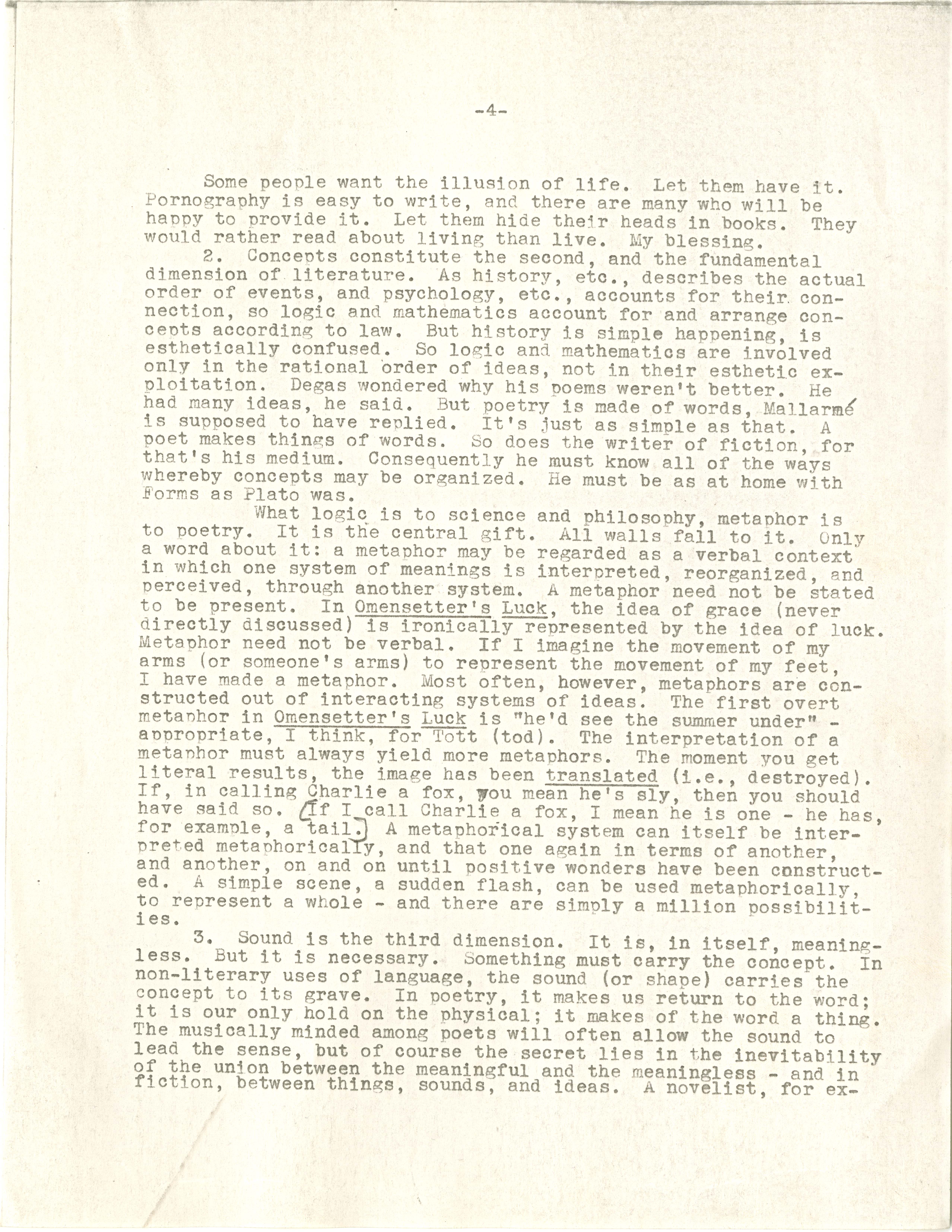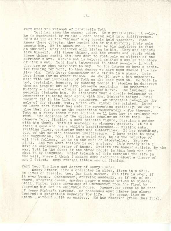 Gass, William H. 1965. “William H. Gass Letters to David Segal Regarding Omensetter’s Luck.”, William H. Gass: The Soul Inside the Sentence, accessed February 10, 2026, https://digitalexhibits.library.wustl.edu/s/gass/item/16185