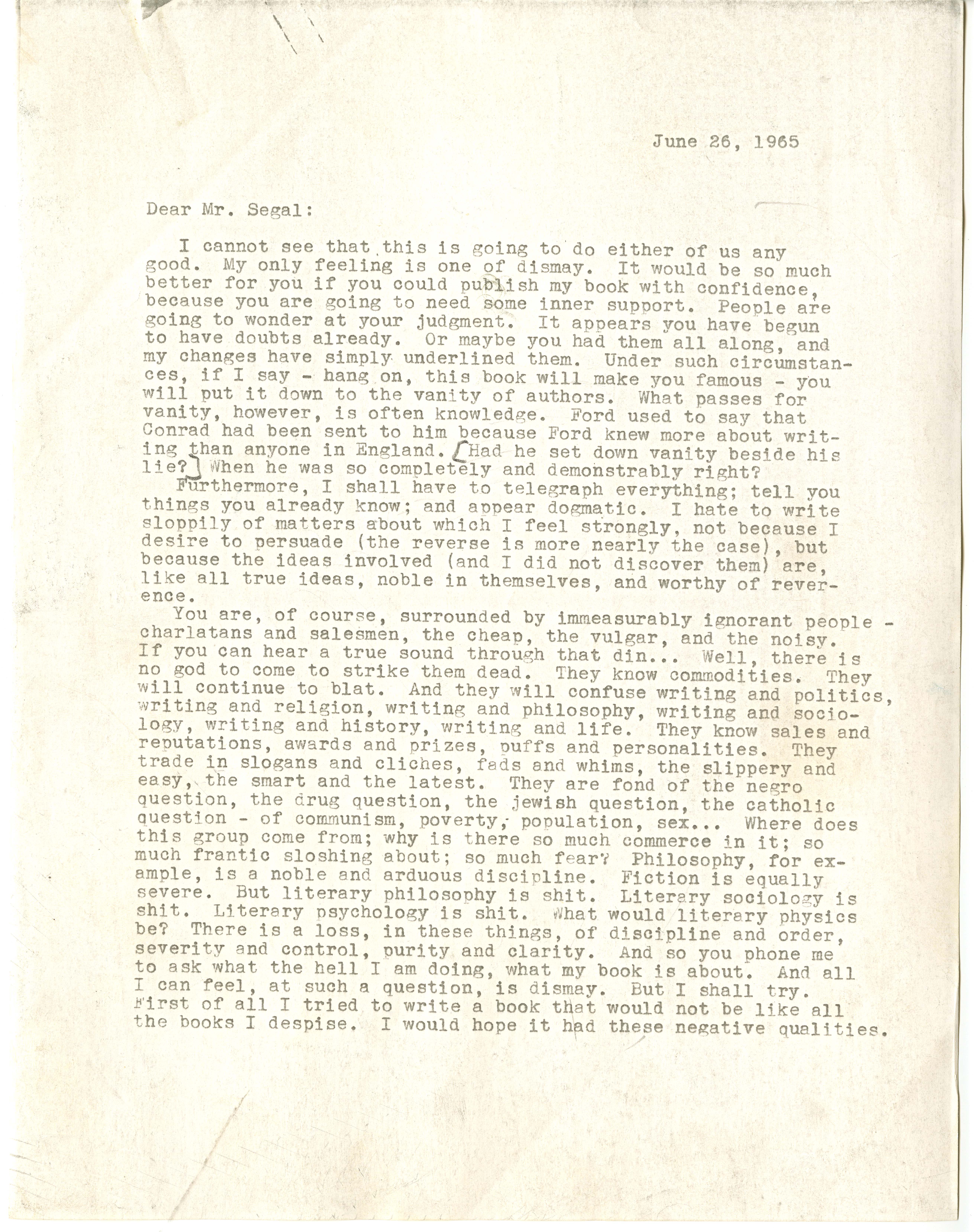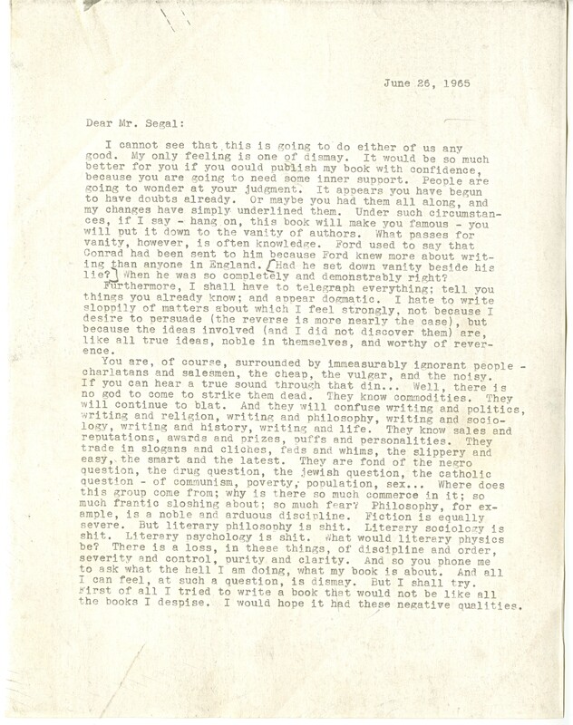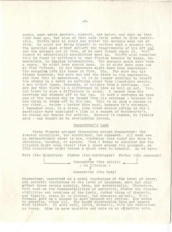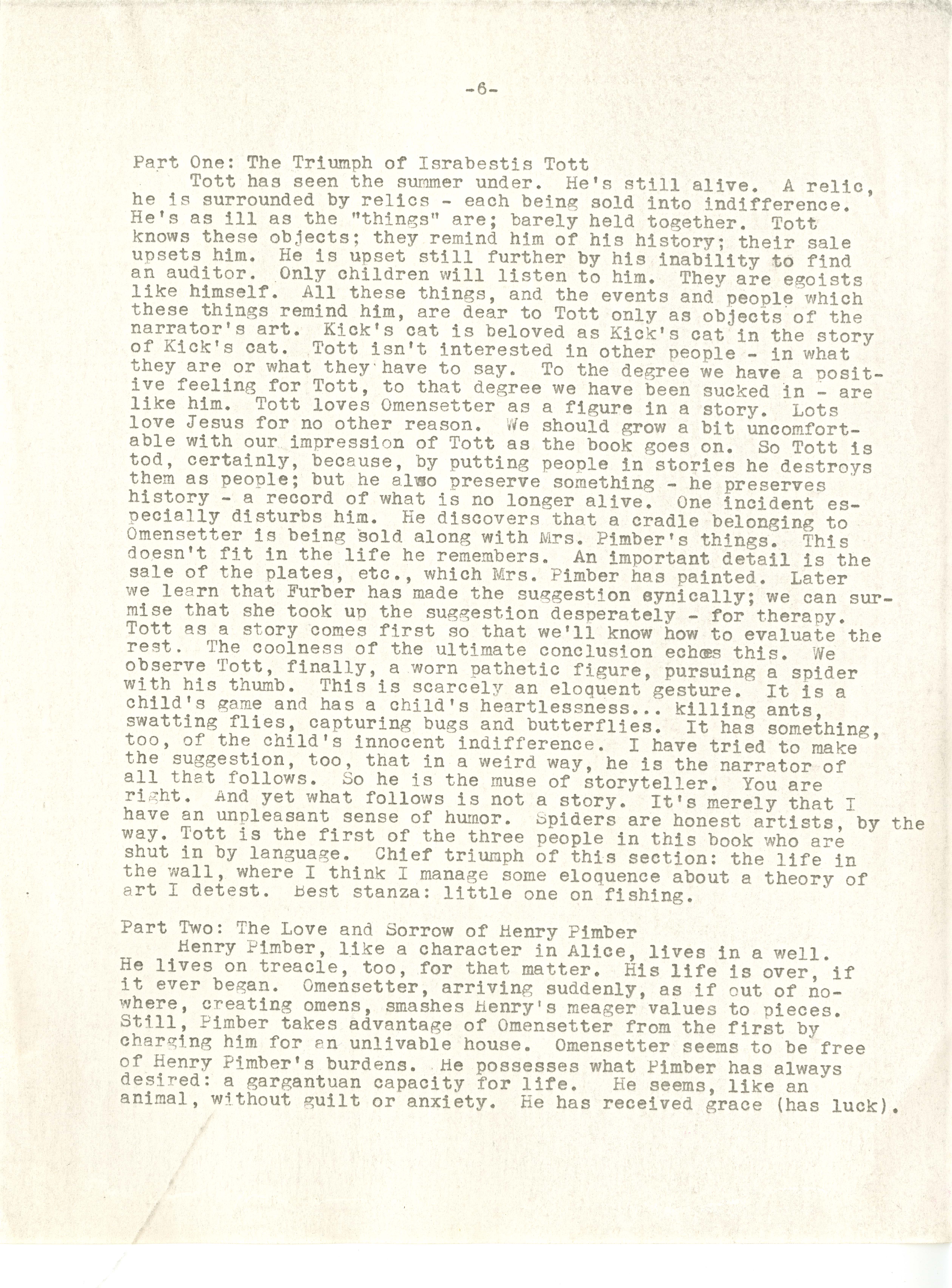 Gass, William H. 1965. “William H. Gass Letters to David Segal Regarding Omensetter’s Luck.”, William H. Gass: The Soul Inside the Sentence, accessed February 10, 2026, https://digitalexhibits.library.wustl.edu/s/gass/item/16185